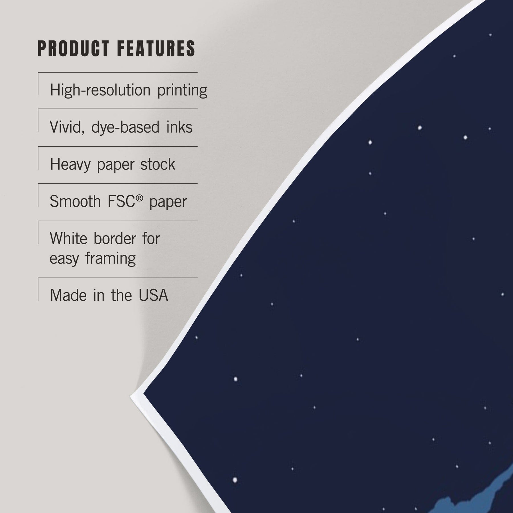 • Art prints include white borders along all edges of at least 1/4 inch
