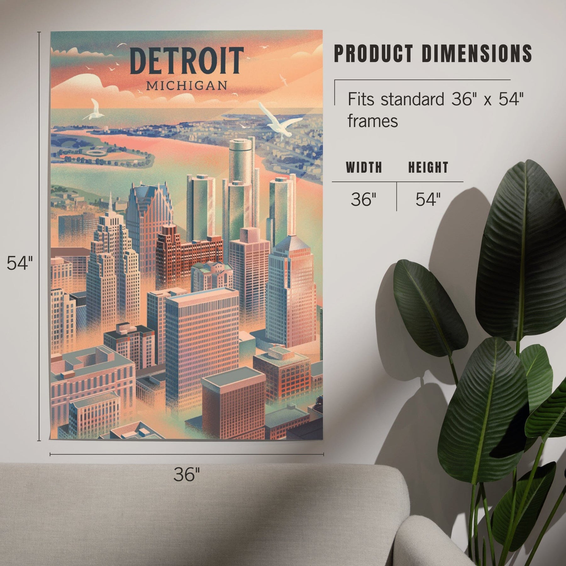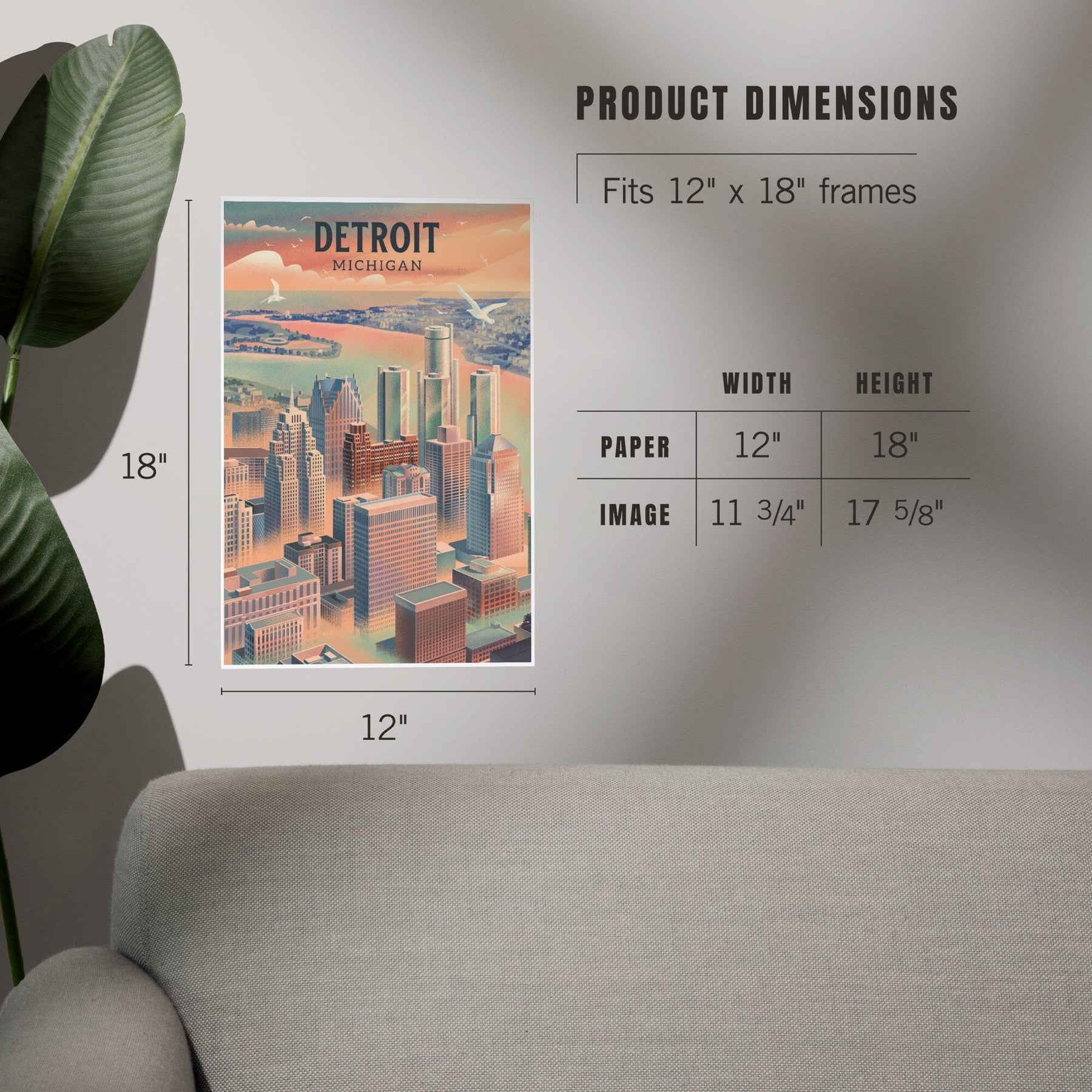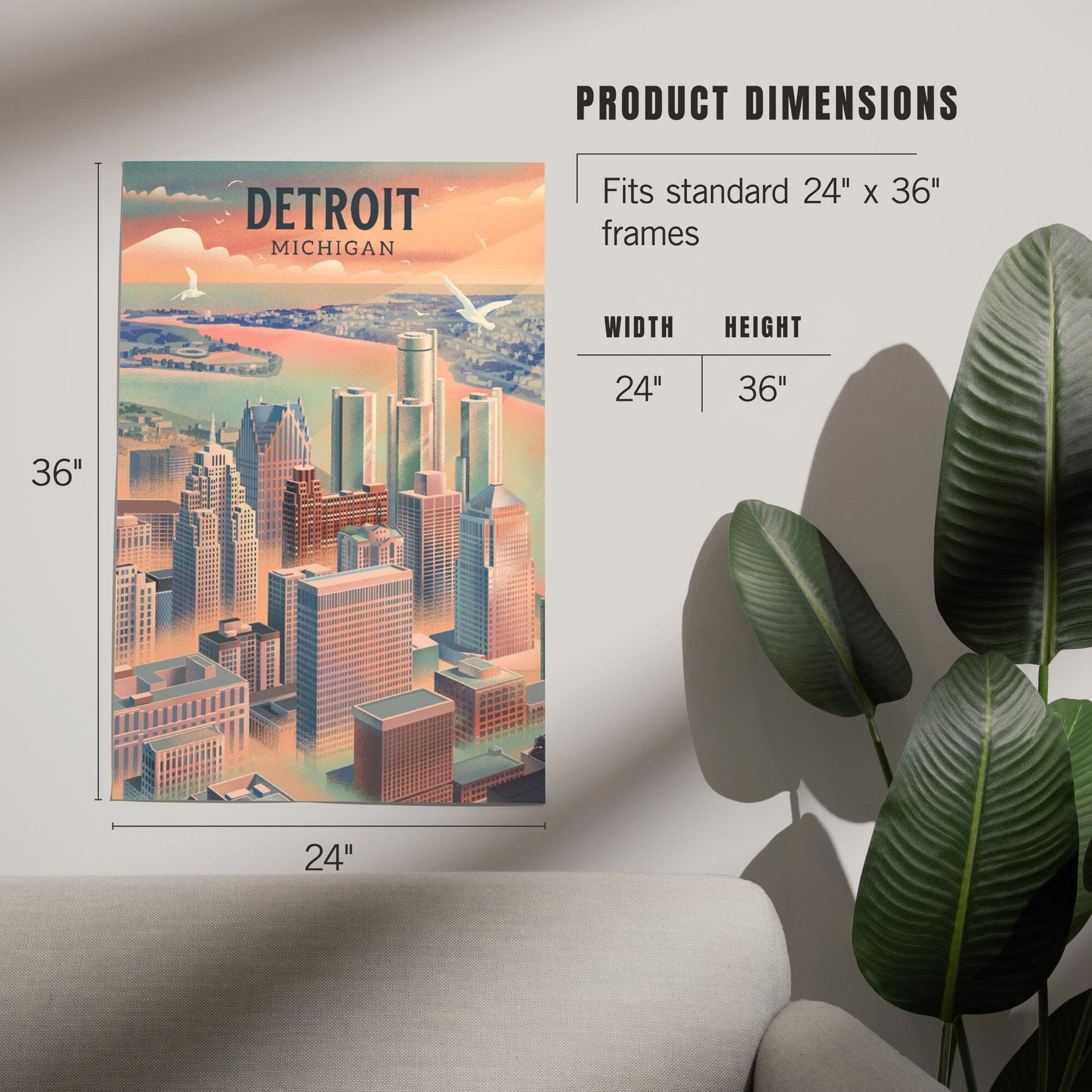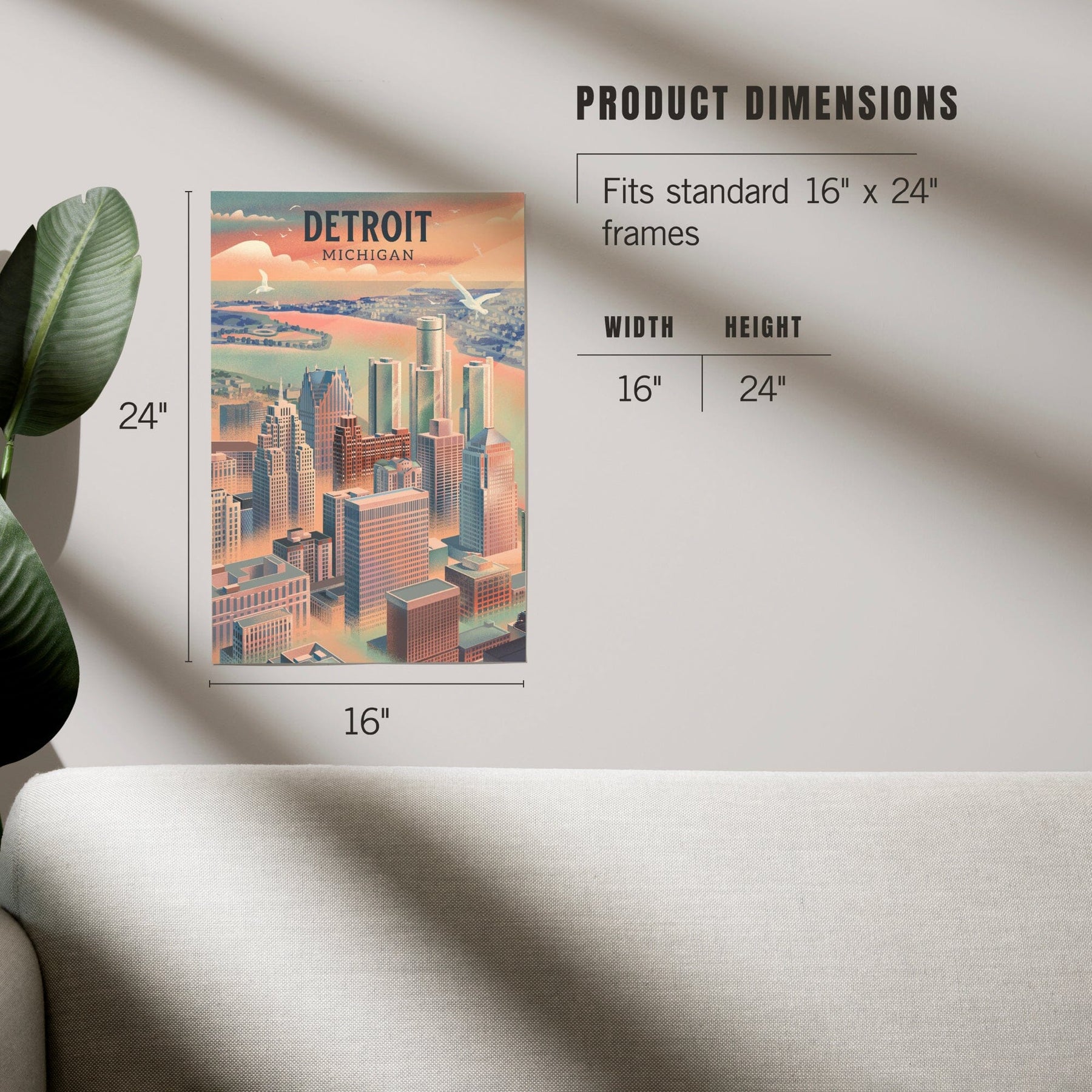 Detroit, Michigan, Lithograph City Series, Art & Giclee Prints Art Lantern Press