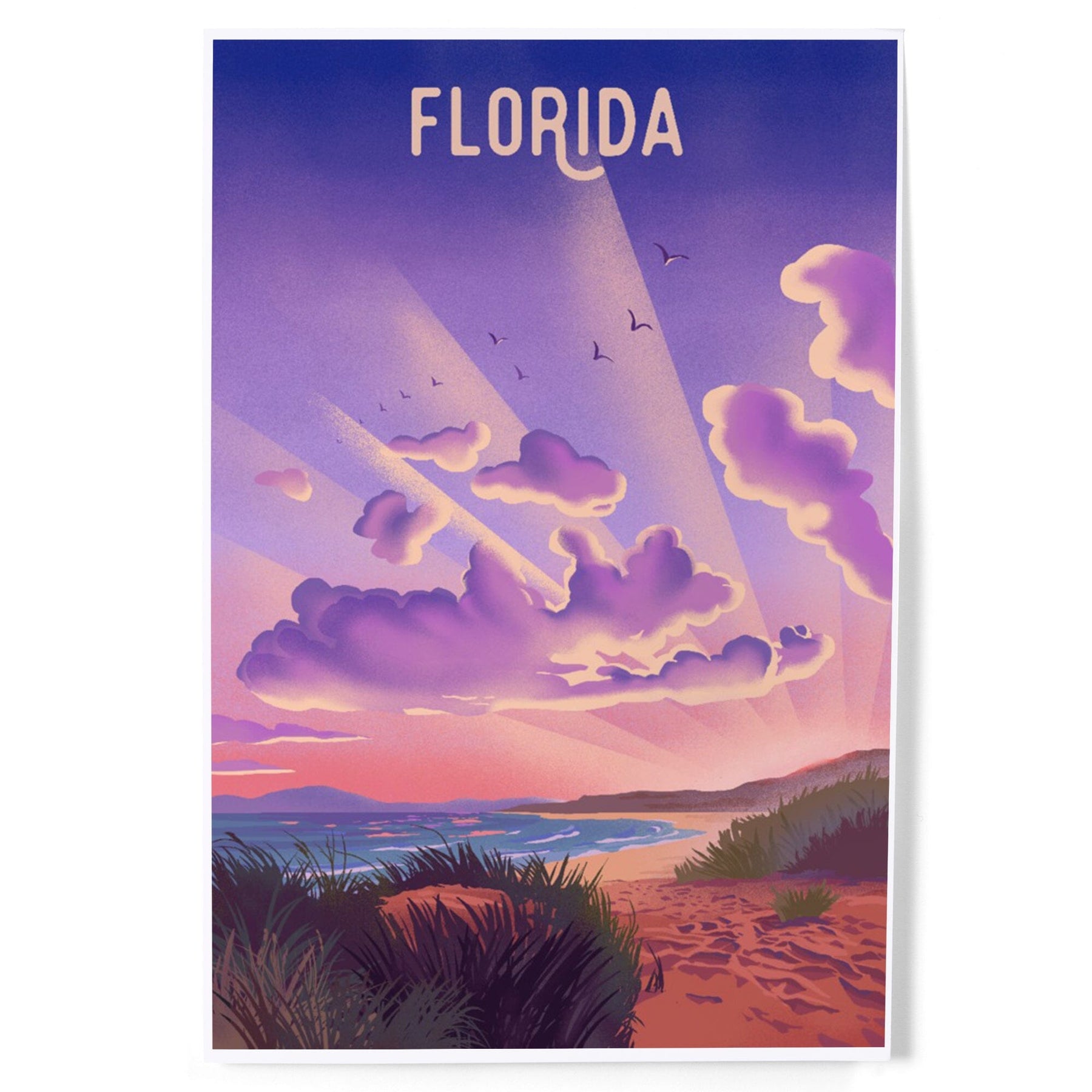 Florida, Beach Sunset, Lithograph, Art & Giclee Prints Art Lantern Press
