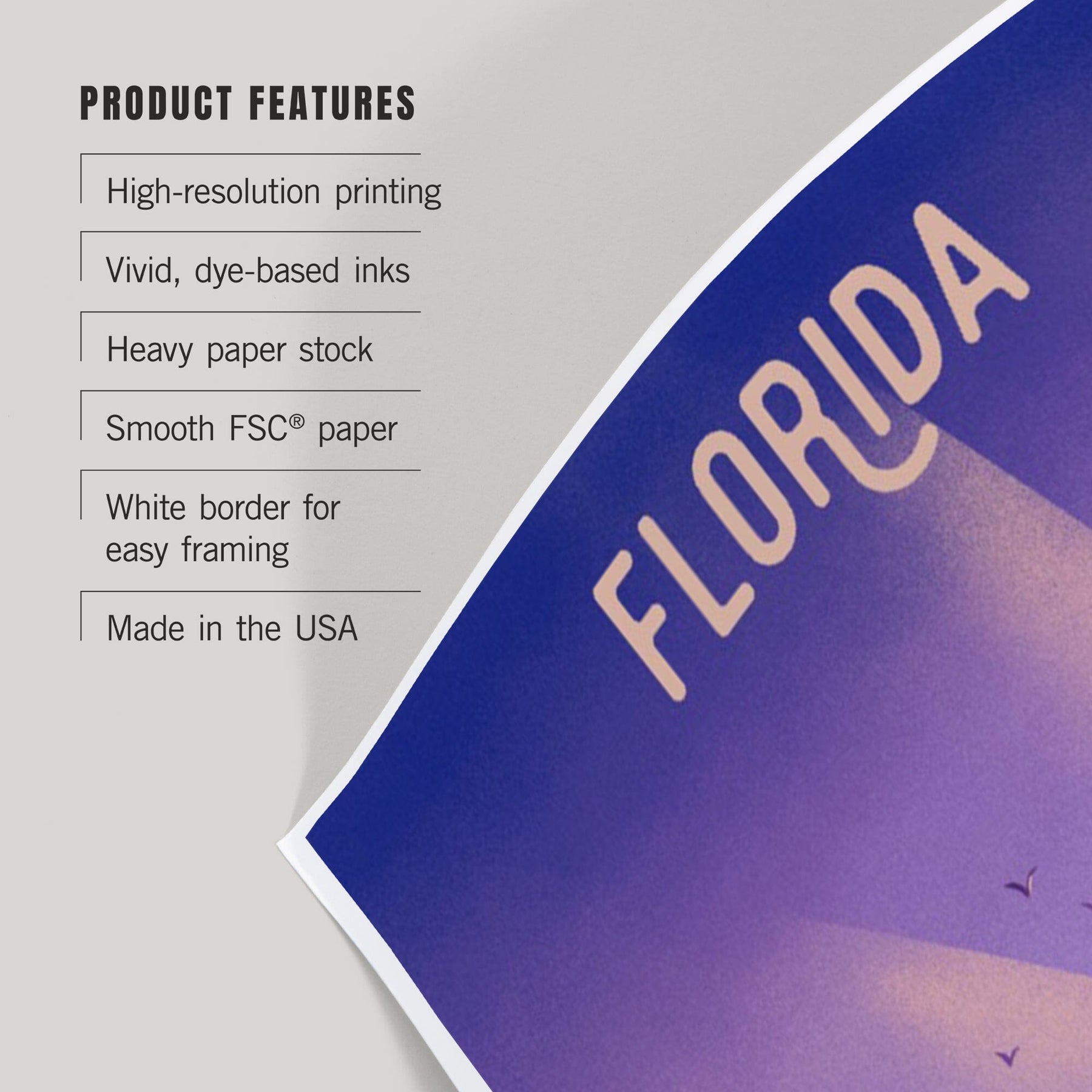 • Art prints include white borders along all edges of at least 1/4 inch
