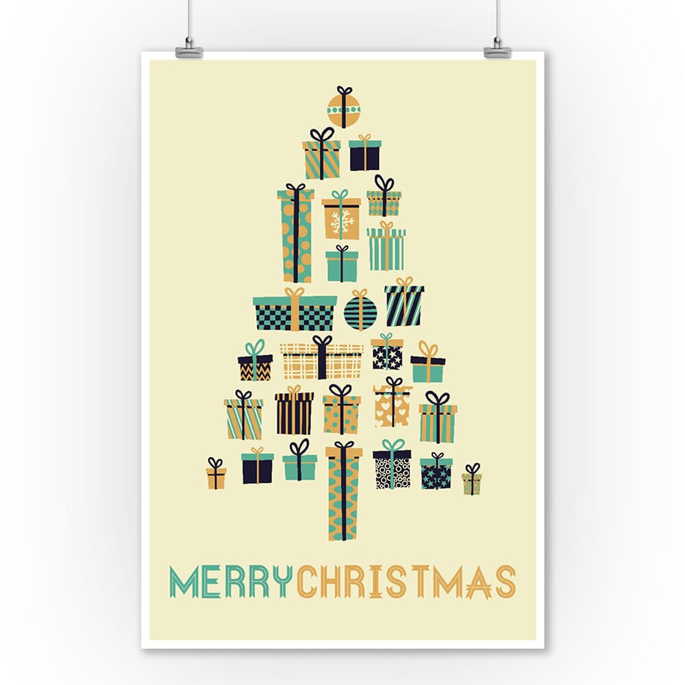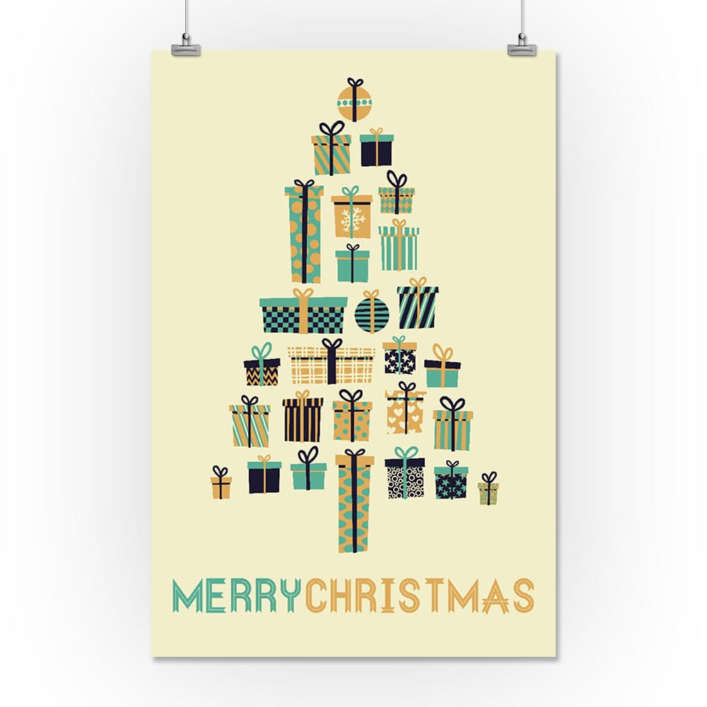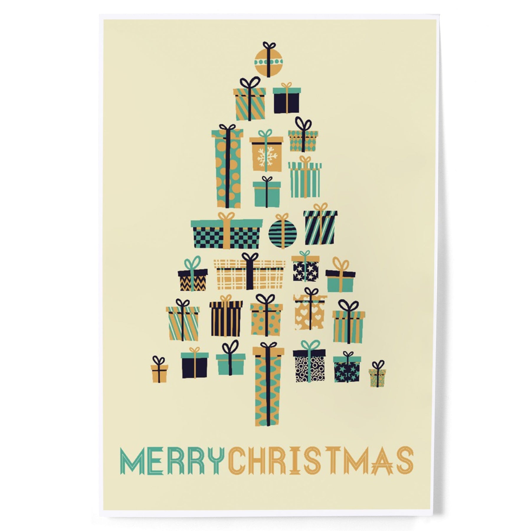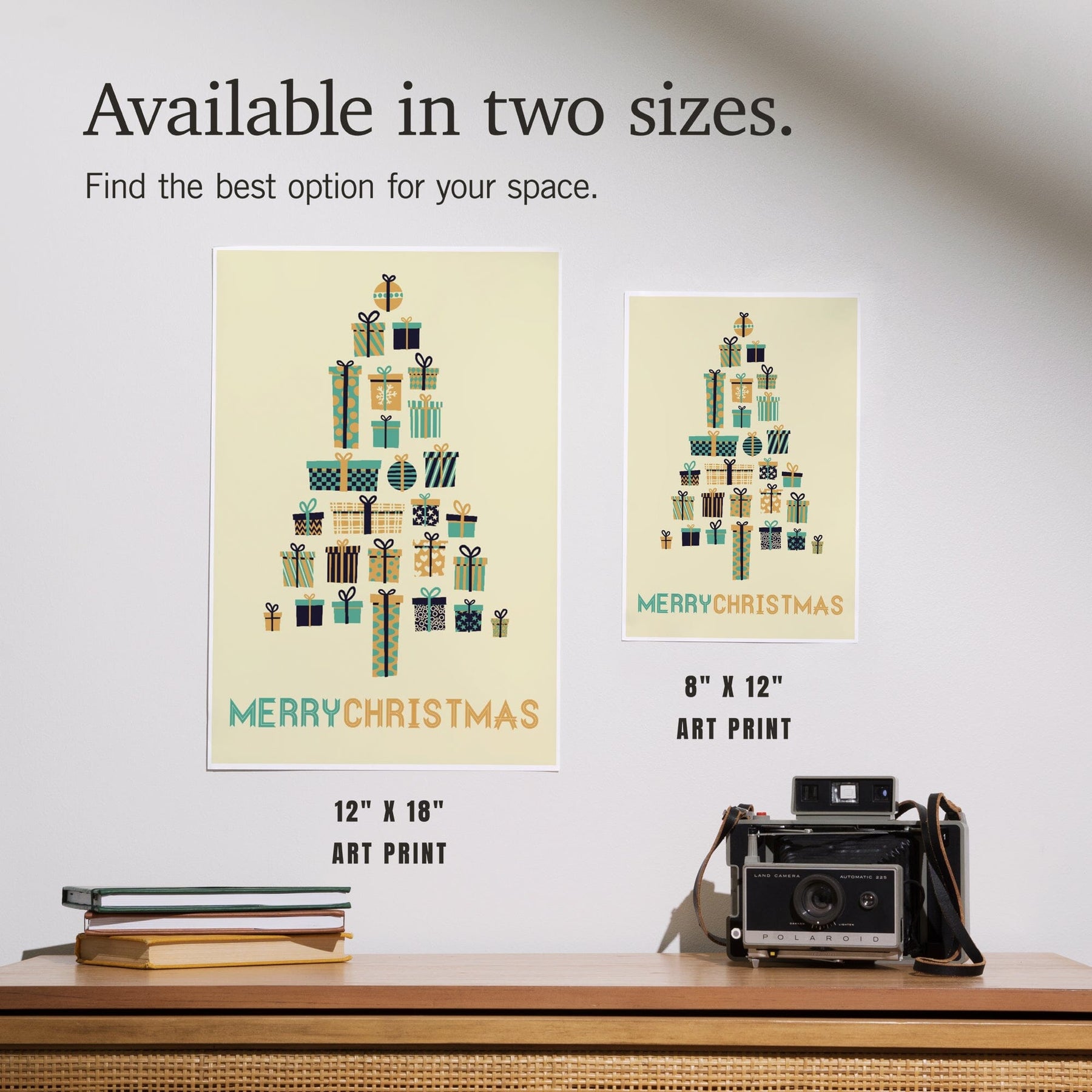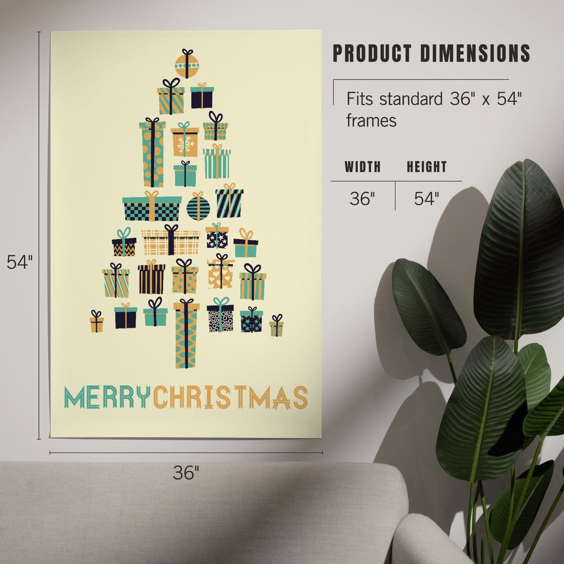 Gifts Tree, Retro Christmas, Art & Giclee Prints