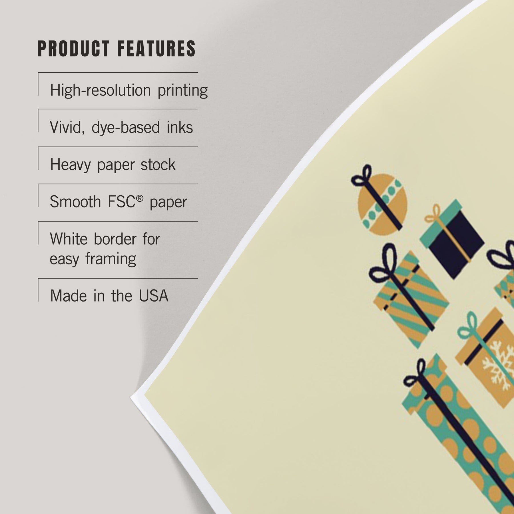 Gifts Tree, Retro Christmas, Art & Giclee Prints Art Lantern Press