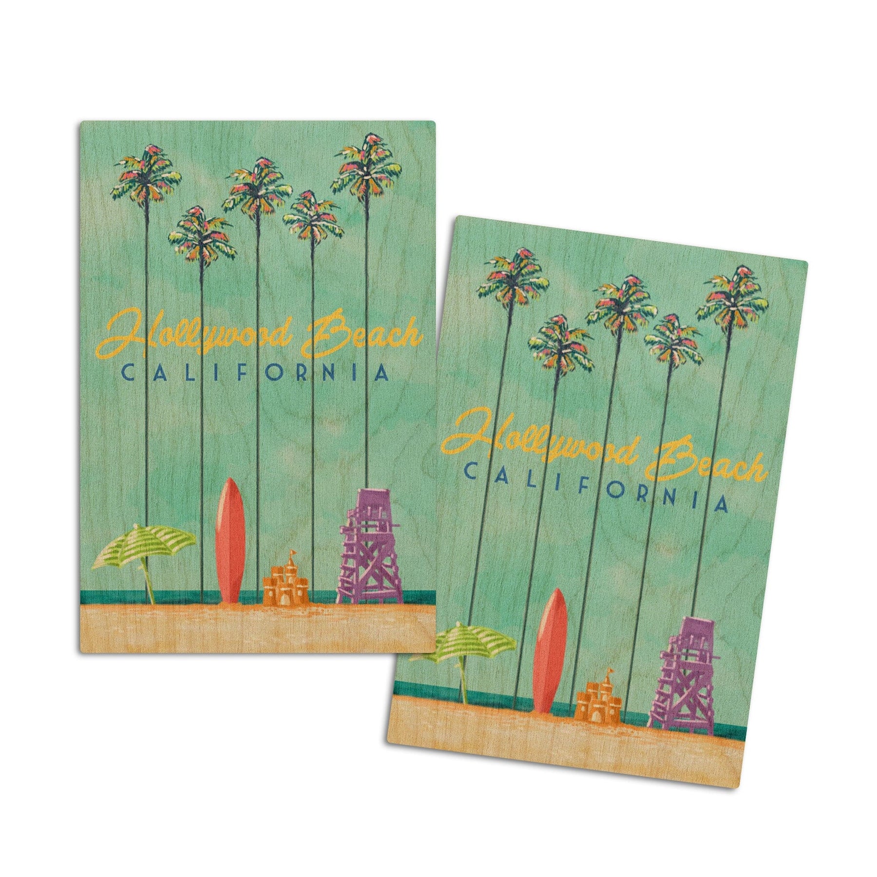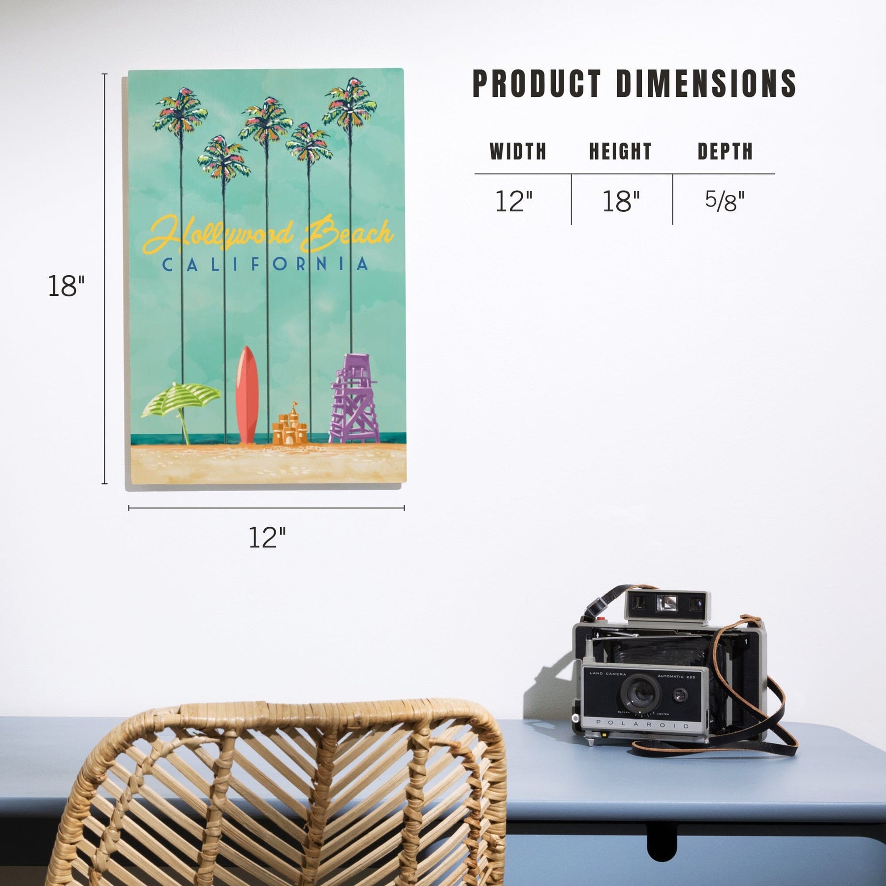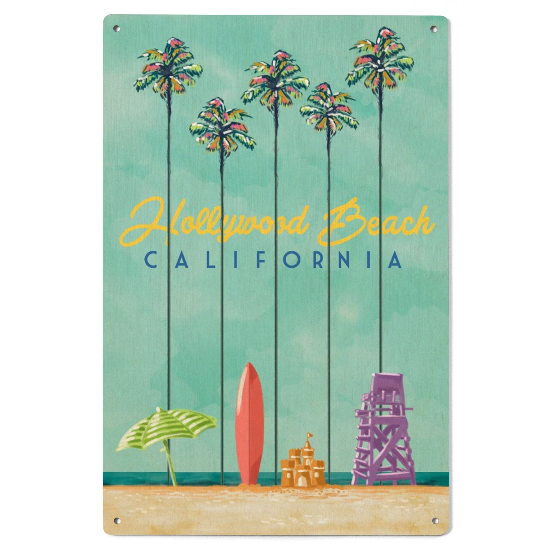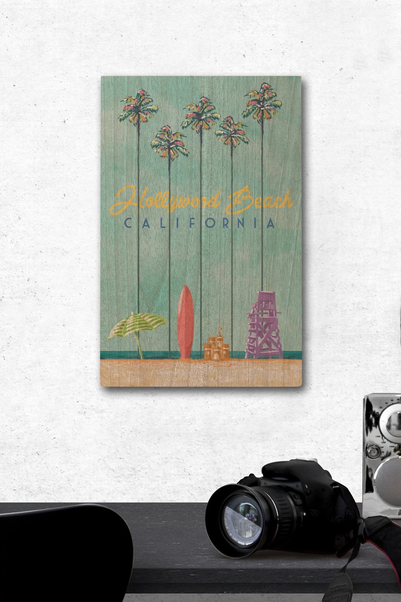 Hollywood Beach, California, Tall Palms Beach Scene, Lantern Press Artwork, Wood Signs and Postcards