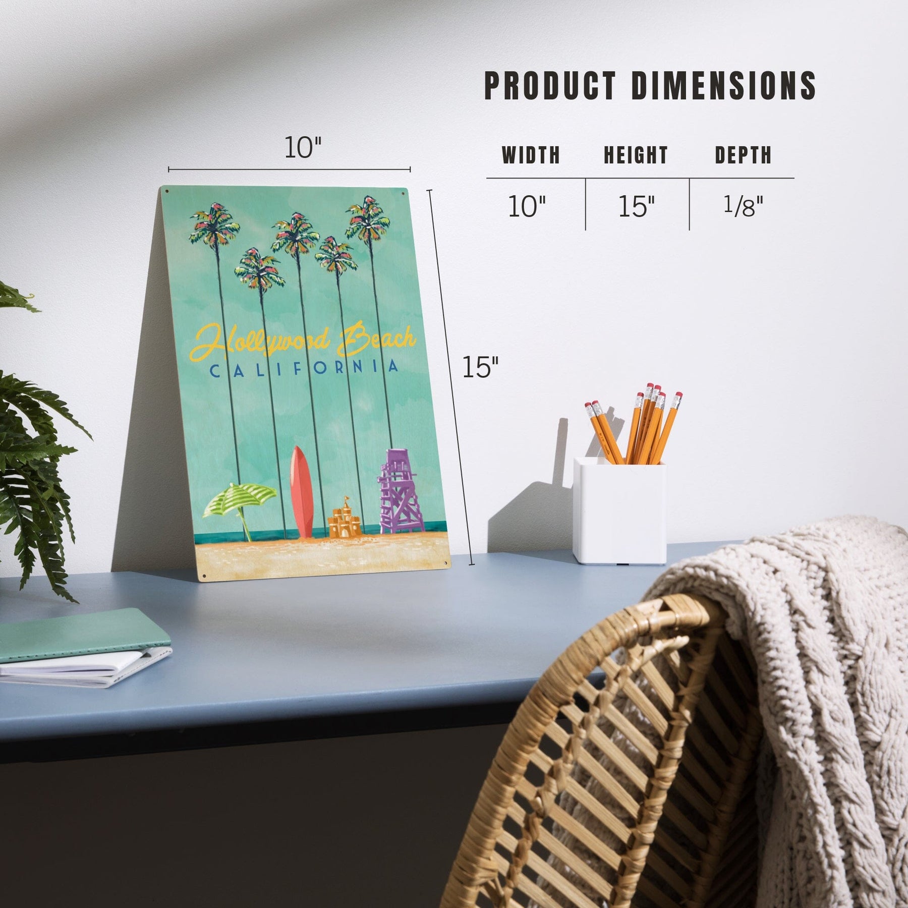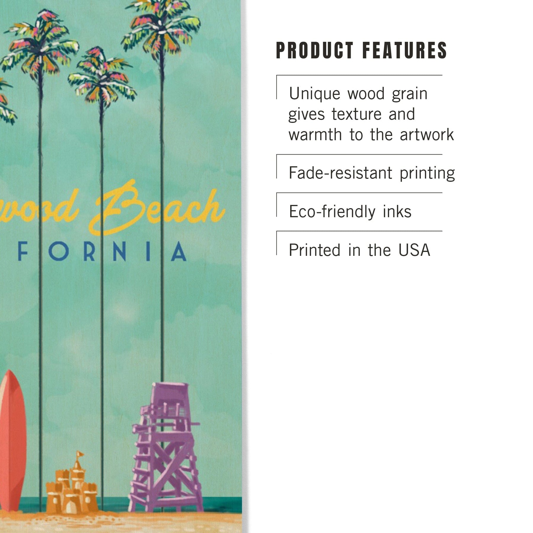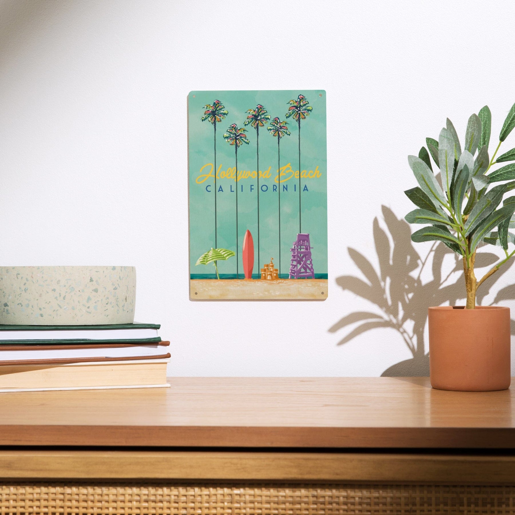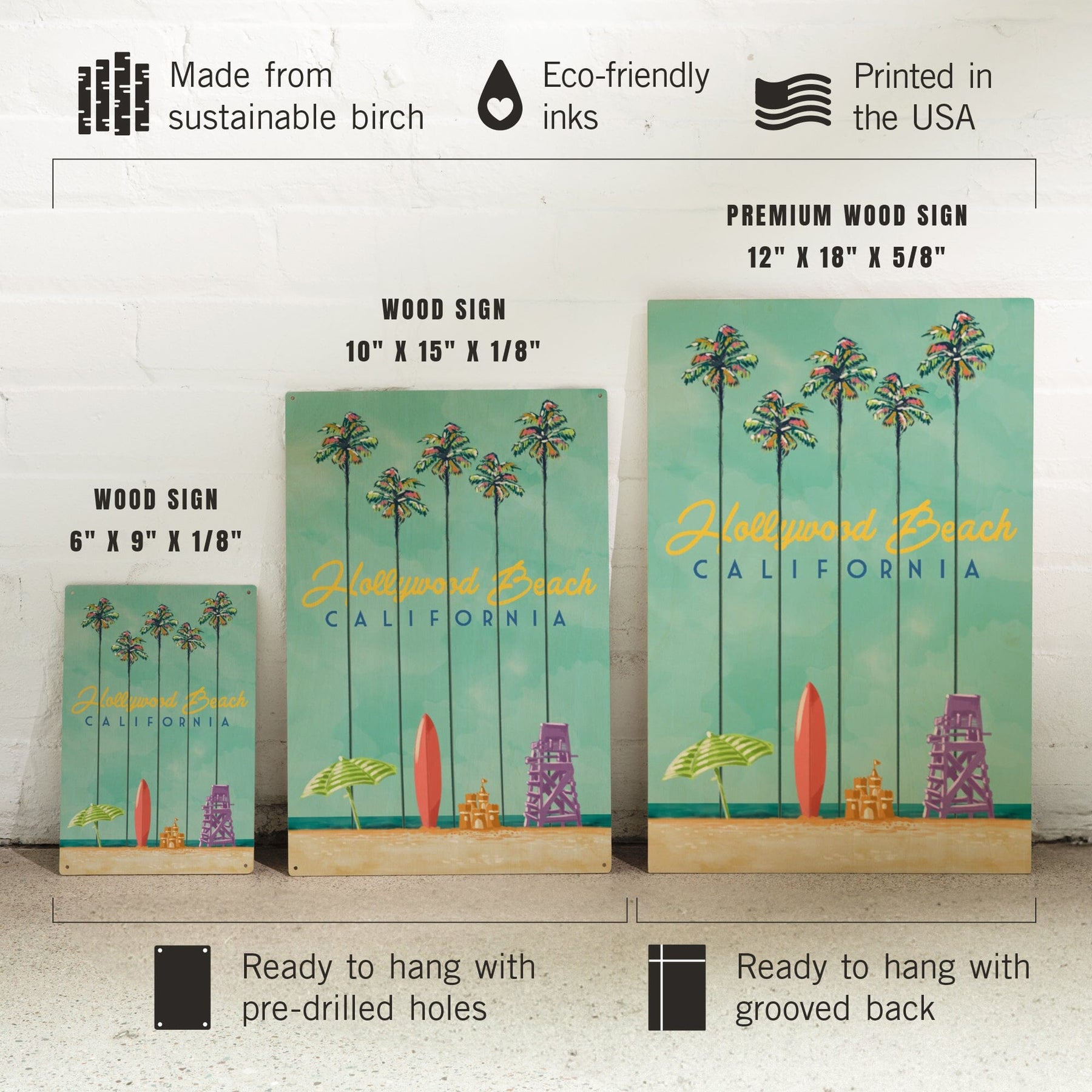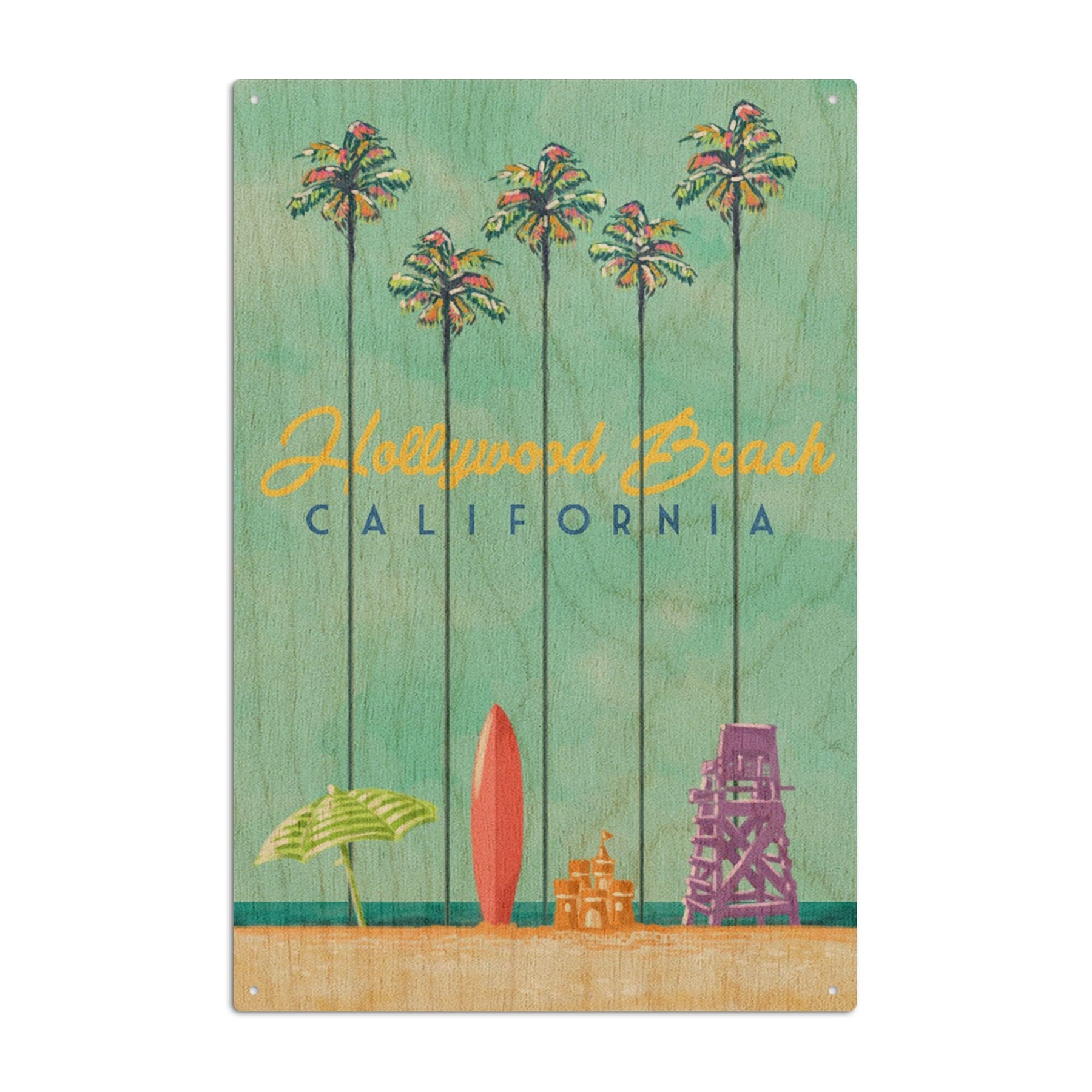 Hollywood Beach, California, Tall Palms Beach Scene, Lantern Press Artwork, Wood Signs and Postcards