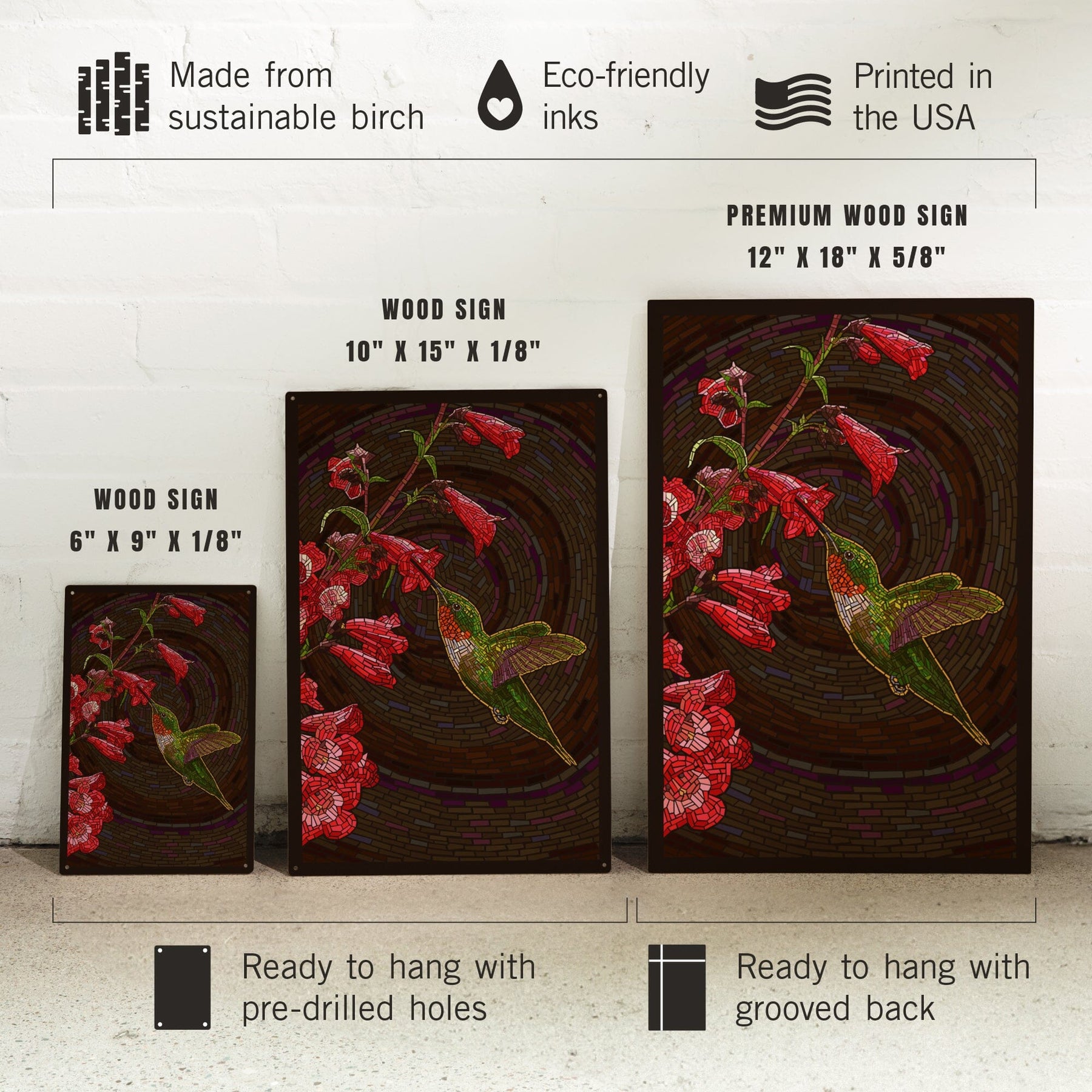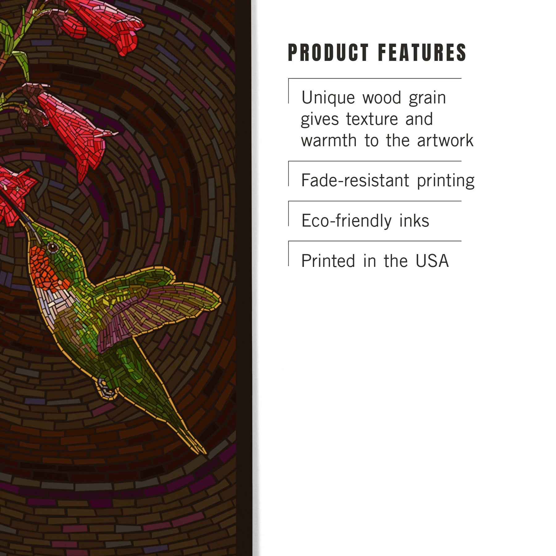 Hummingbird, Paper Mosaic, Lantern Press Artwork, Wood Signs and Postcards