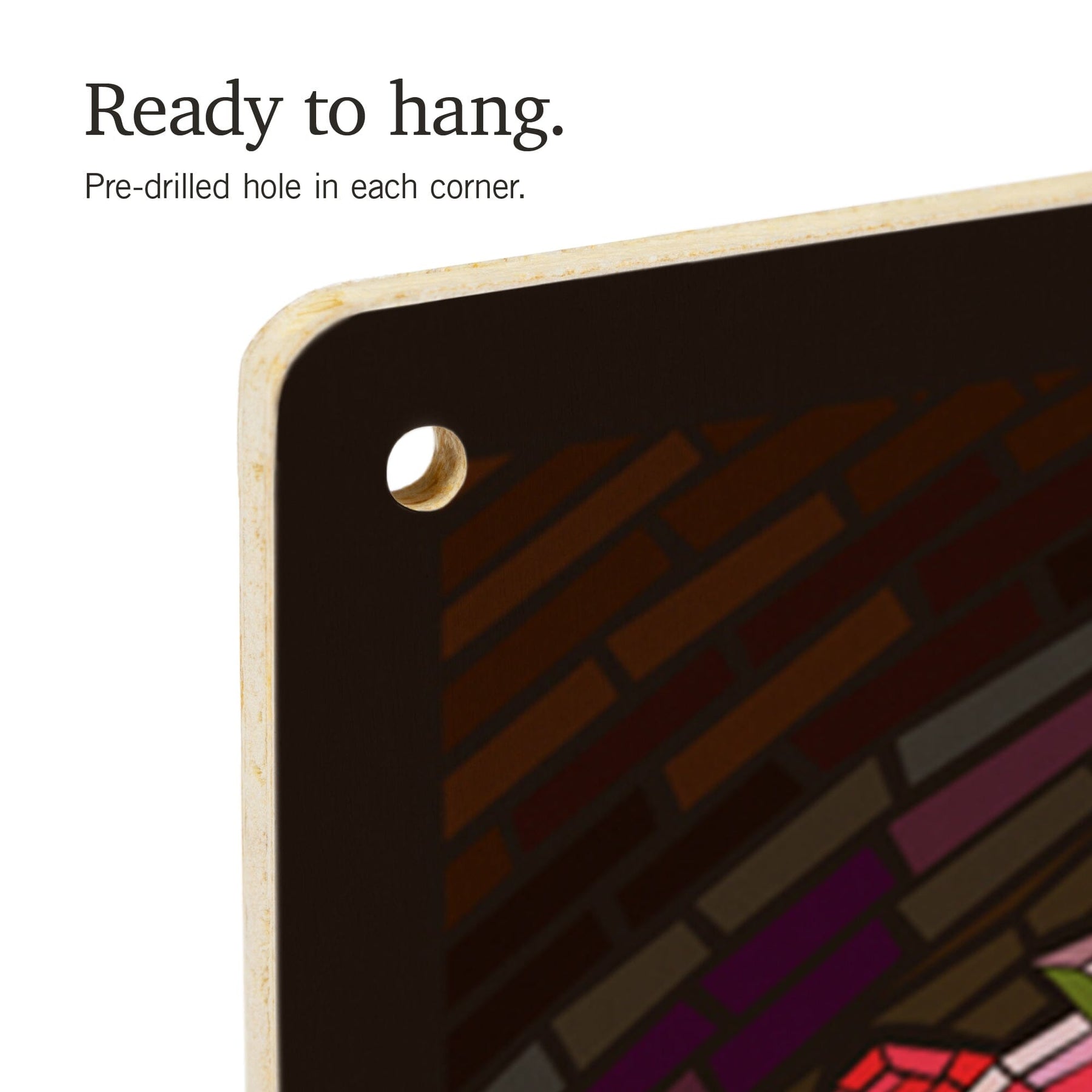 • Hole in each corner, ready to hang
