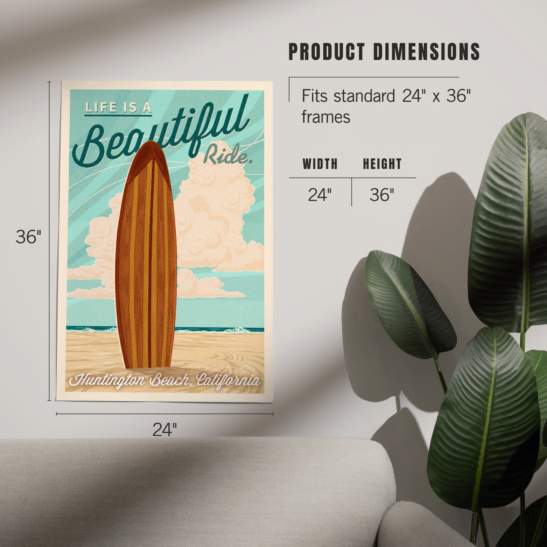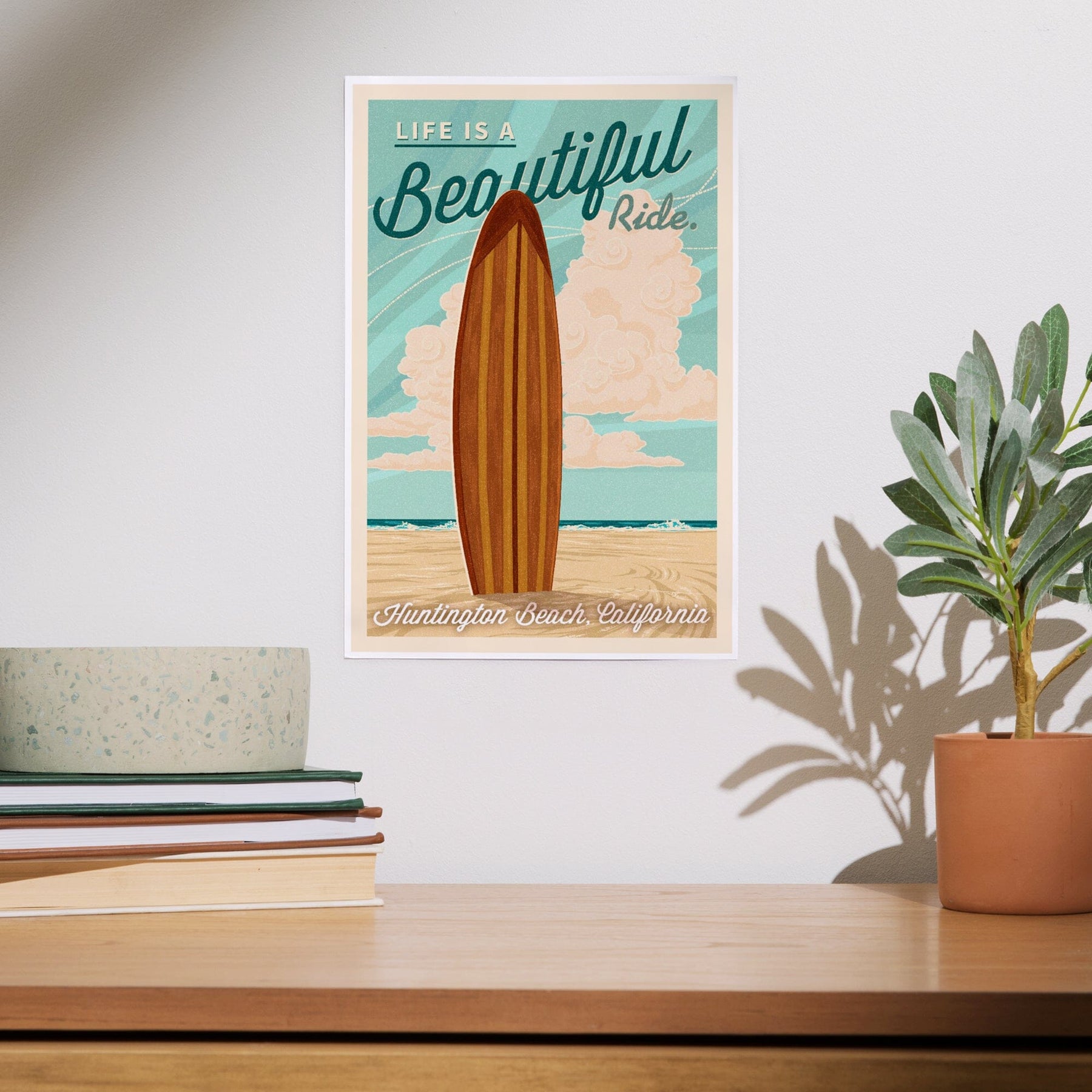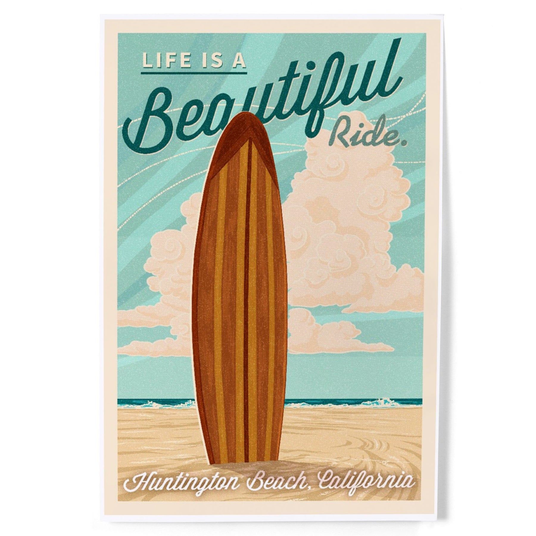 Huntington Beach, California, Letterpress, Life is a Beautiful Ride, Art & Giclee Prints - Lantern Press