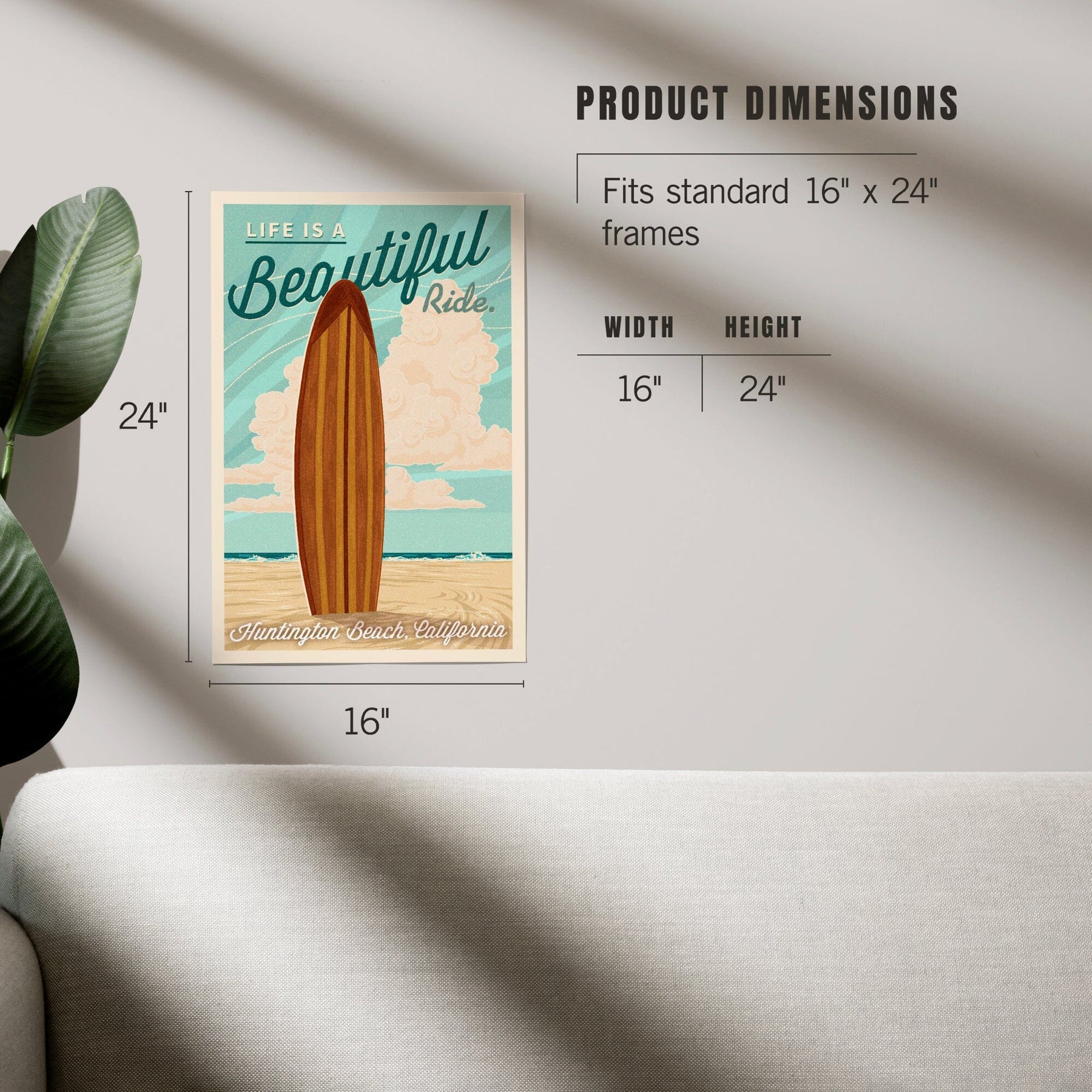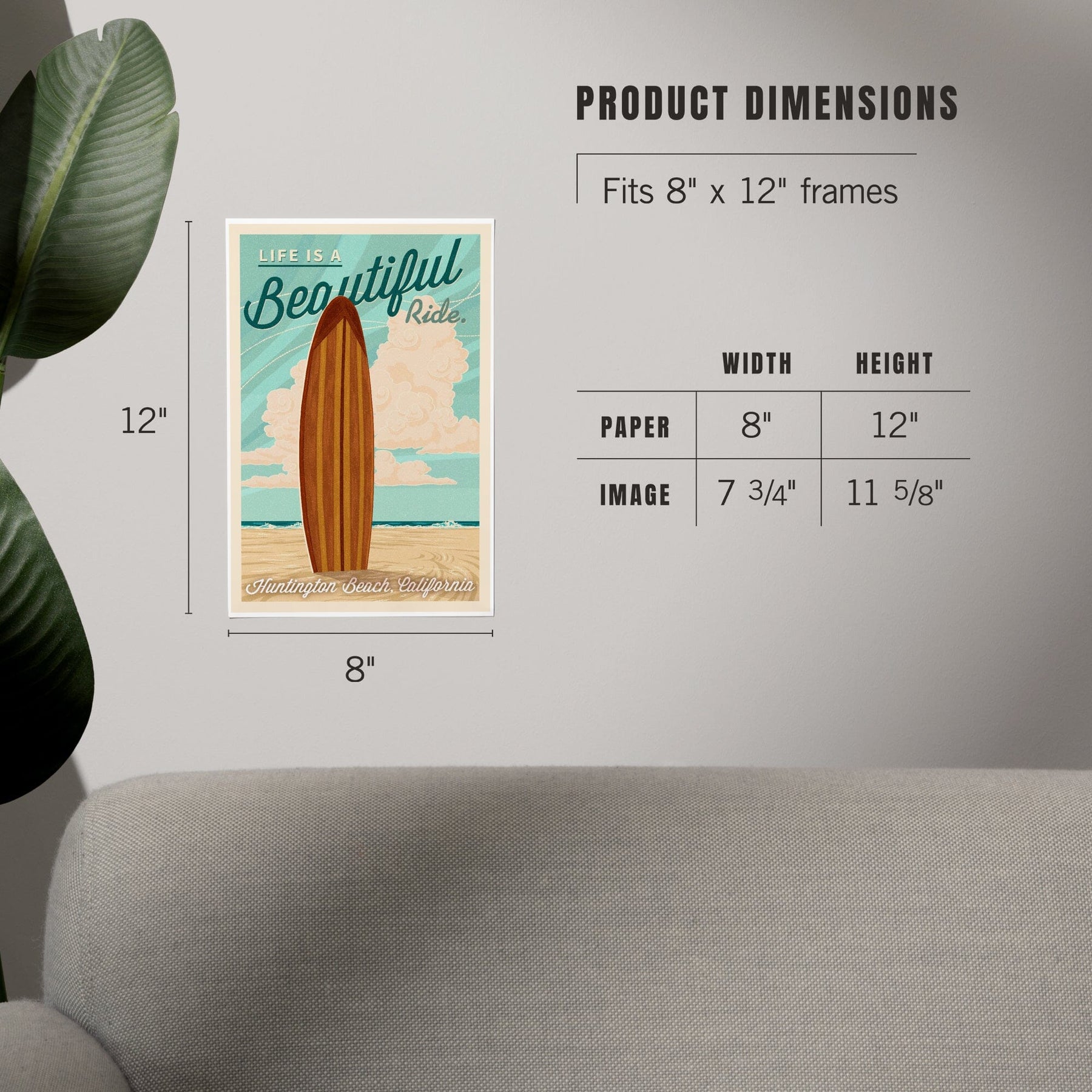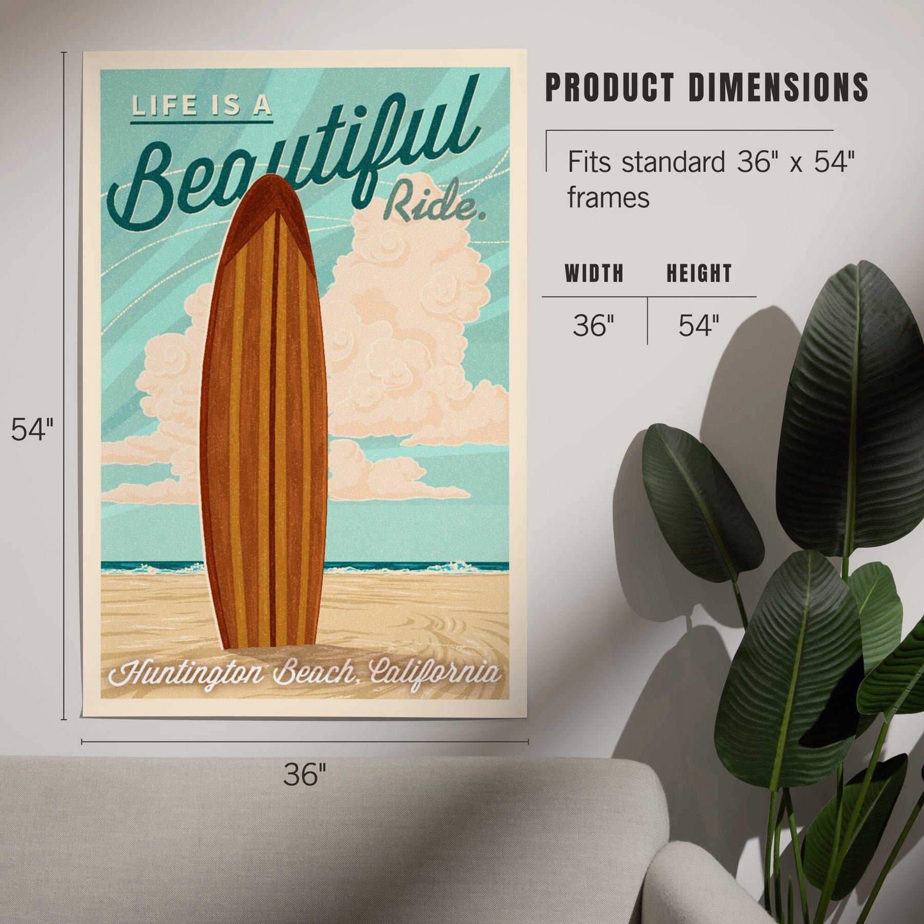 Huntington Beach, California, Letterpress, Life is a Beautiful Ride, Art & Giclee Prints - Lantern Press