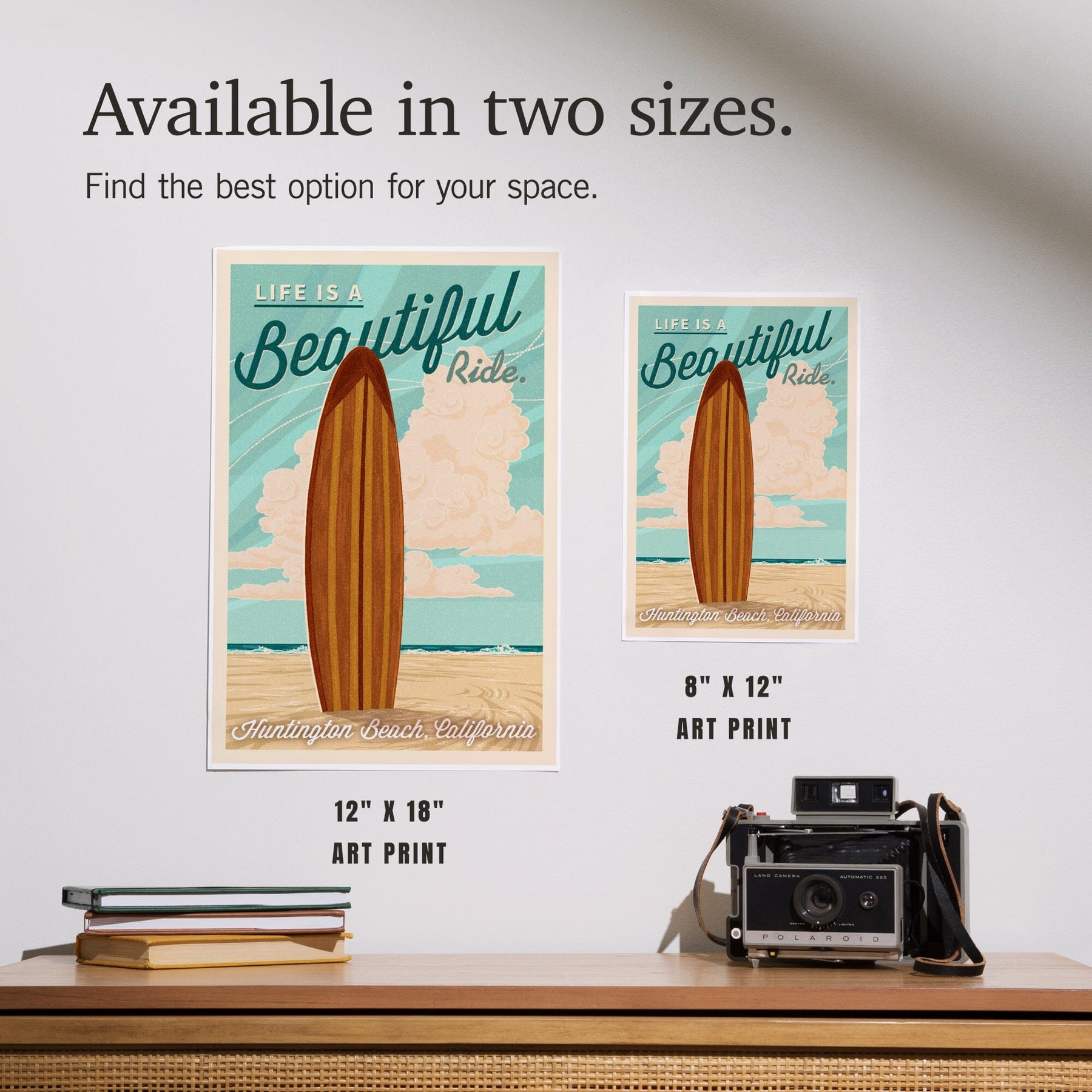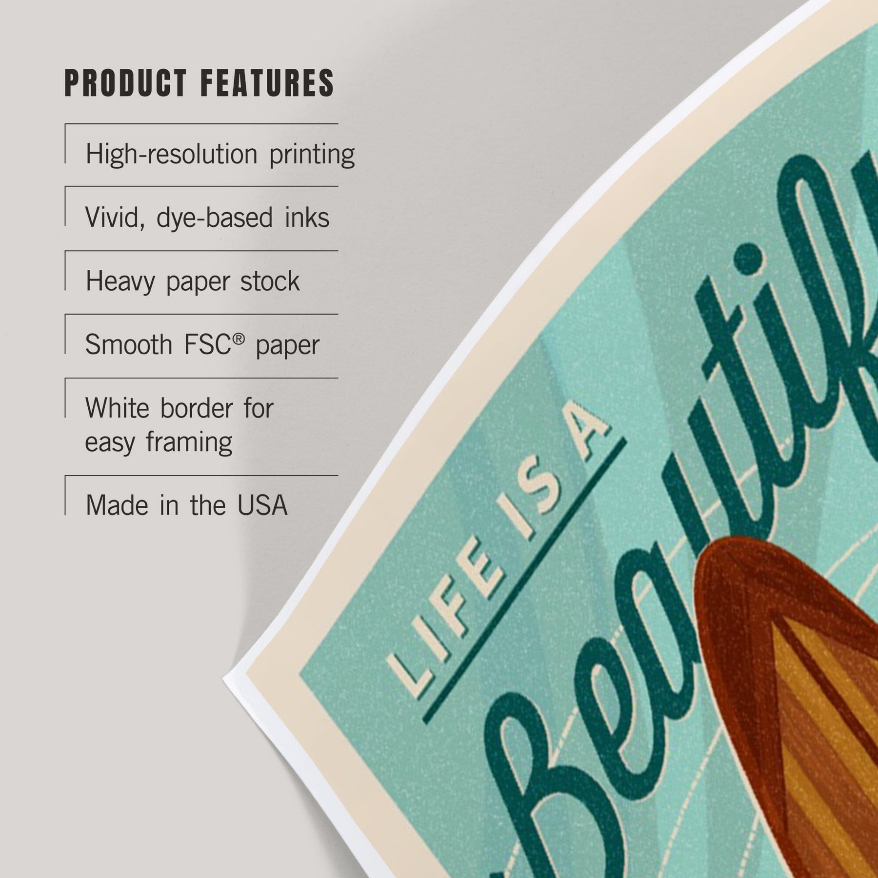 Huntington Beach, California, Letterpress, Life is a Beautiful Ride, Art & Giclee Prints