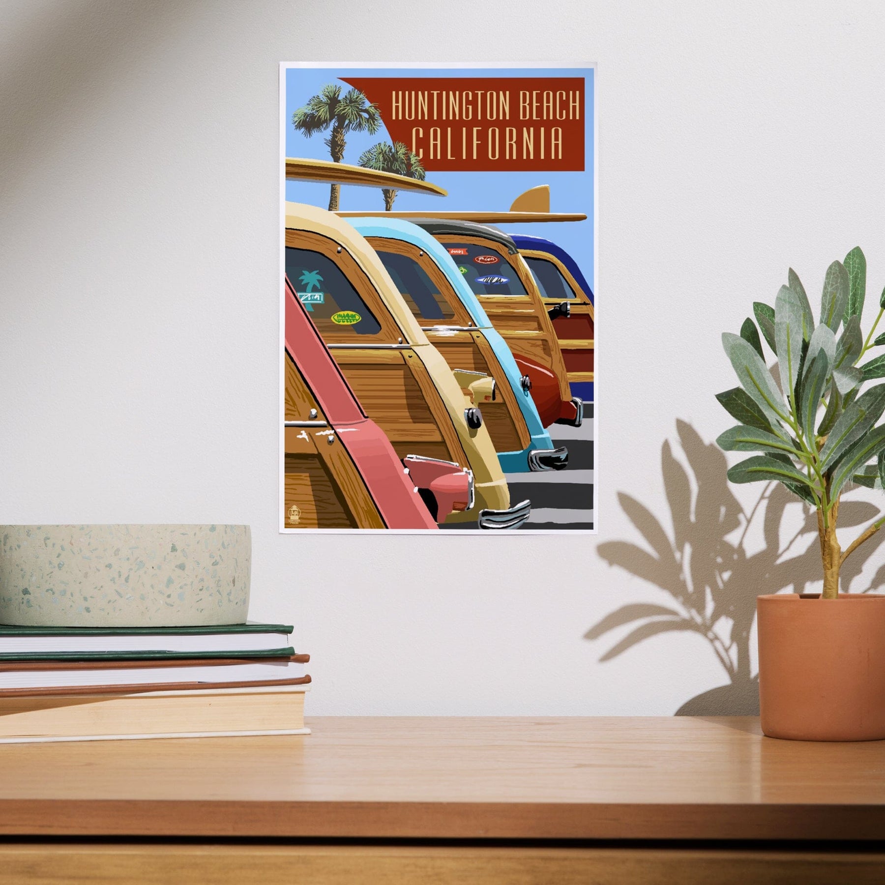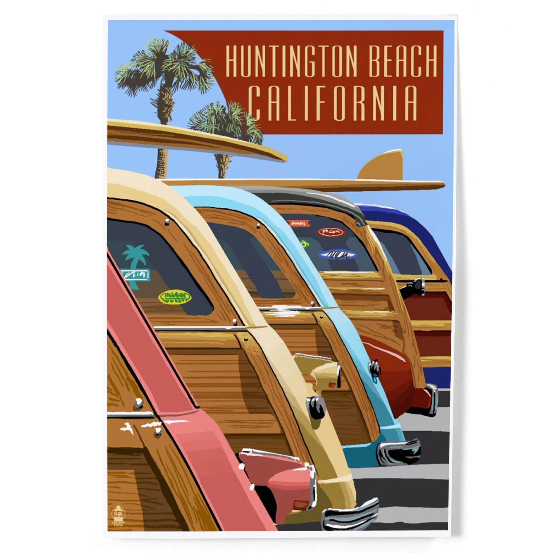 Huntington Beach, California, Woodies Lined Up, Art & Giclee Prints - Lantern Press
