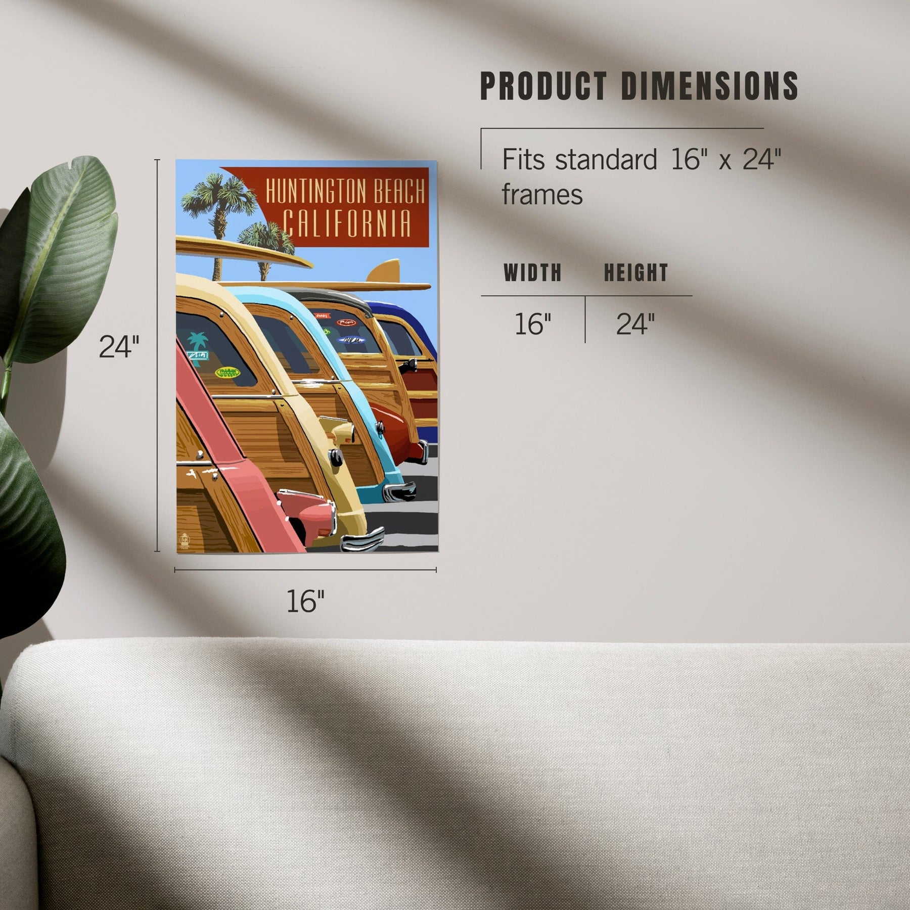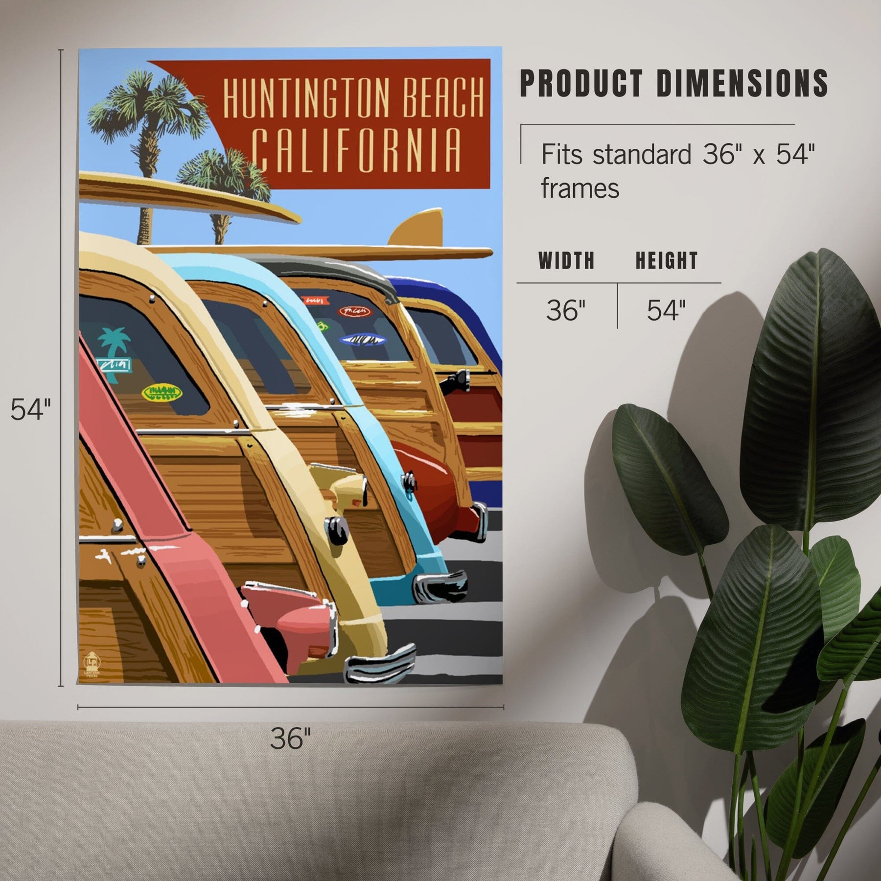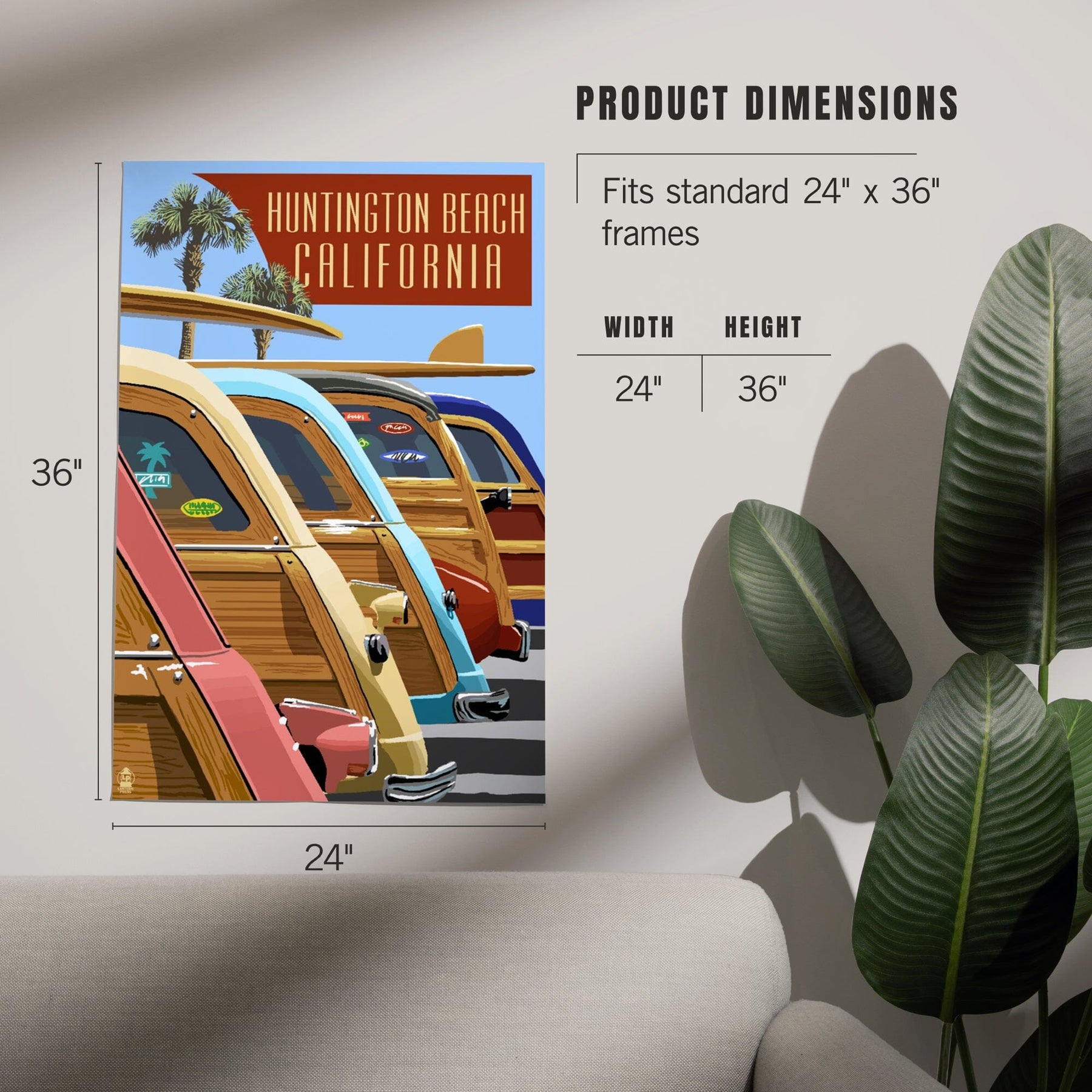 Huntington Beach, California, Woodies Lined Up, Art & Giclee Prints