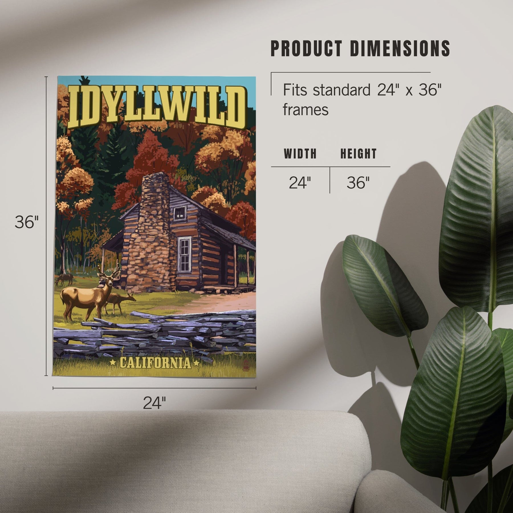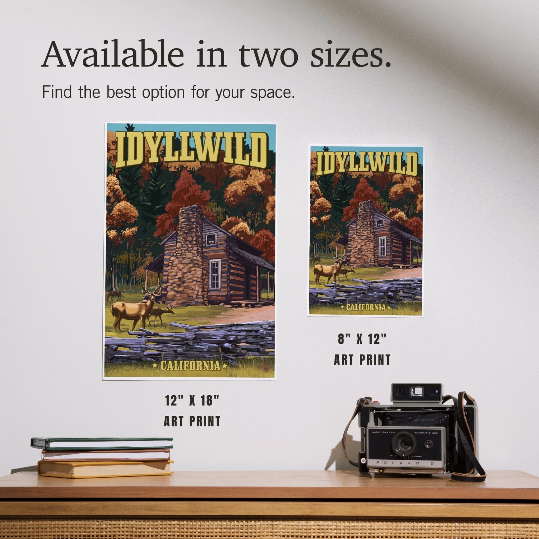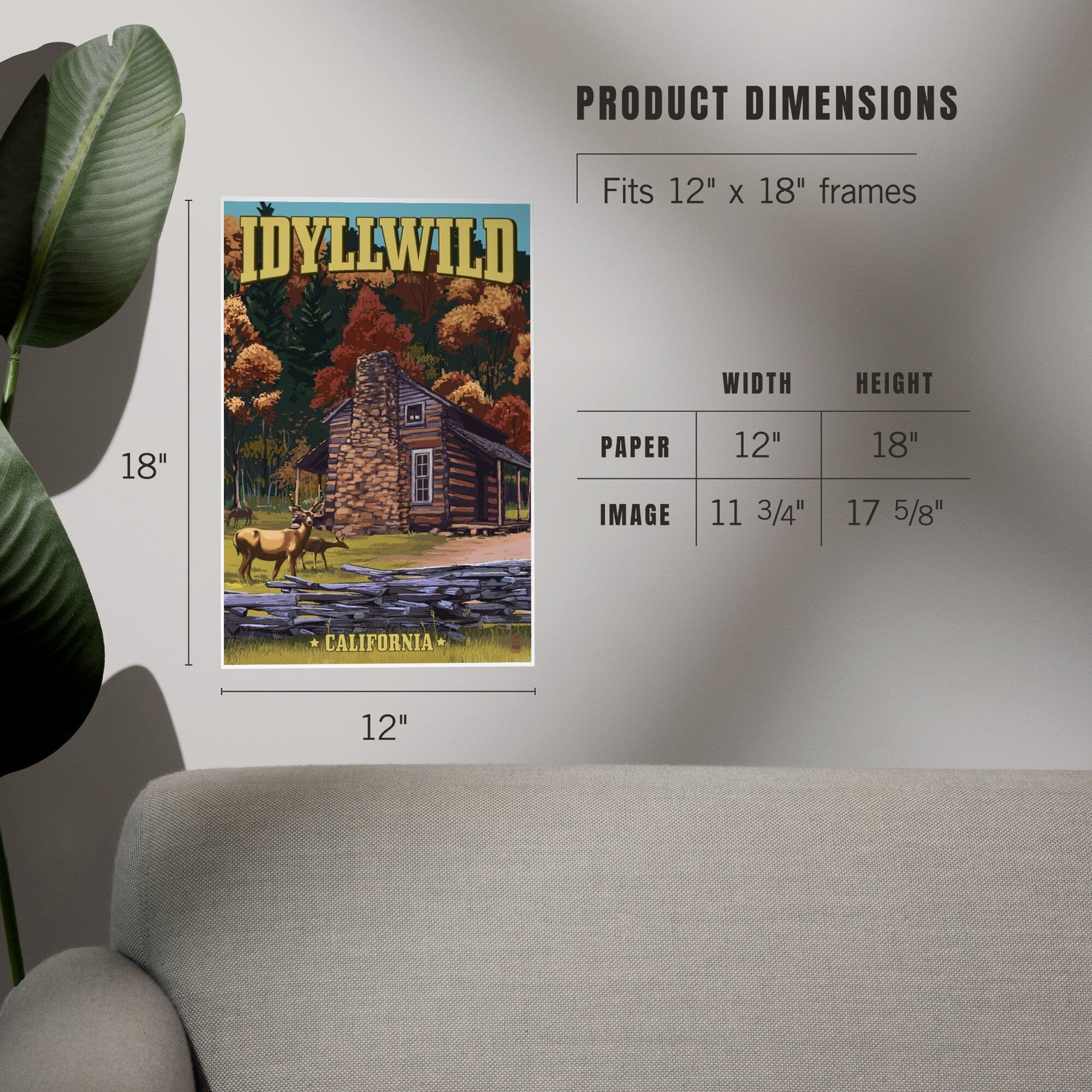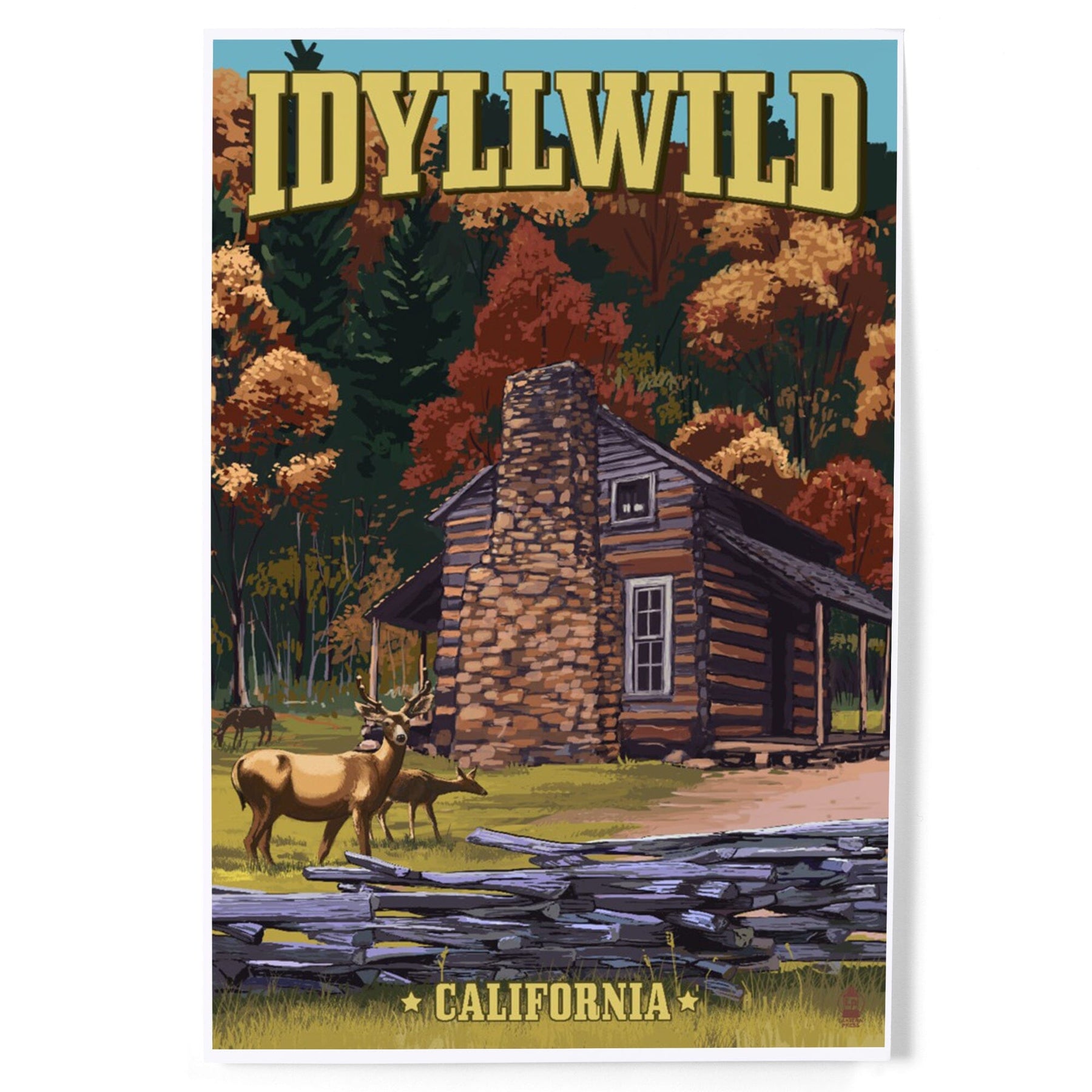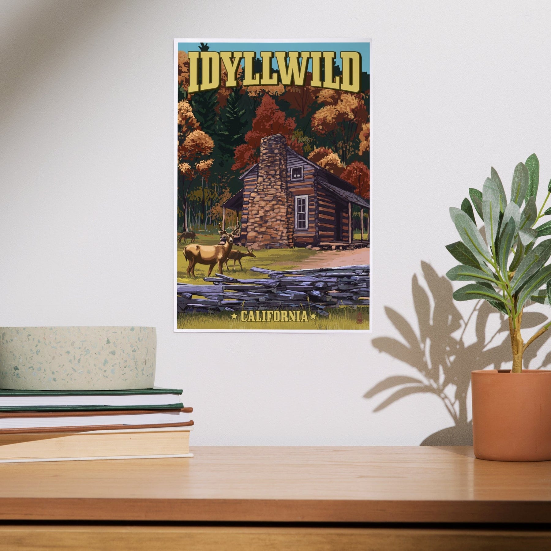 Idyllwild, California, Deer Family and Cabin Scene, Art & Giclee Prints