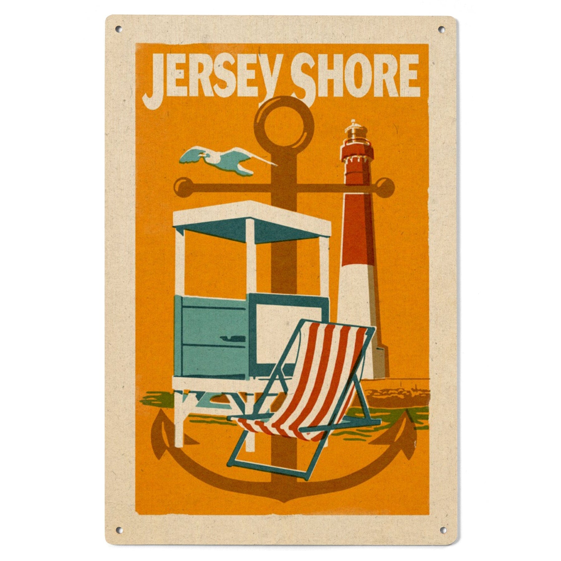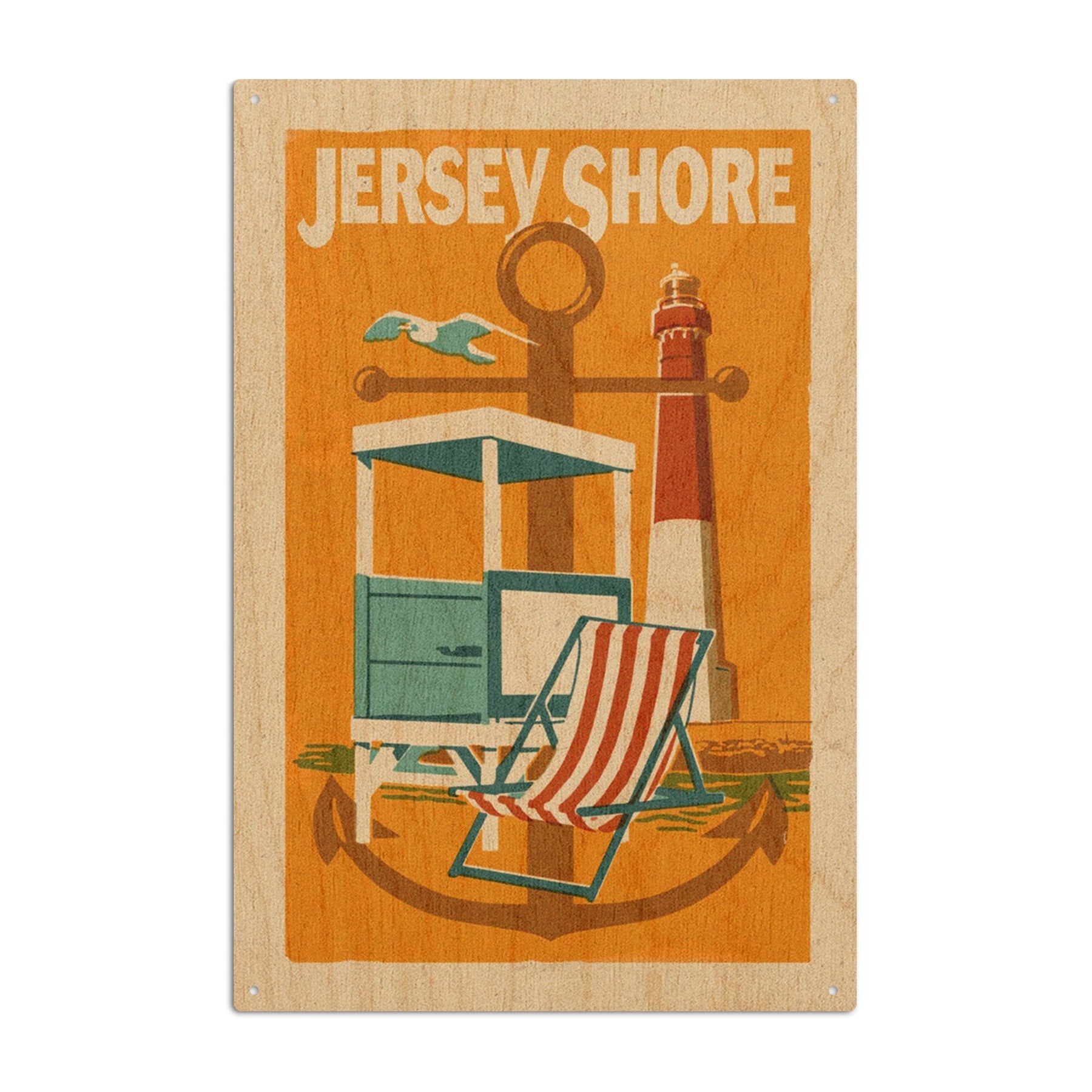 Jersey Shore, Woodblock, Lantern Press Artwork, Wood Signs and Postcards - Lantern Press