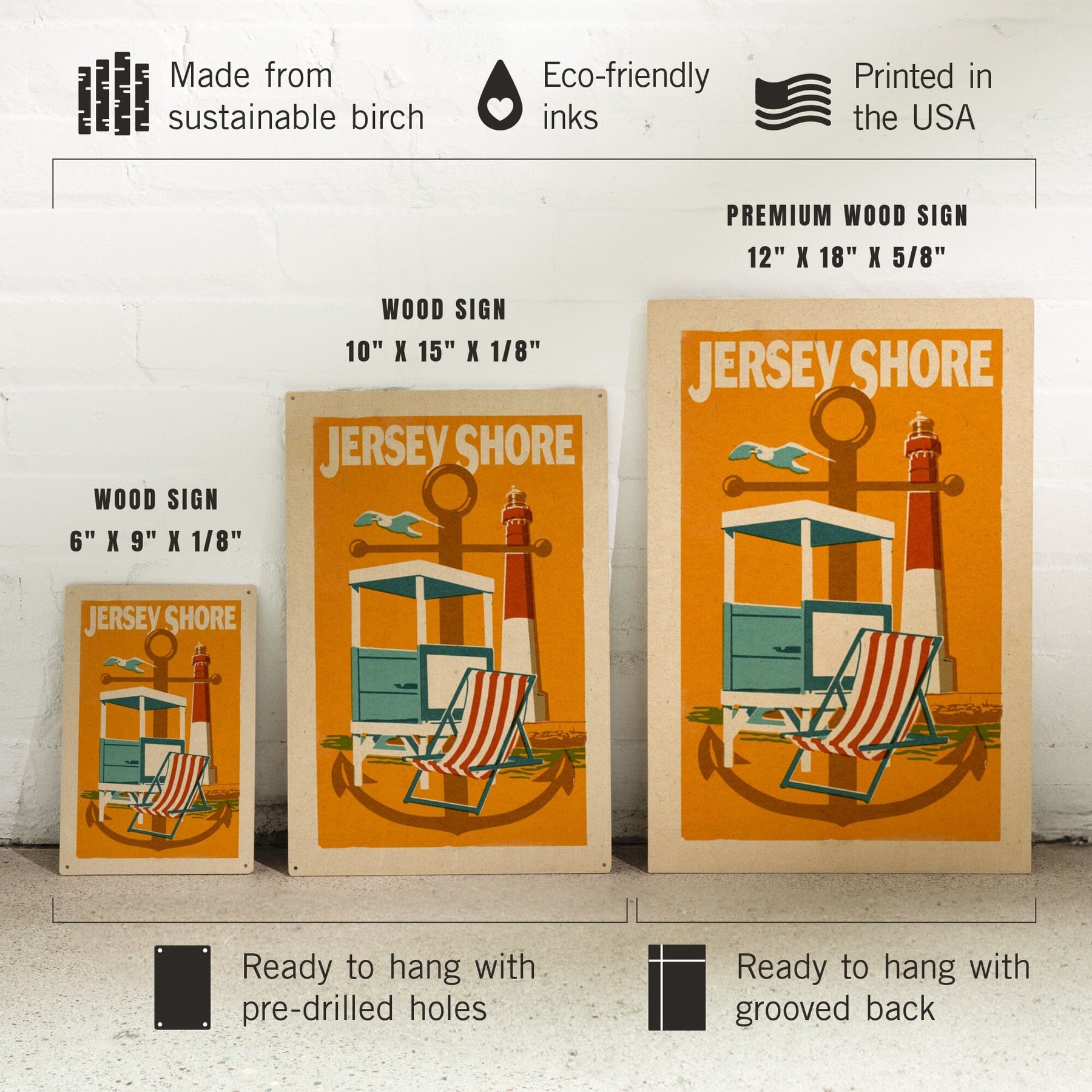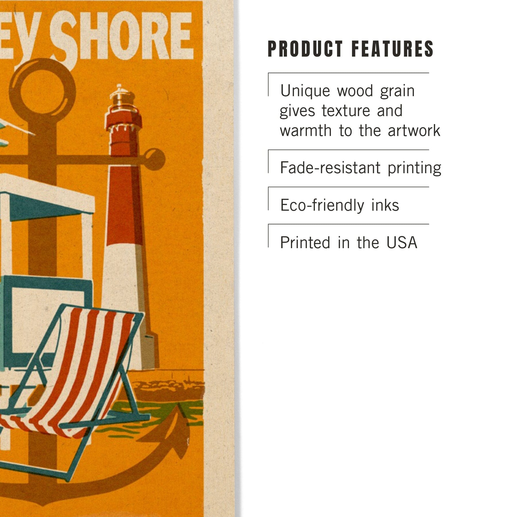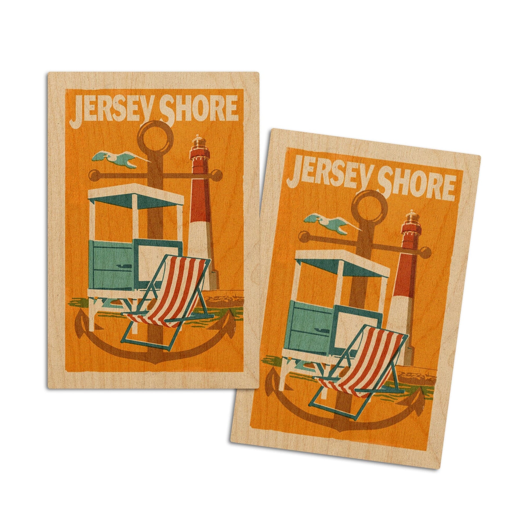 Jersey Shore, Woodblock, Lantern Press Artwork, Wood Signs and Postcards
