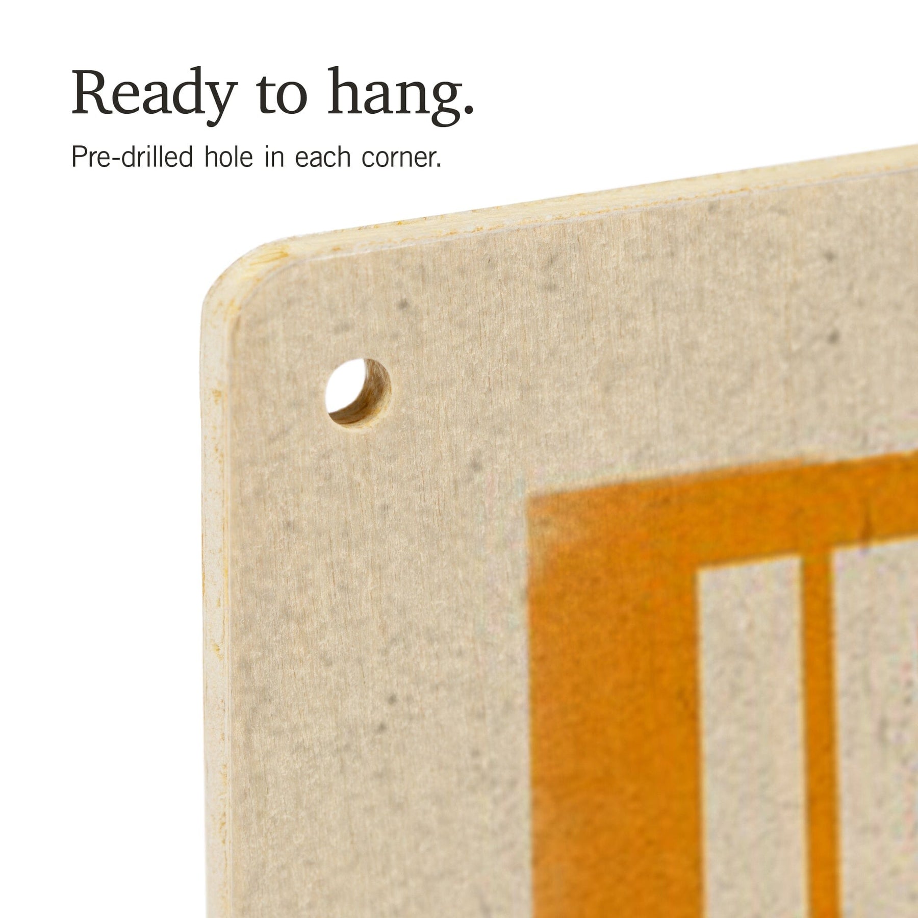 • Hole in each corner, ready to hang