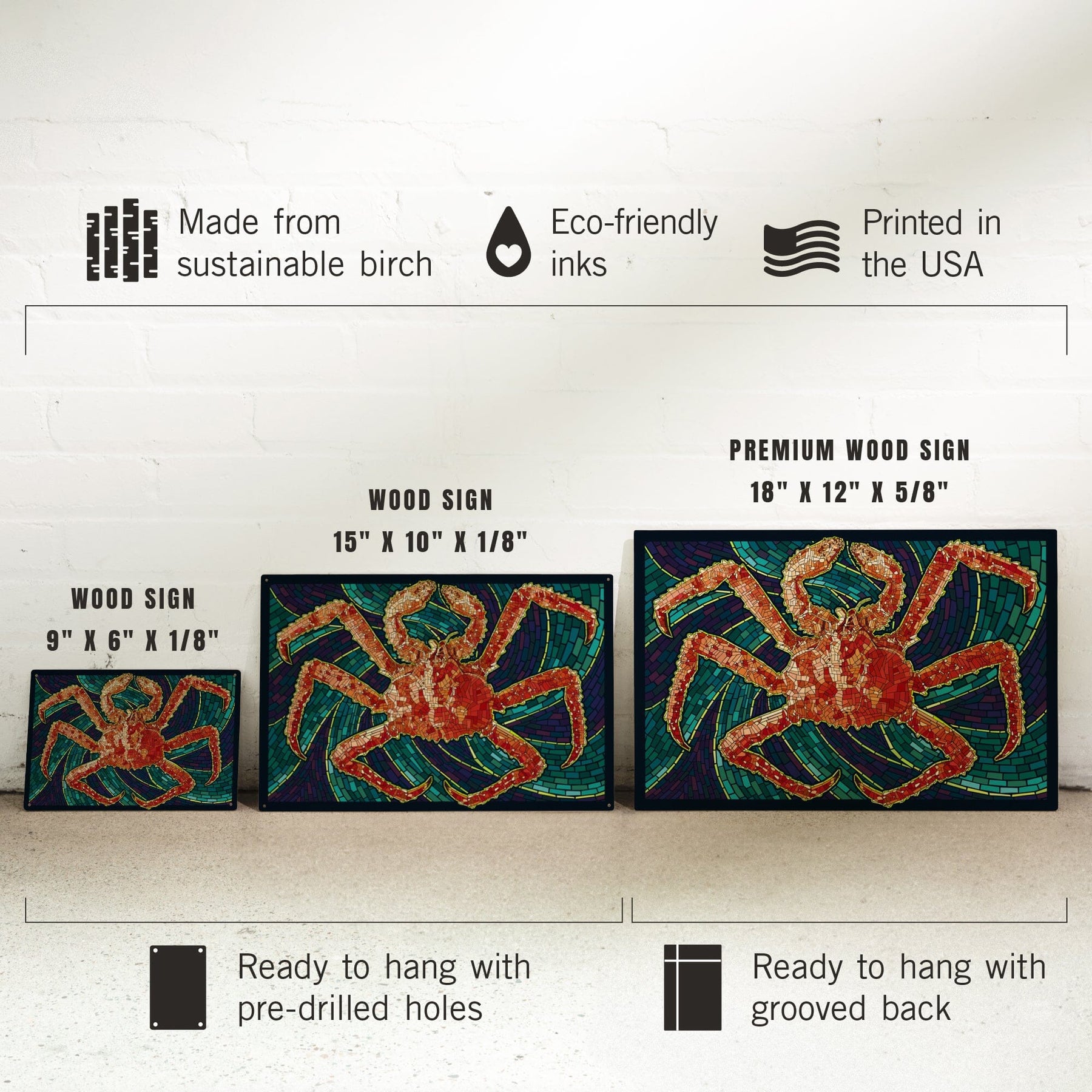 King Crab, Mosaic, Lantern Press Poster, Wood Signs and Postcards