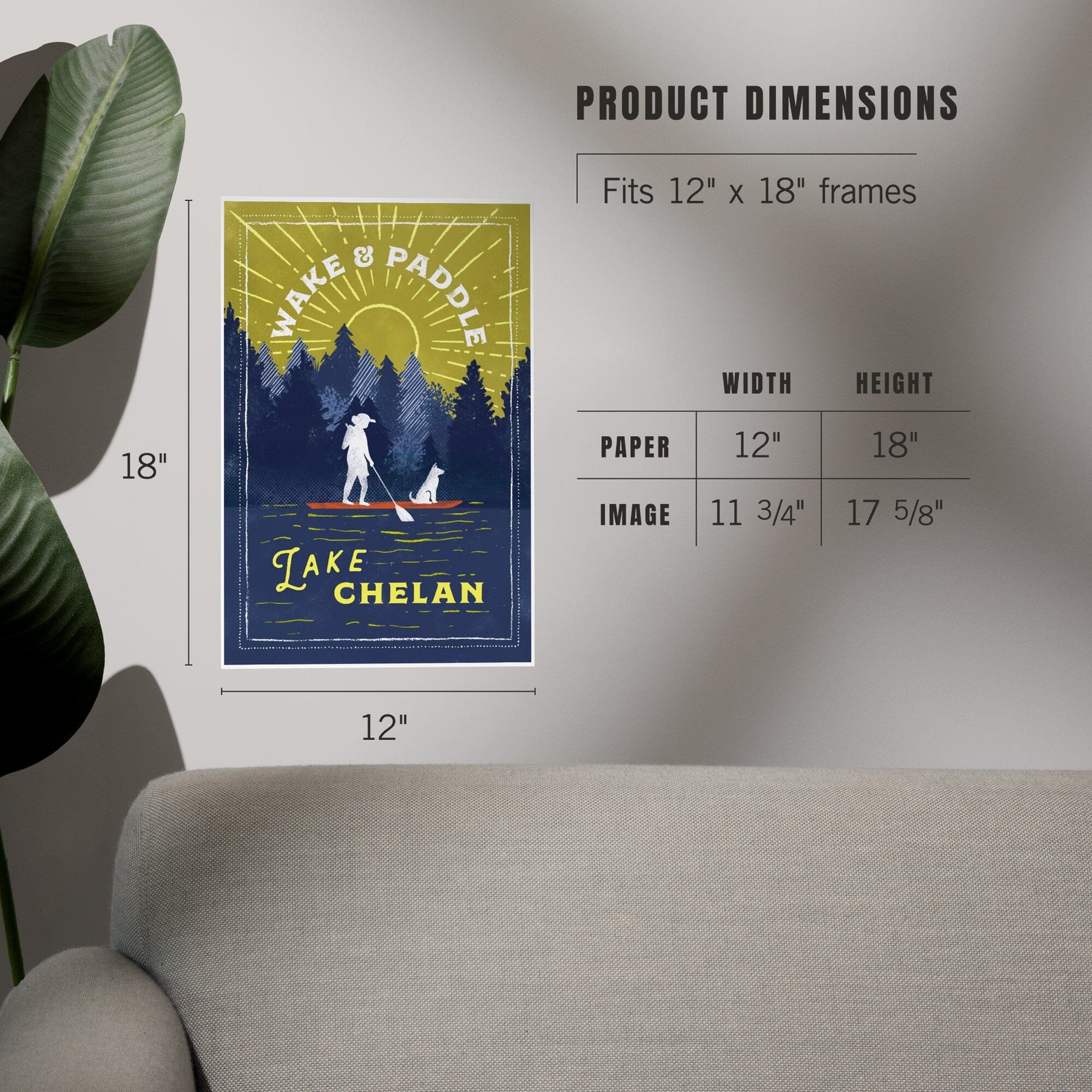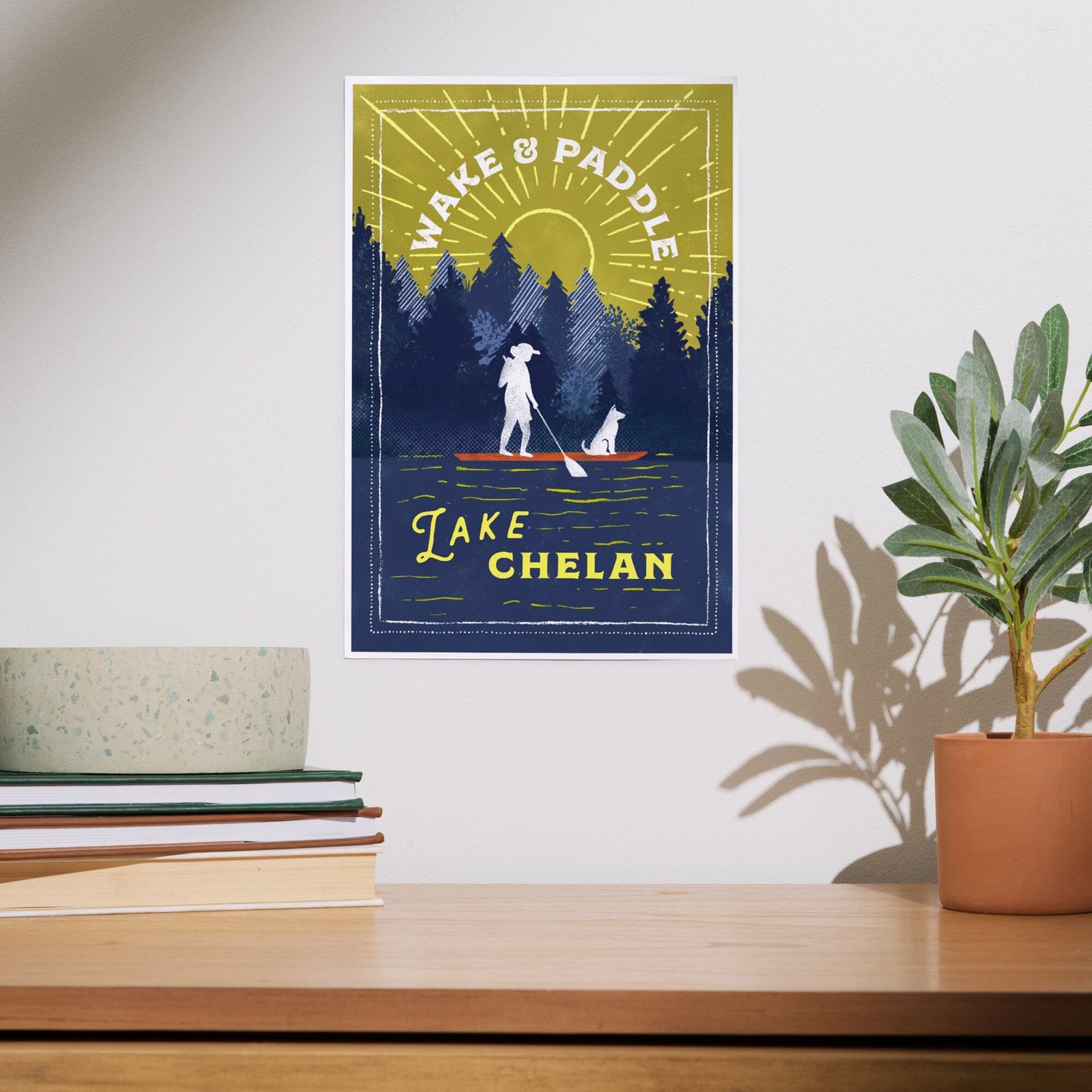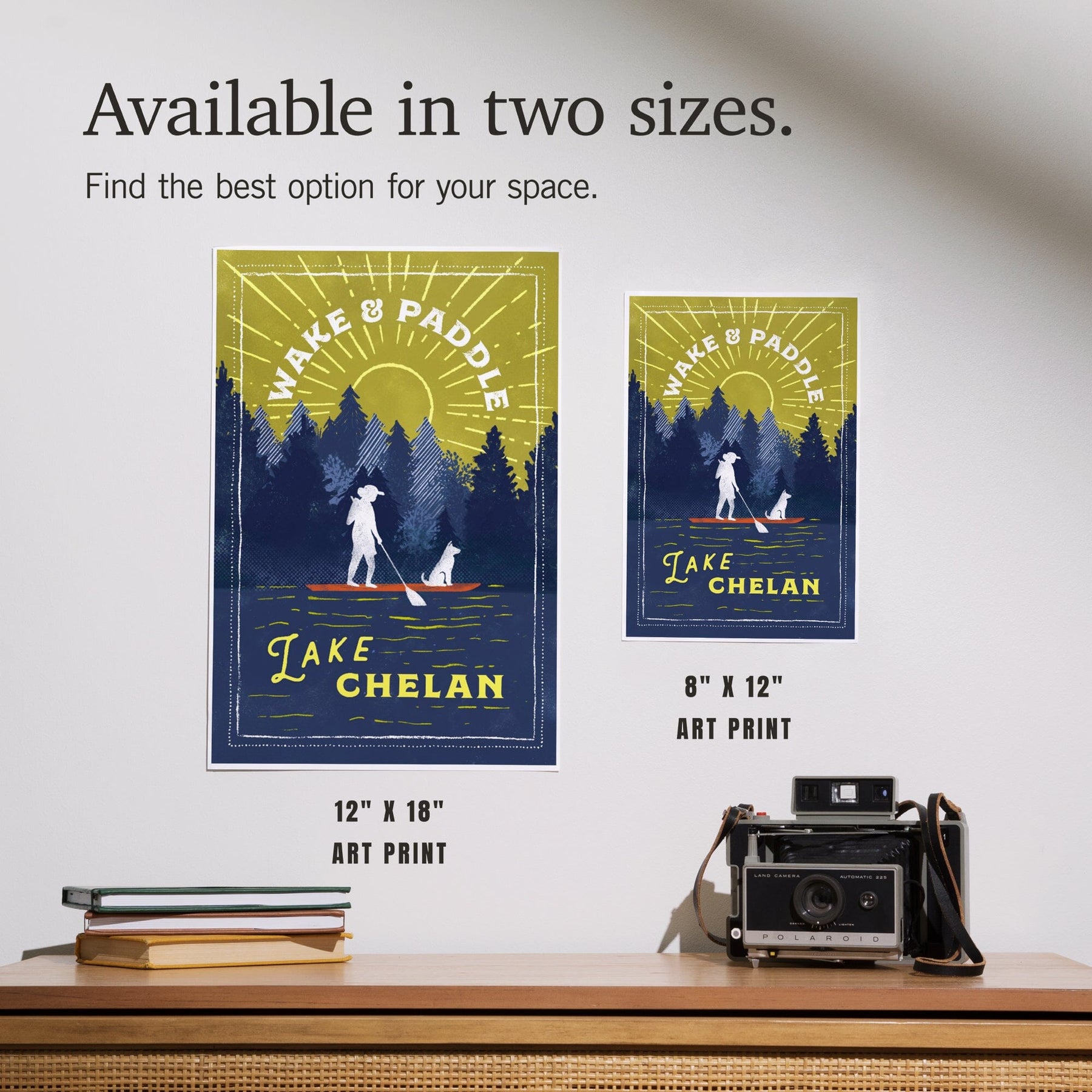 Lake Chelan, Washington, Lake Life Series, Wake and Paddle Landscape With Trees, Art & Giclee Prints Art Lantern Press