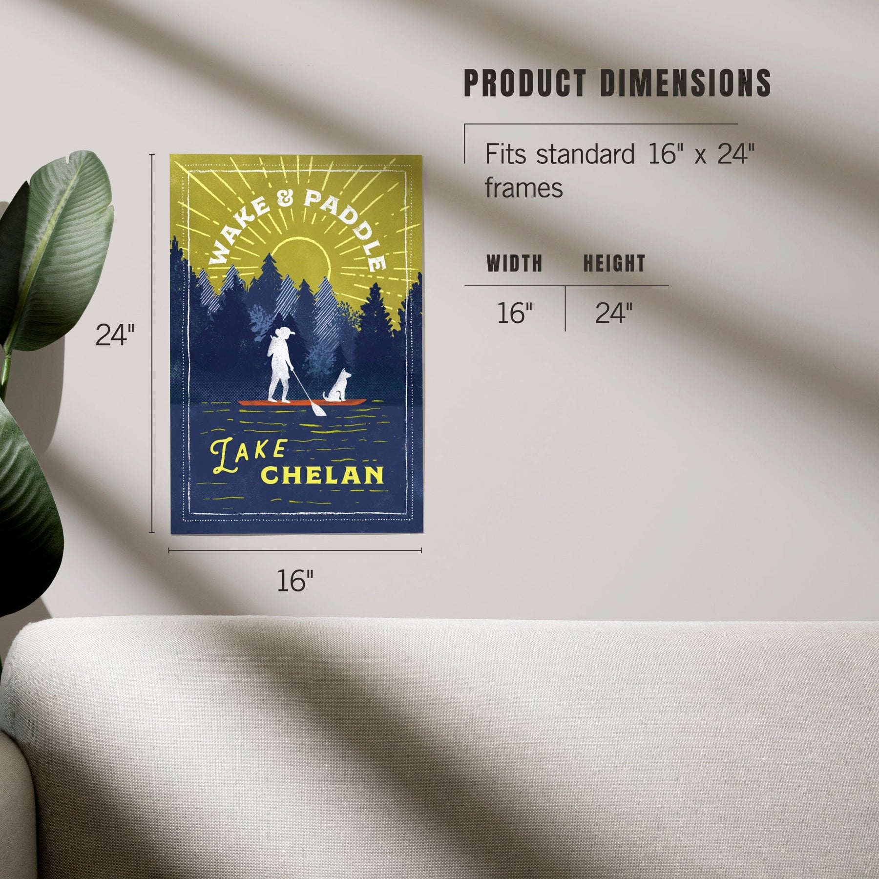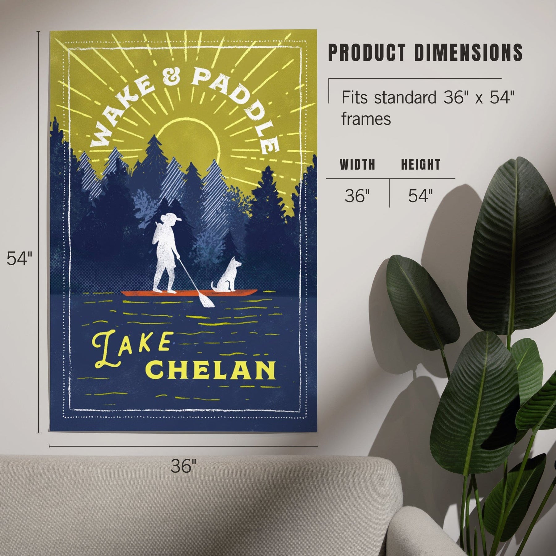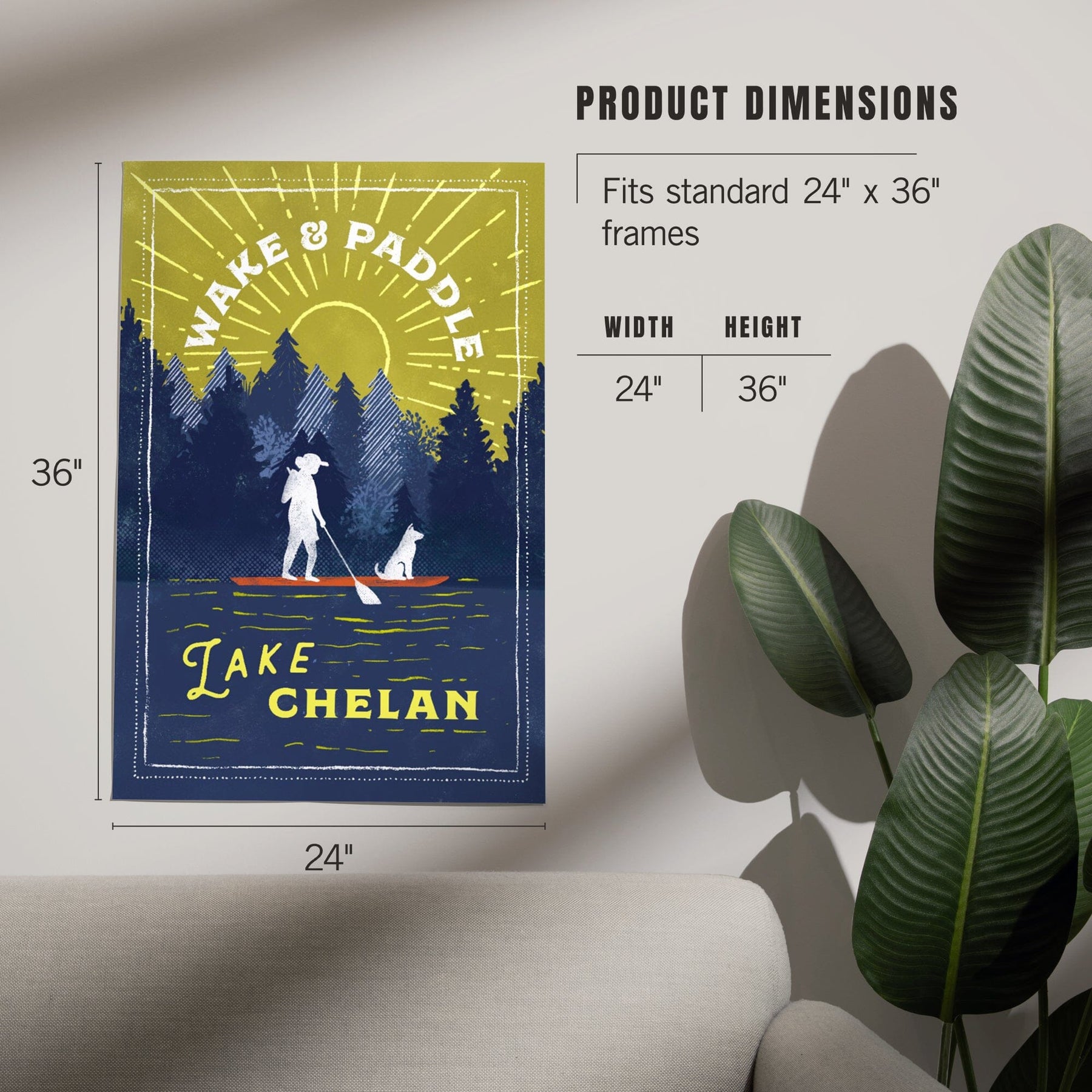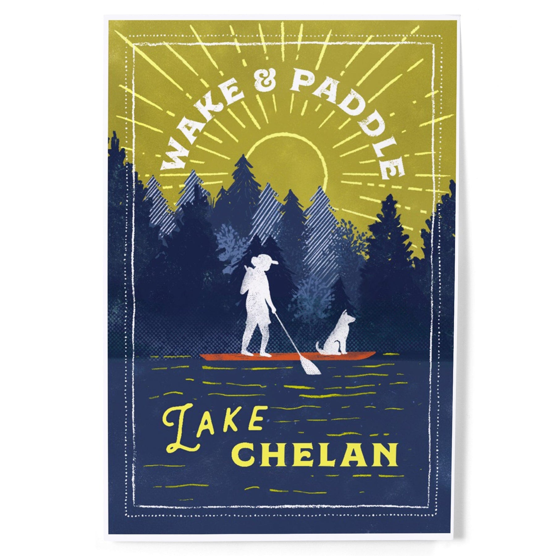 Lake Chelan, Washington, Lake Life Series, Wake and Paddle Landscape With Trees, Art & Giclee Prints Art Lantern Press