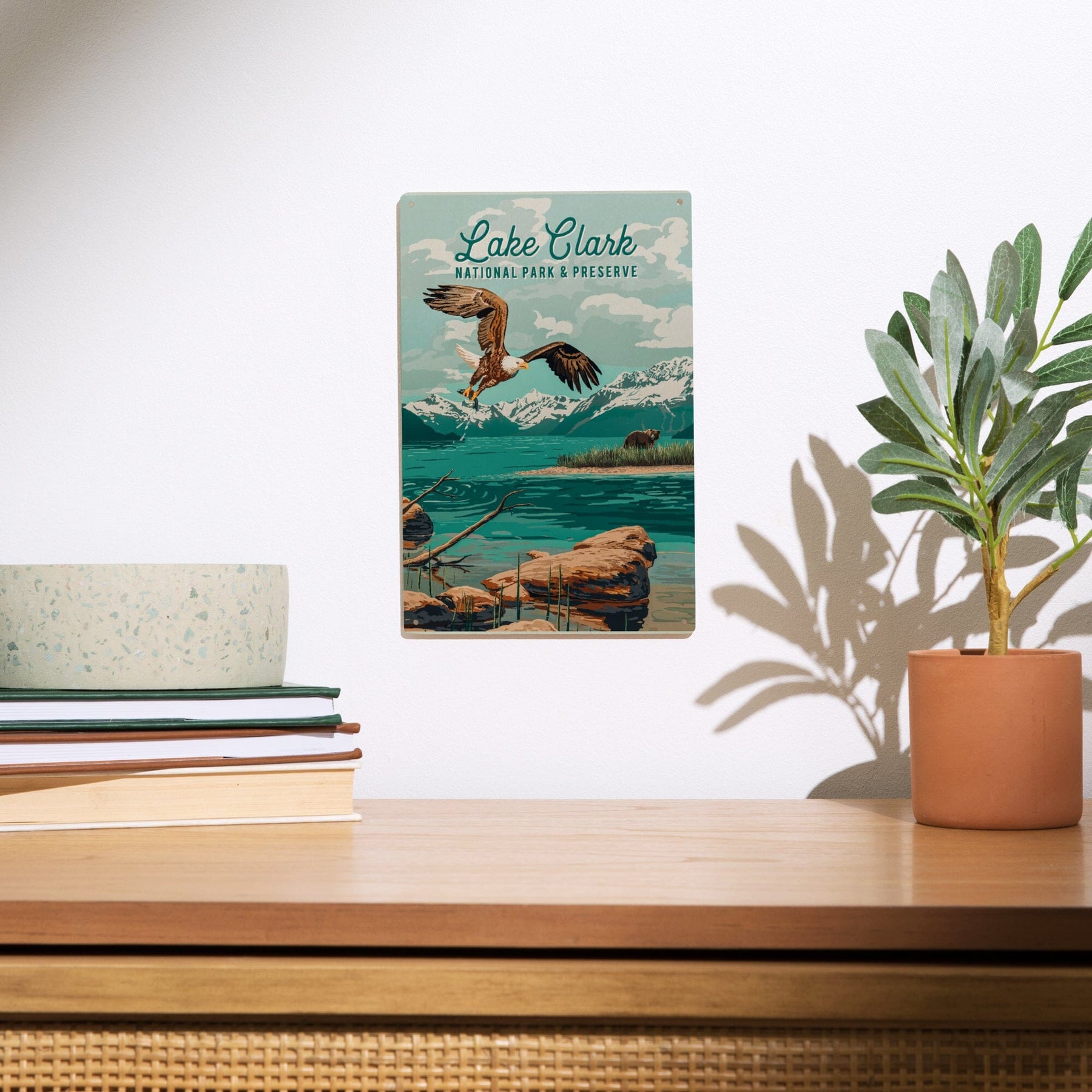 Lake Clark National Park, Alaska, Painterly National Park Series, Wood Signs and Postcards - Lantern Press