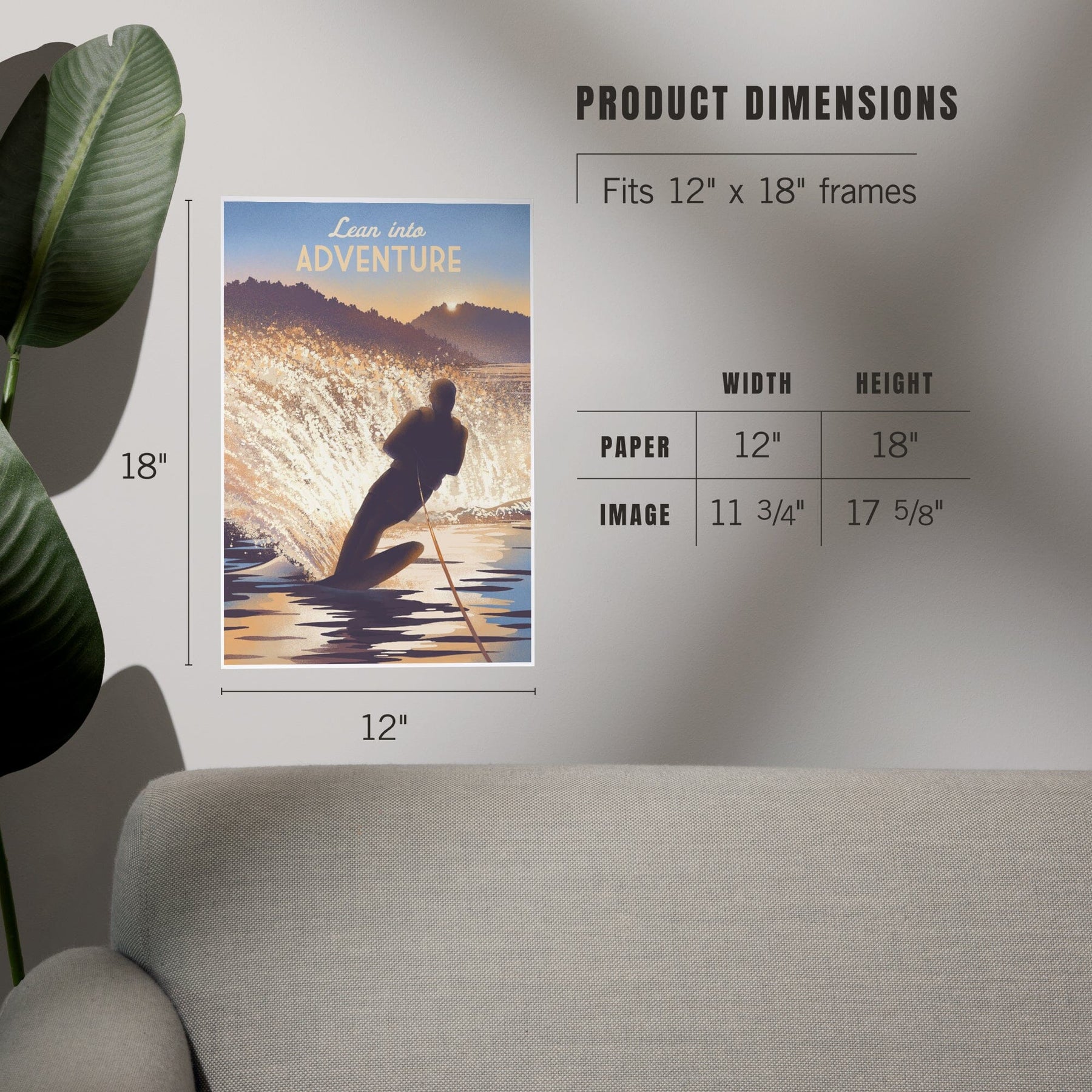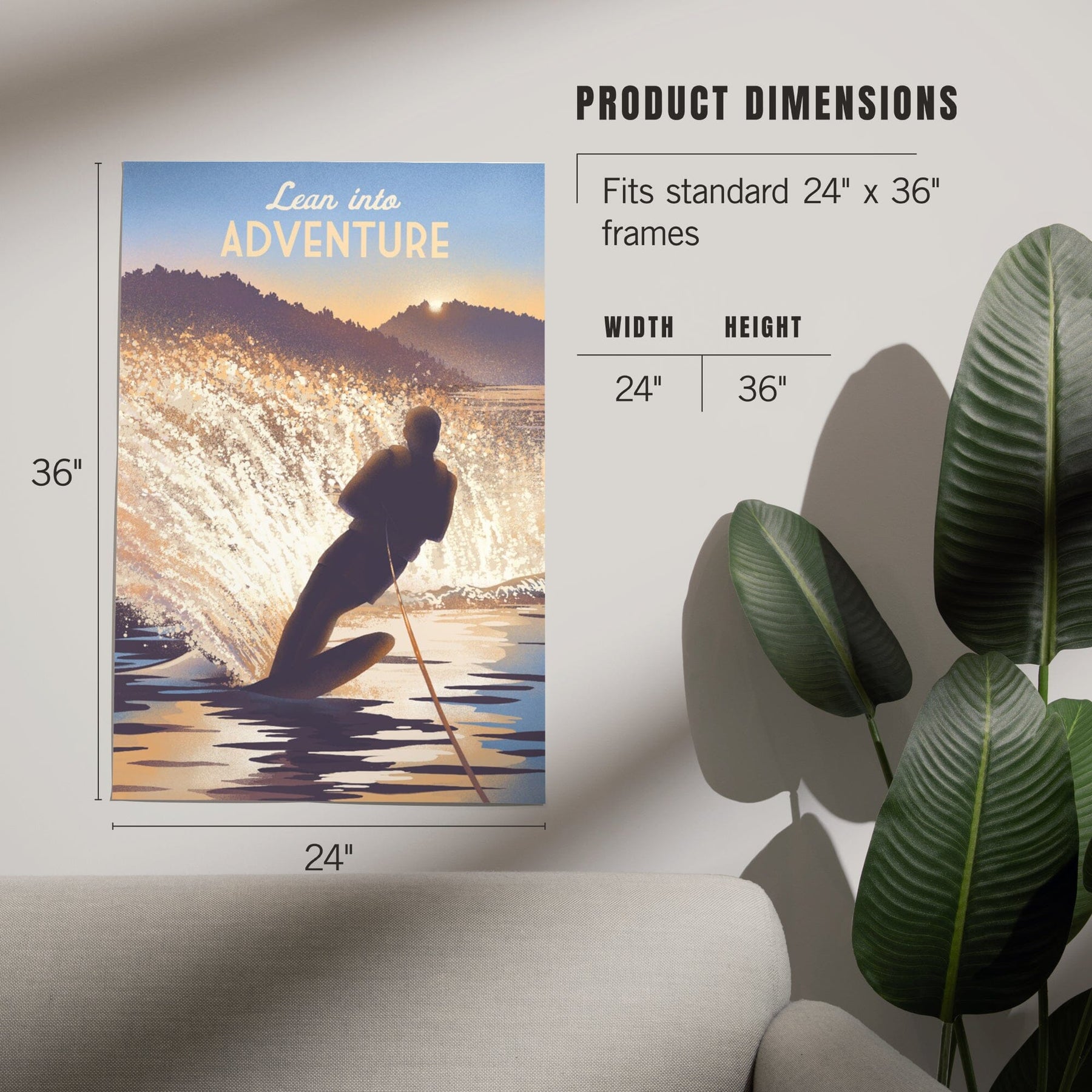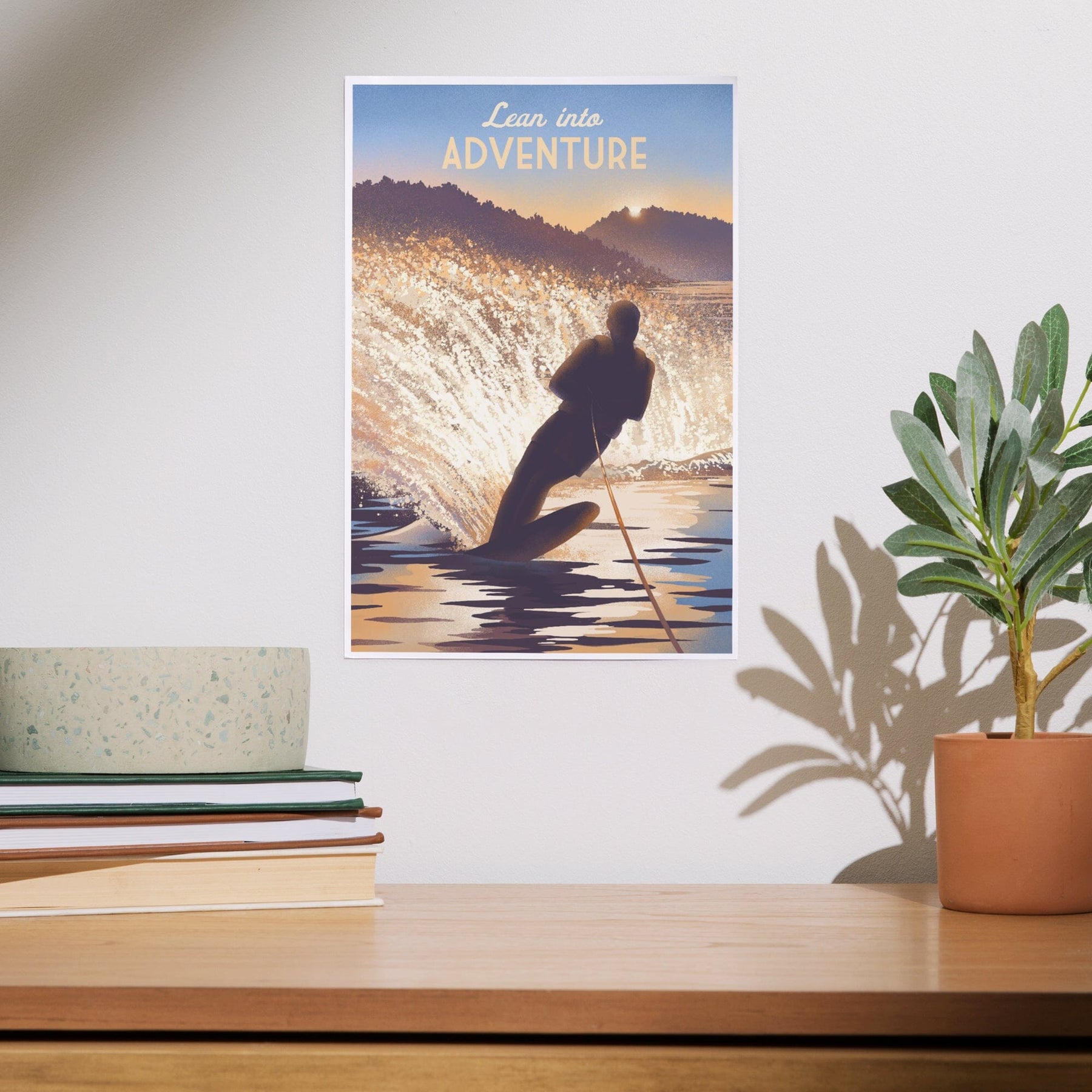 Lithograph, Lean Into Adventure, Water Skiing, Art & Giclee Prints - Lantern Press