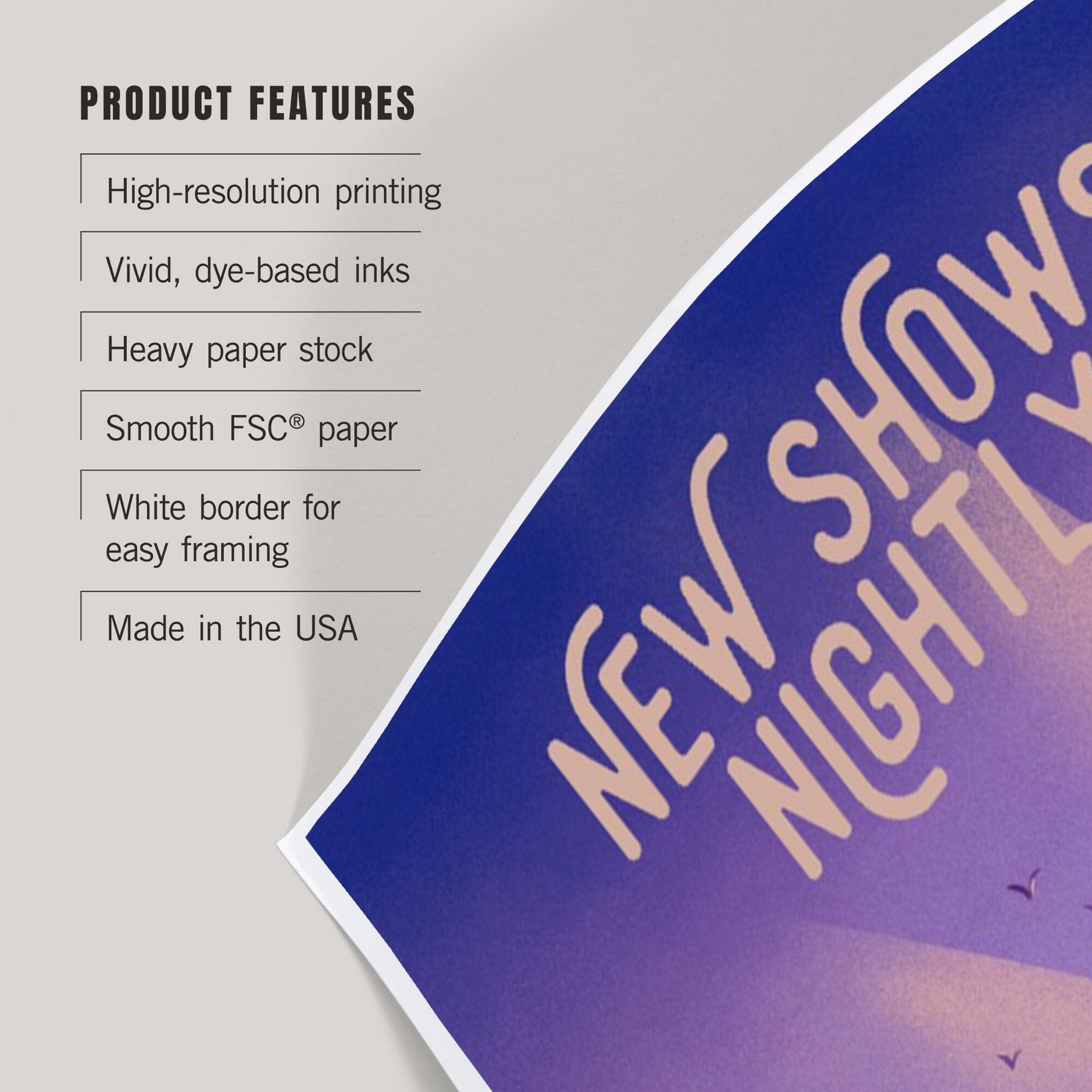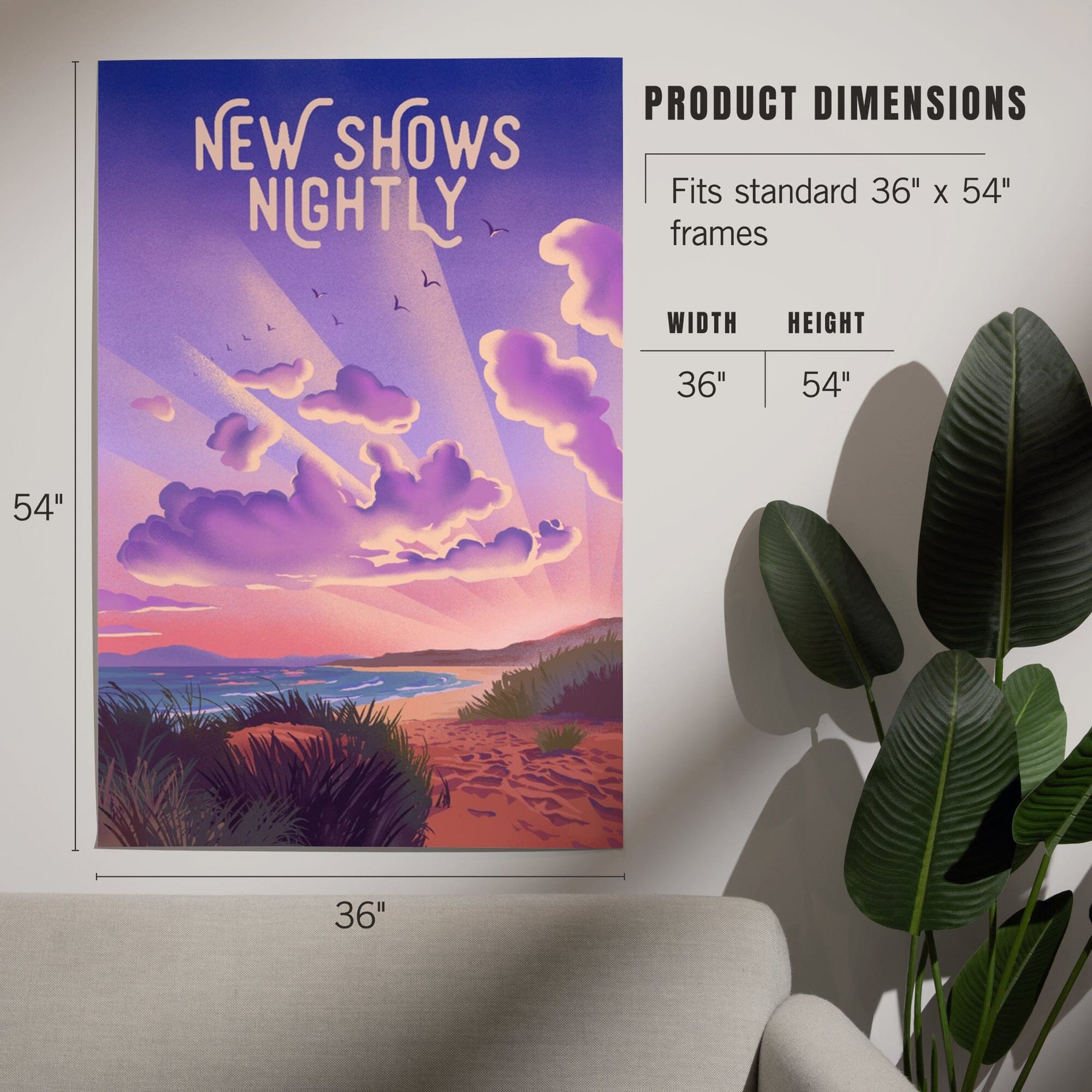 Lithograph, New Shows Nightly, Beach Sunset, Art & Giclee Prints Art Lantern Press