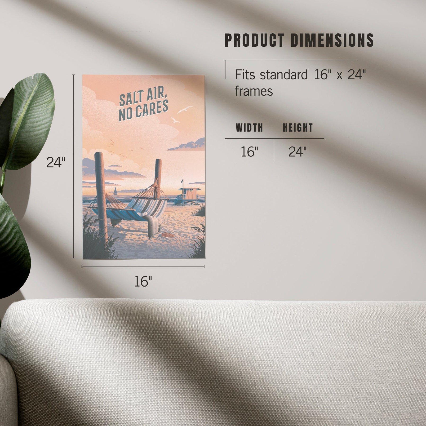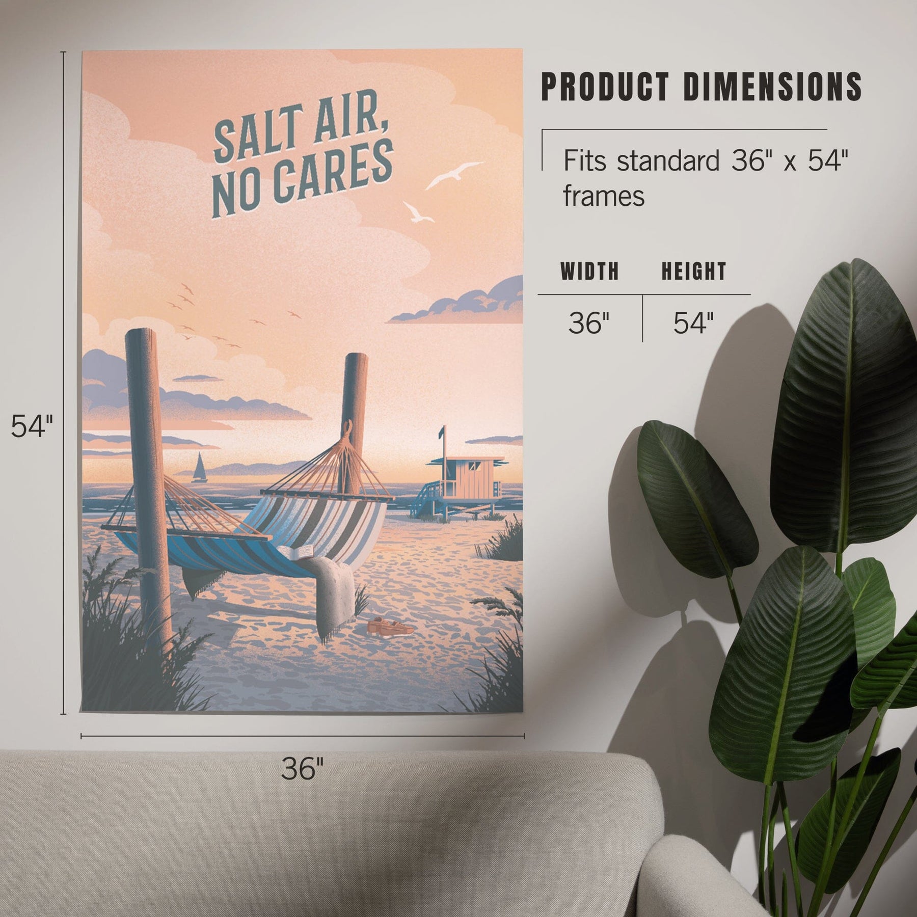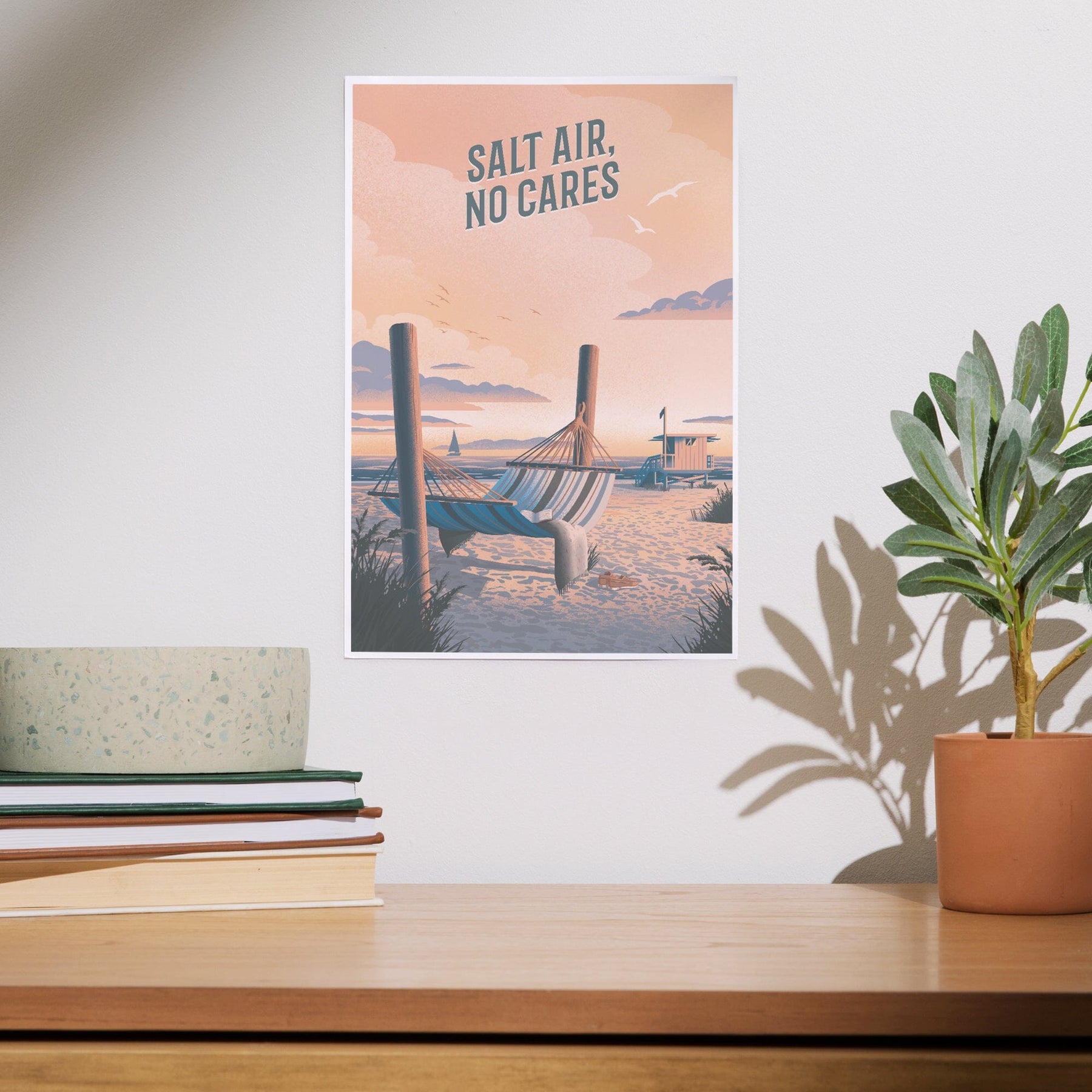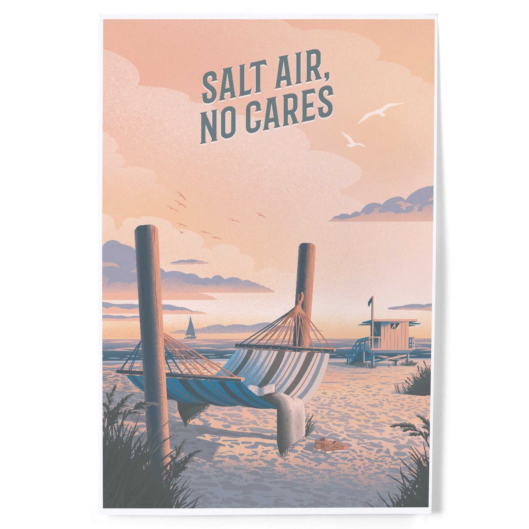 Lithograph, Salt Air, No Cares, Hammock on Beach, Art & Giclee Prints Art Lantern Press