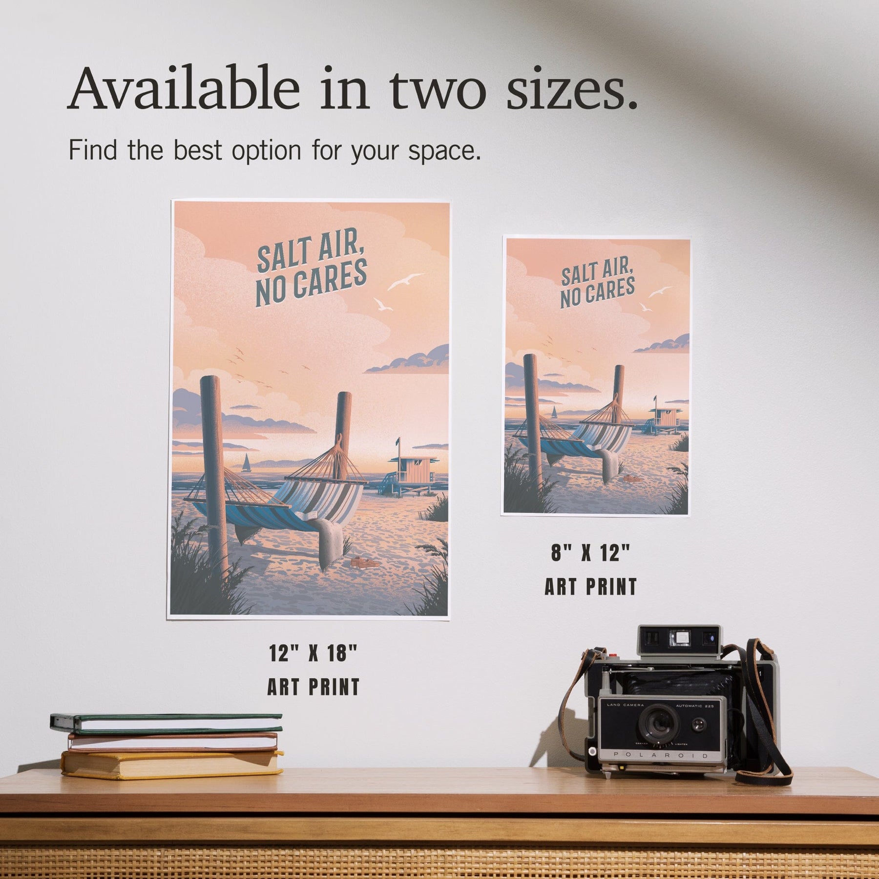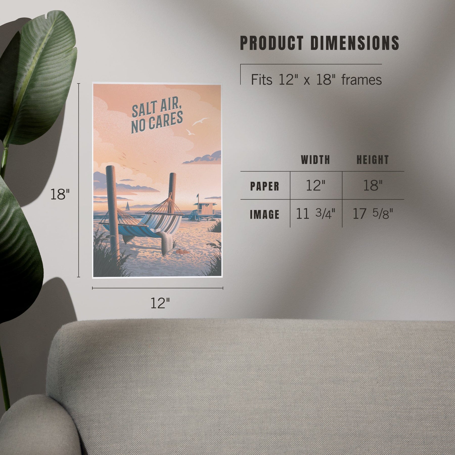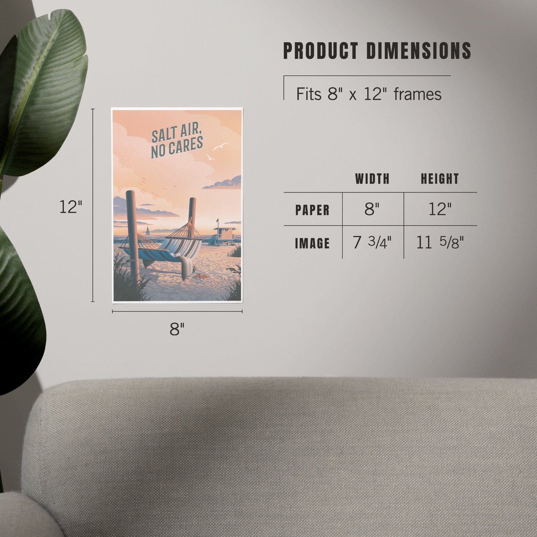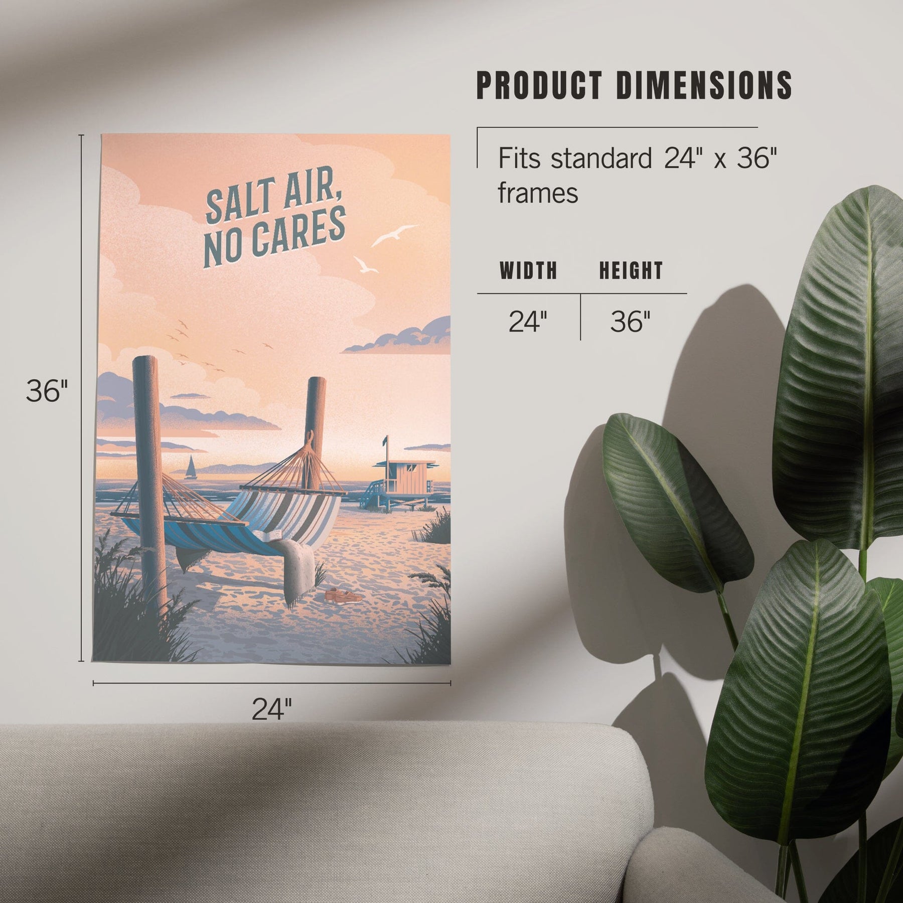 Lithograph, Salt Air, No Cares, Hammock on Beach, Art & Giclee Prints Art Lantern Press