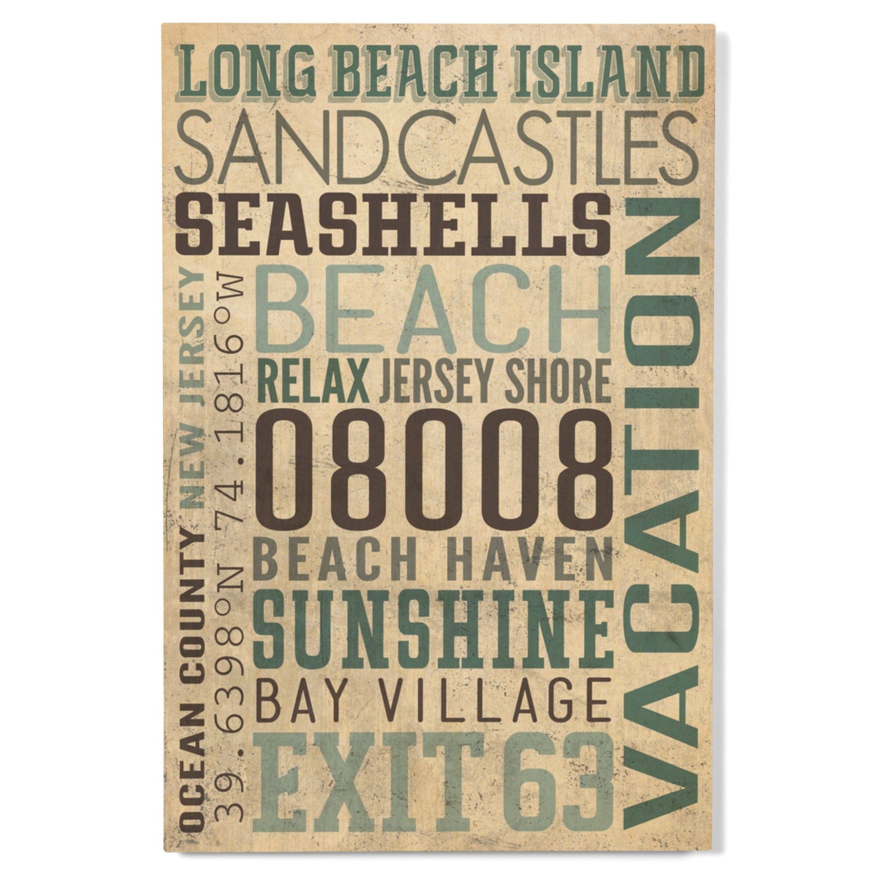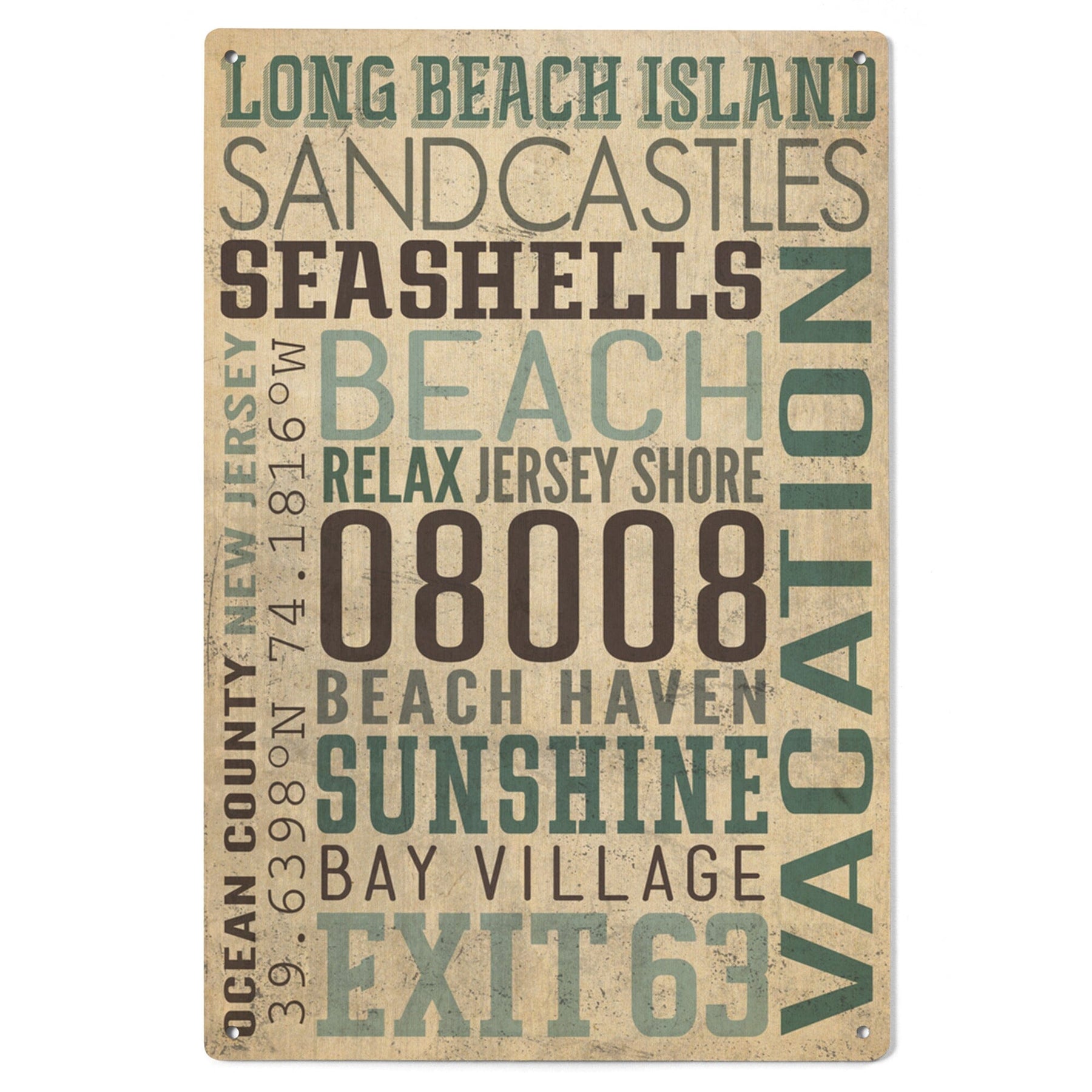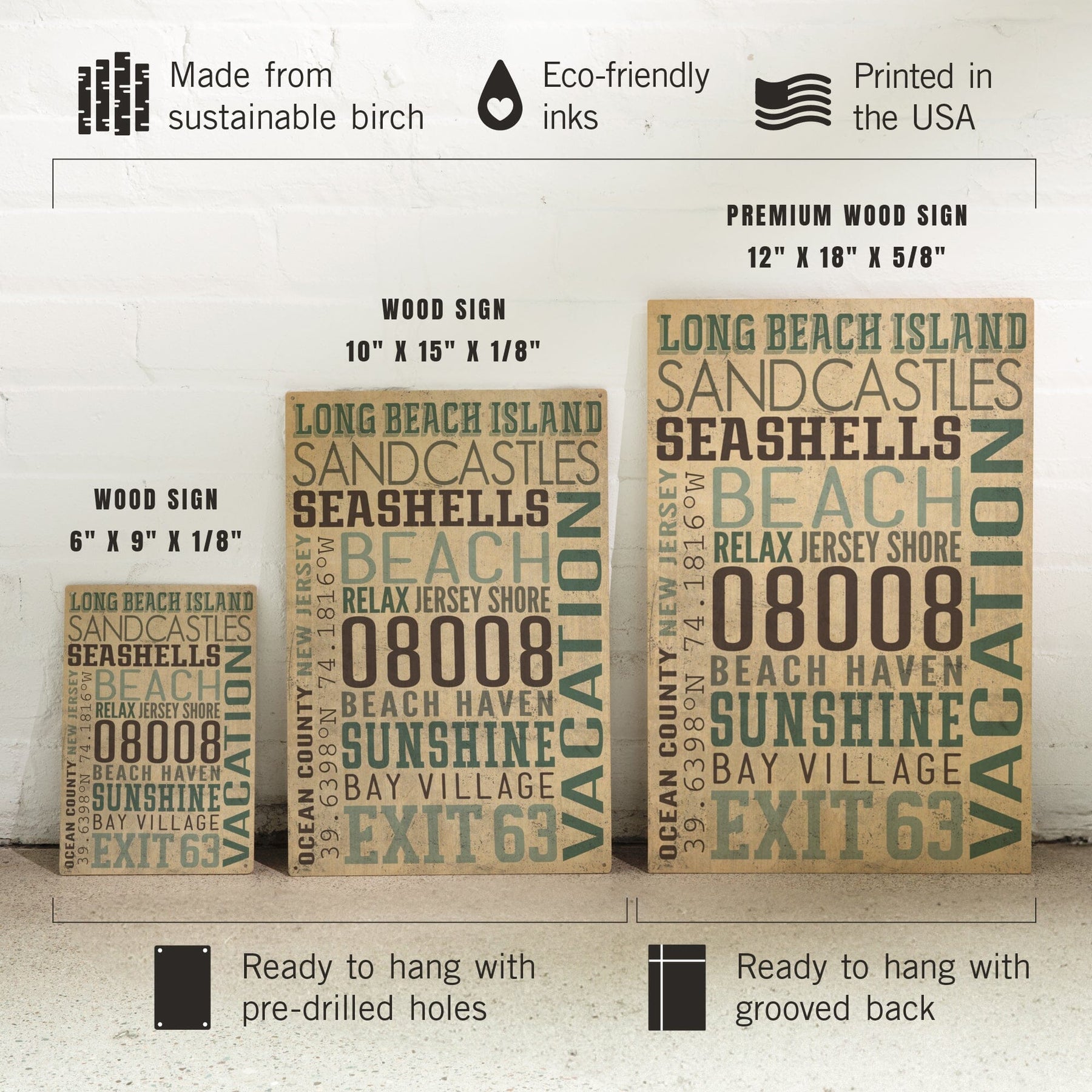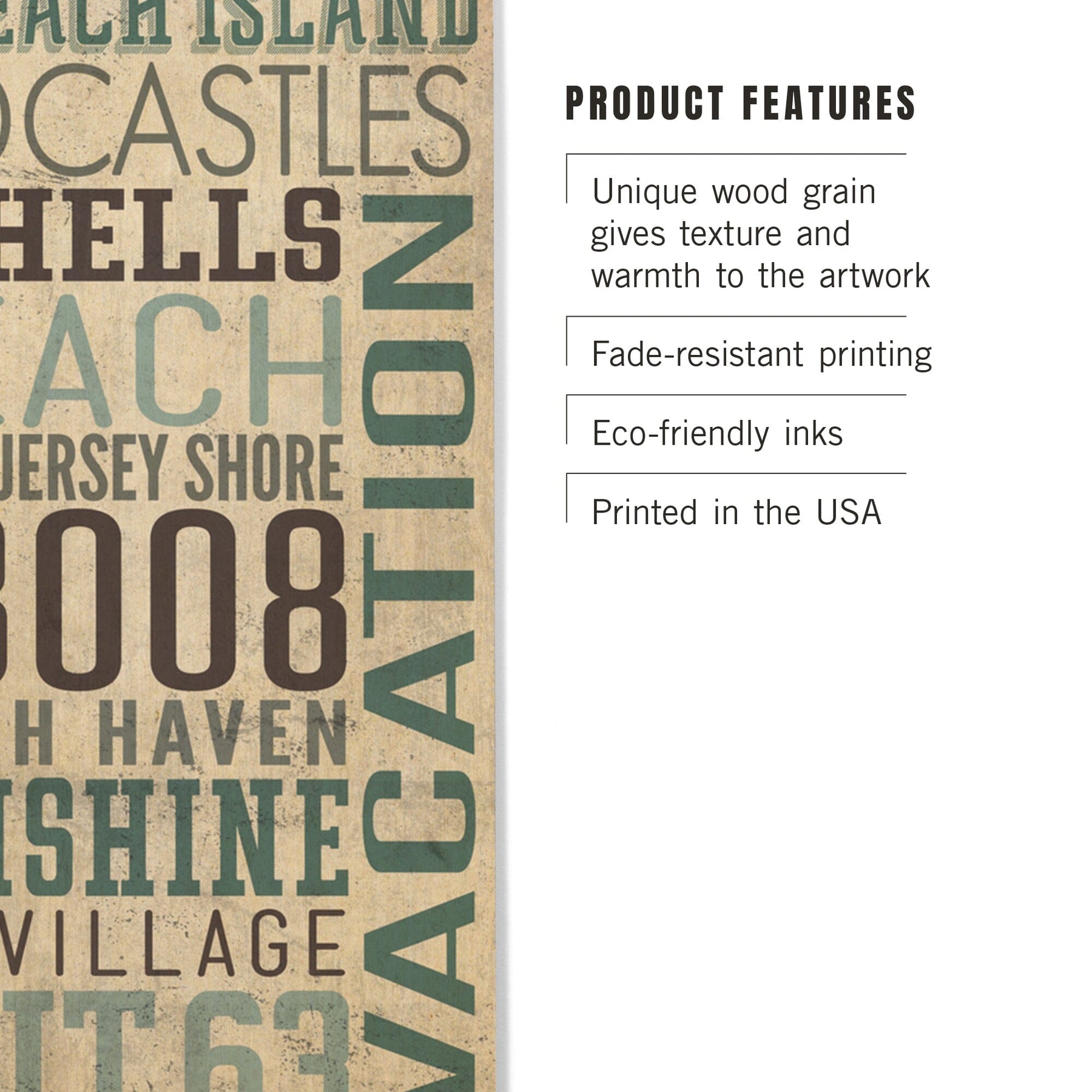 Long Beach Island, New Jersey, Typography (#2), Lantern Press Artwork, Wood Signs and Postcards