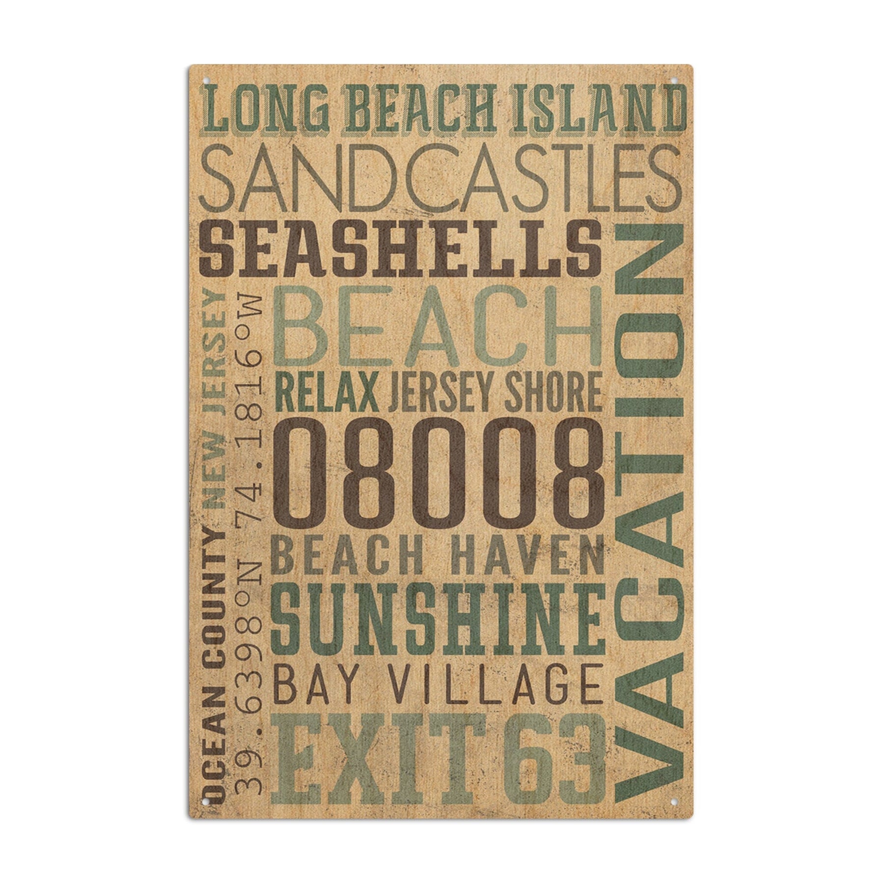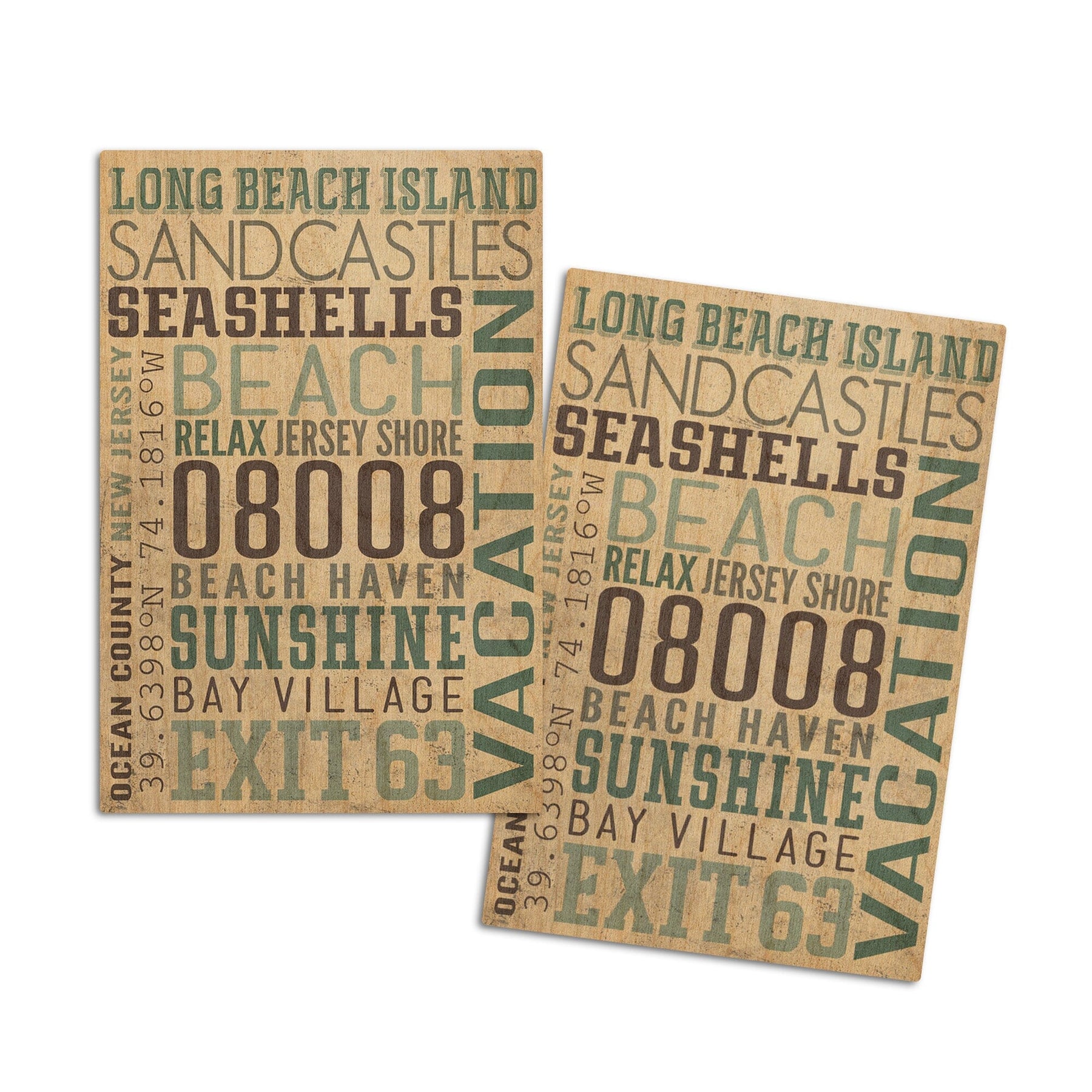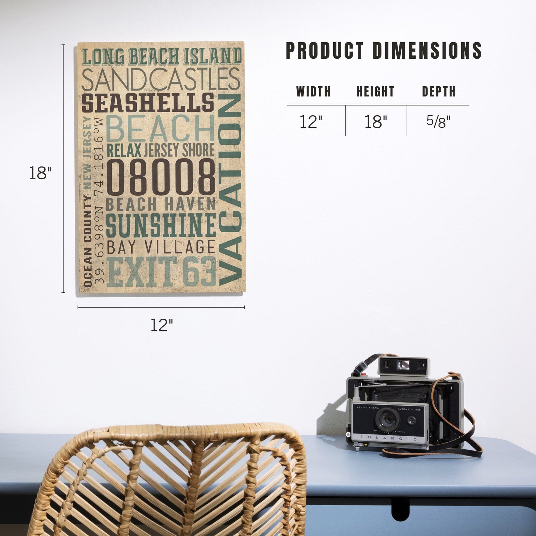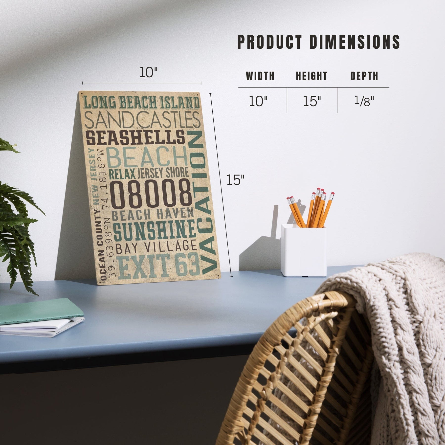 Long Beach Island, New Jersey, Typography (#2), Lantern Press Artwork, Wood Signs and Postcards