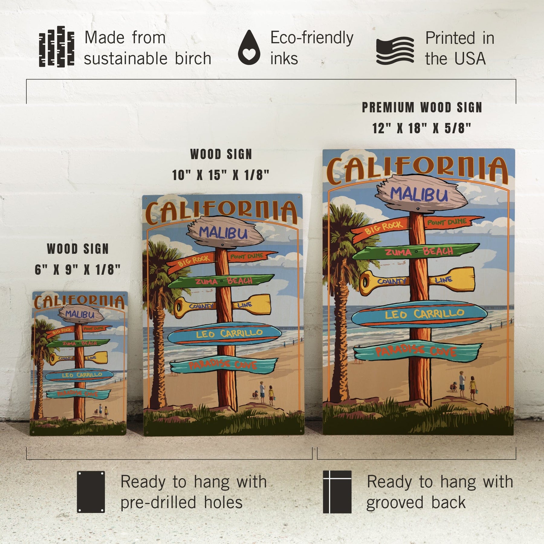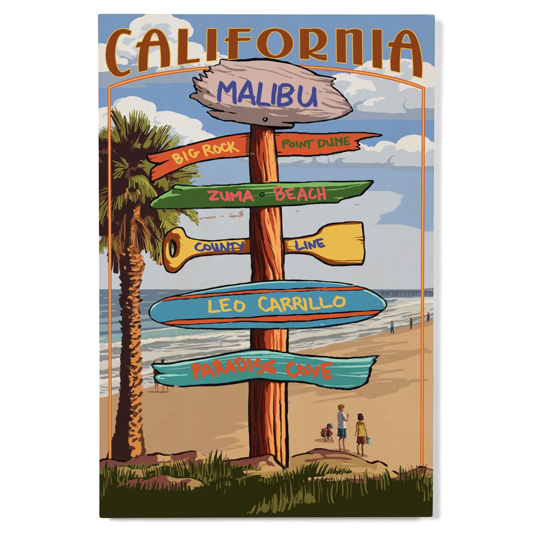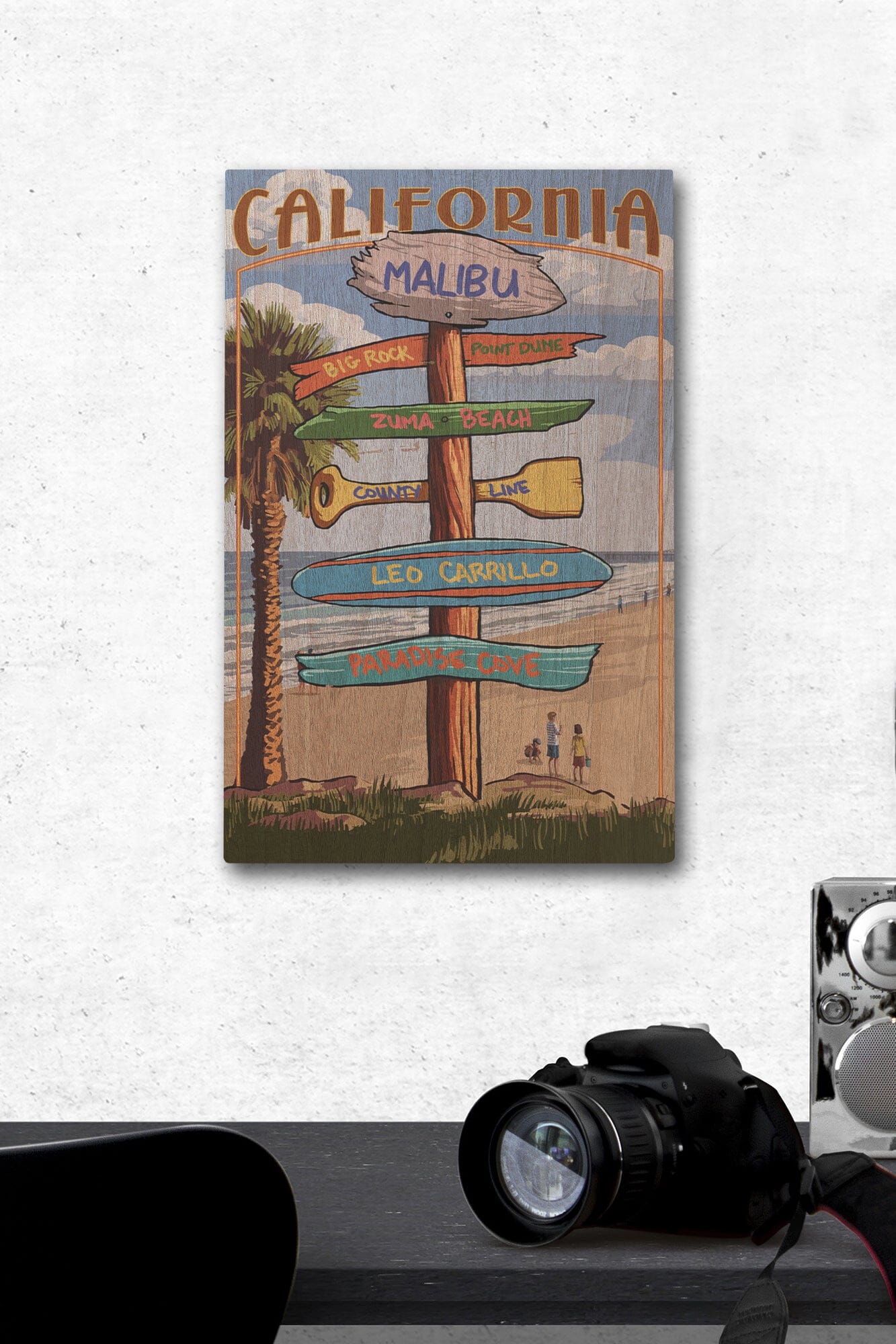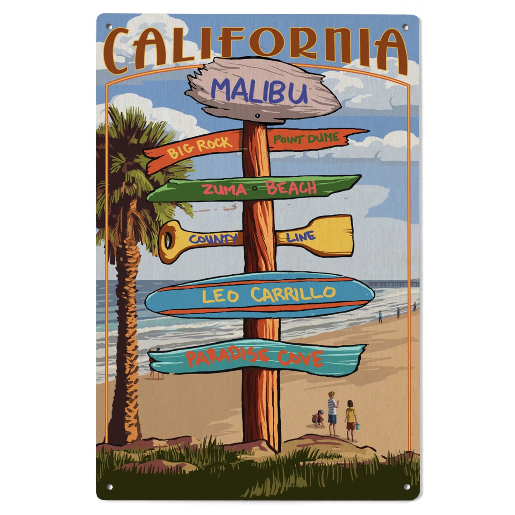 Malibu, California, Destinations Sign, Lantern Press Artwork, Wood Signs and Postcards
