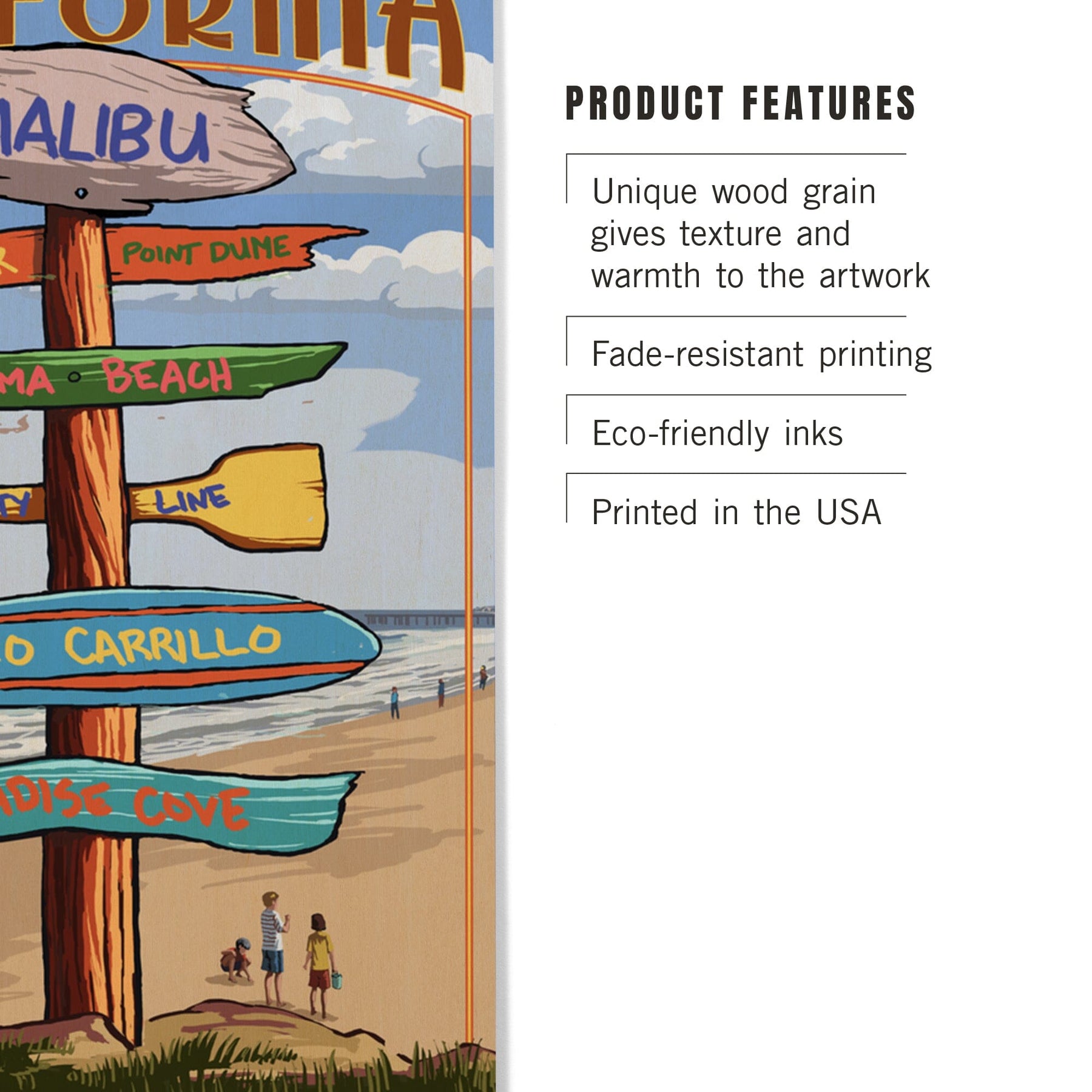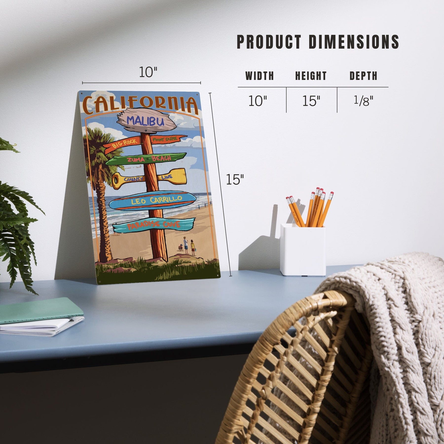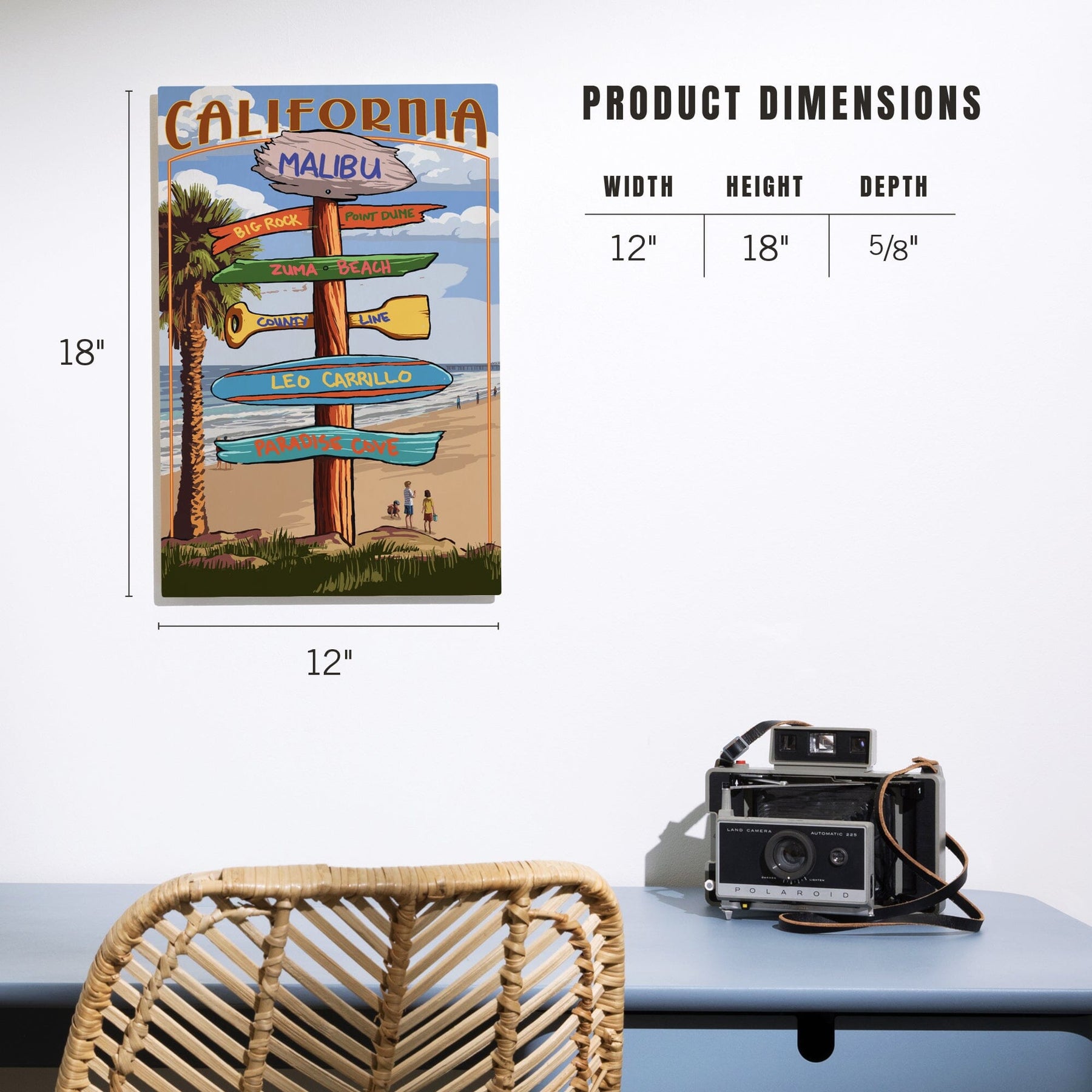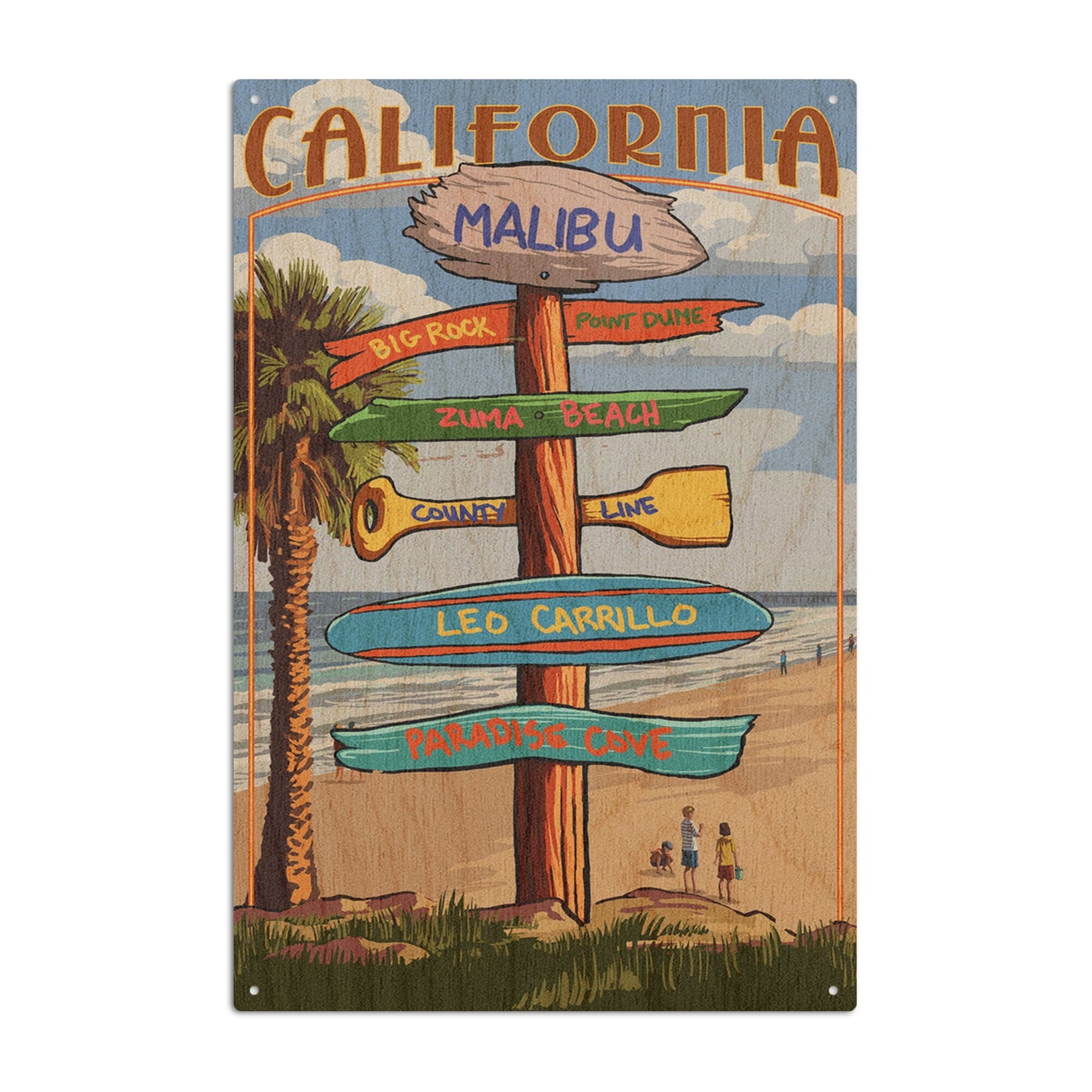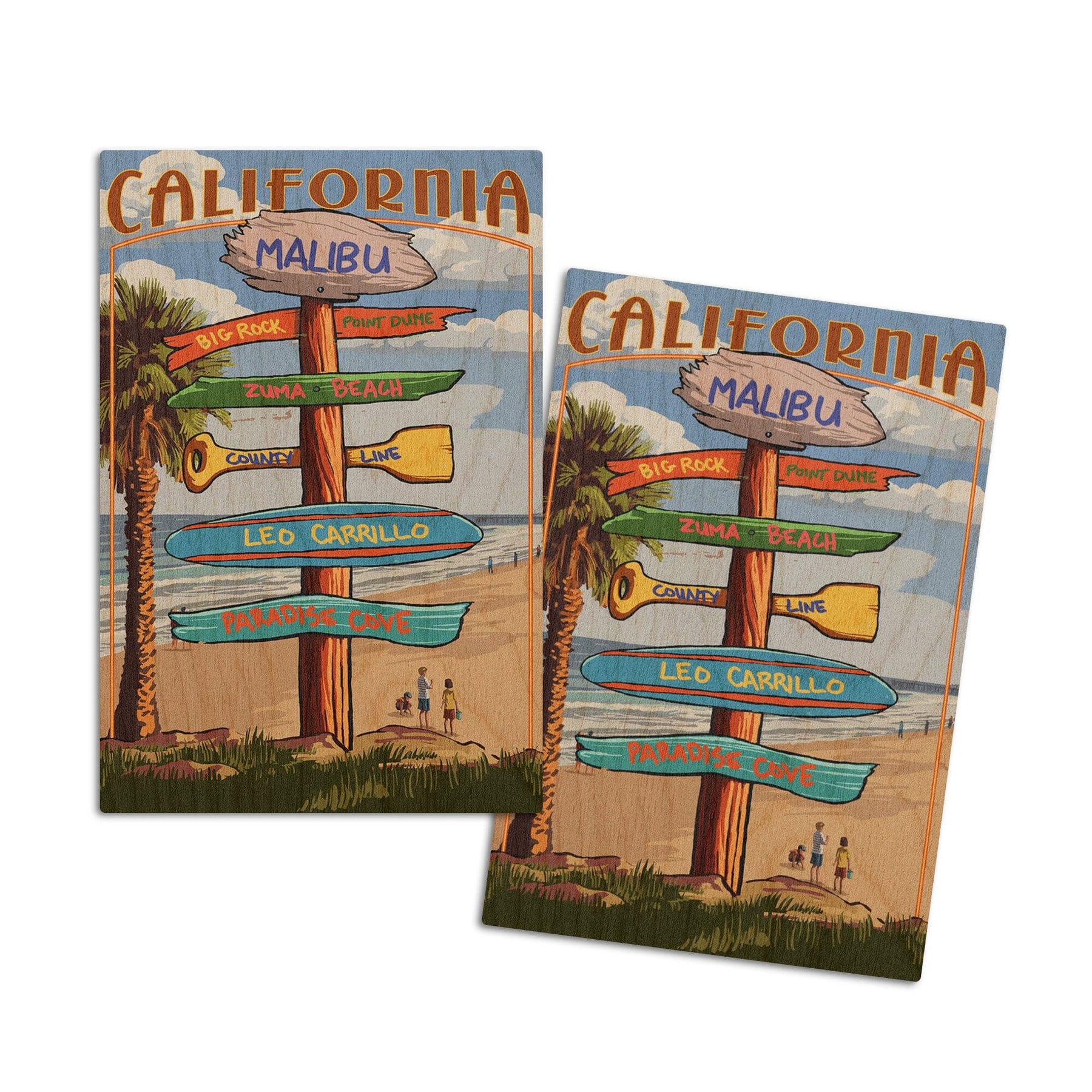Malibu, California, Destinations Sign, Lantern Press Artwork, Wood Signs and Postcards