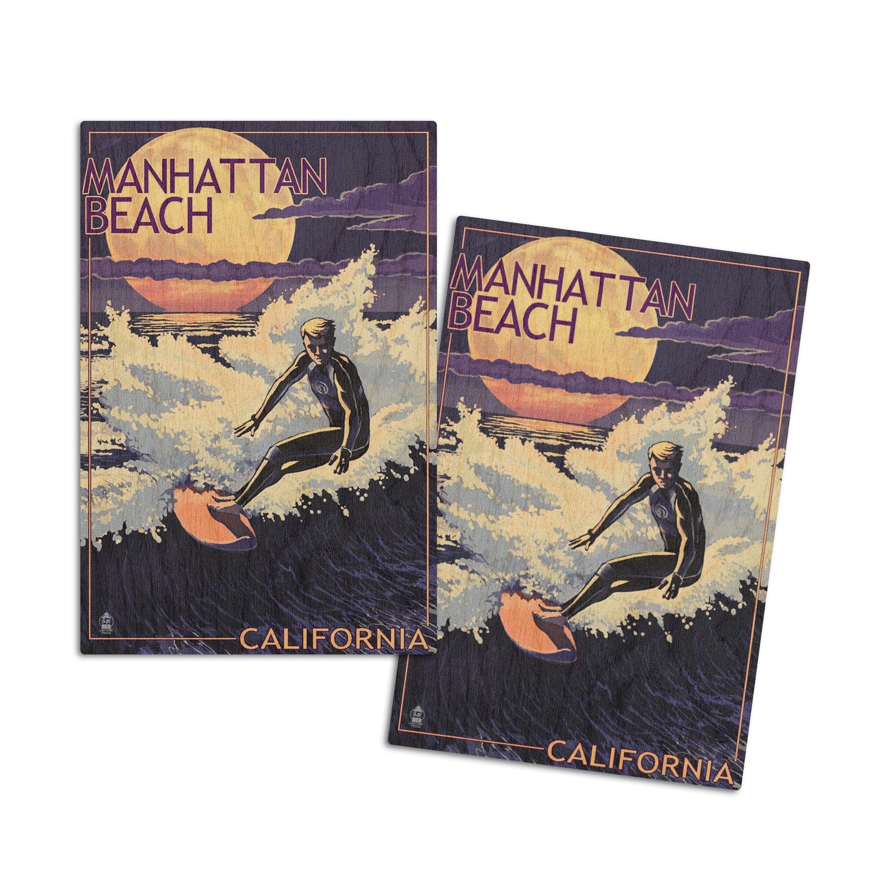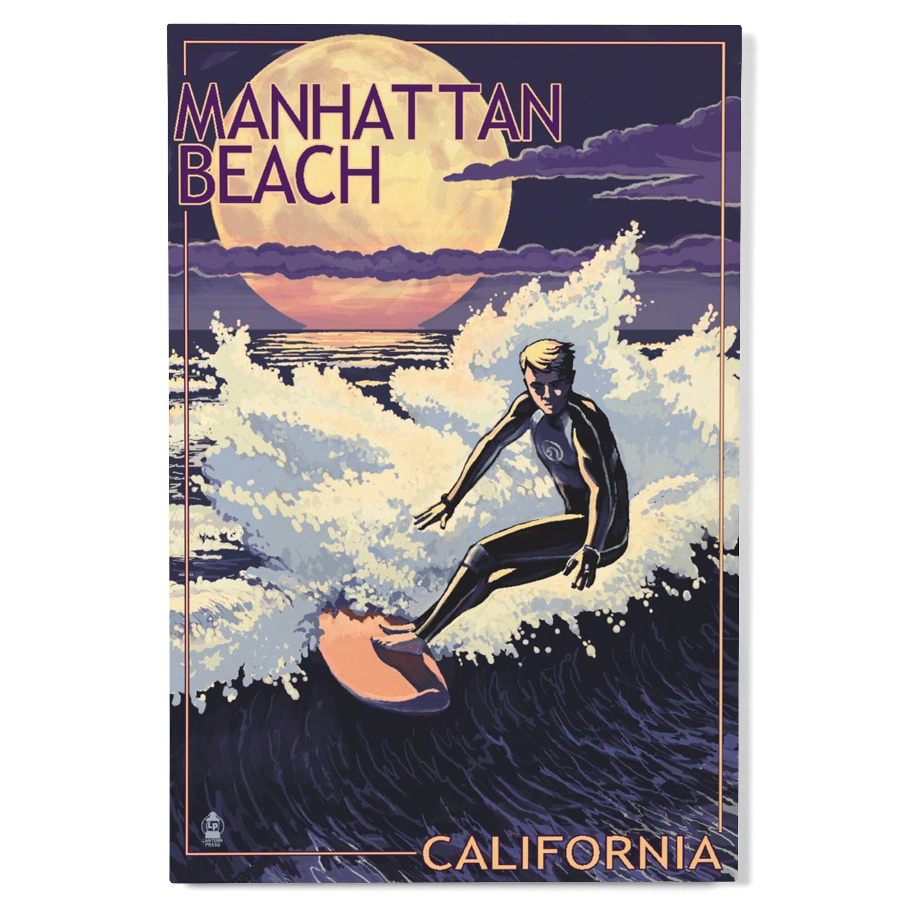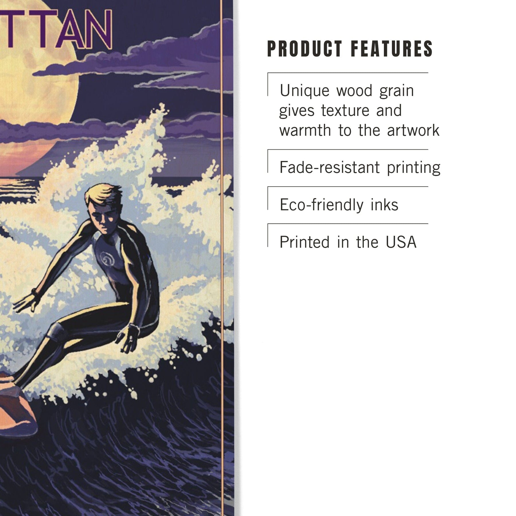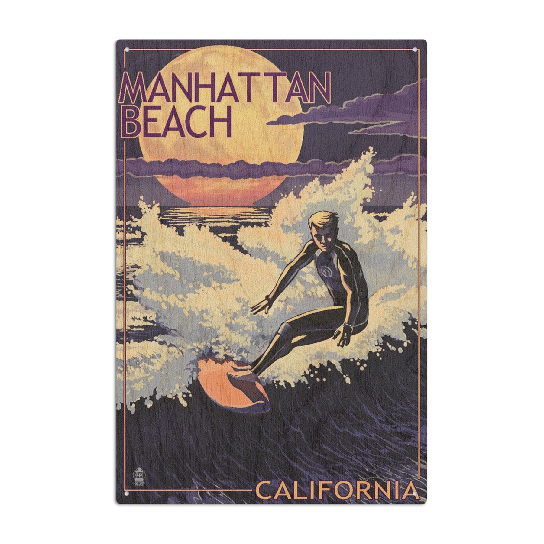 Manhattan Beach, California, Night Surfer, Lantern Press Artwork, Wood Signs and Postcards