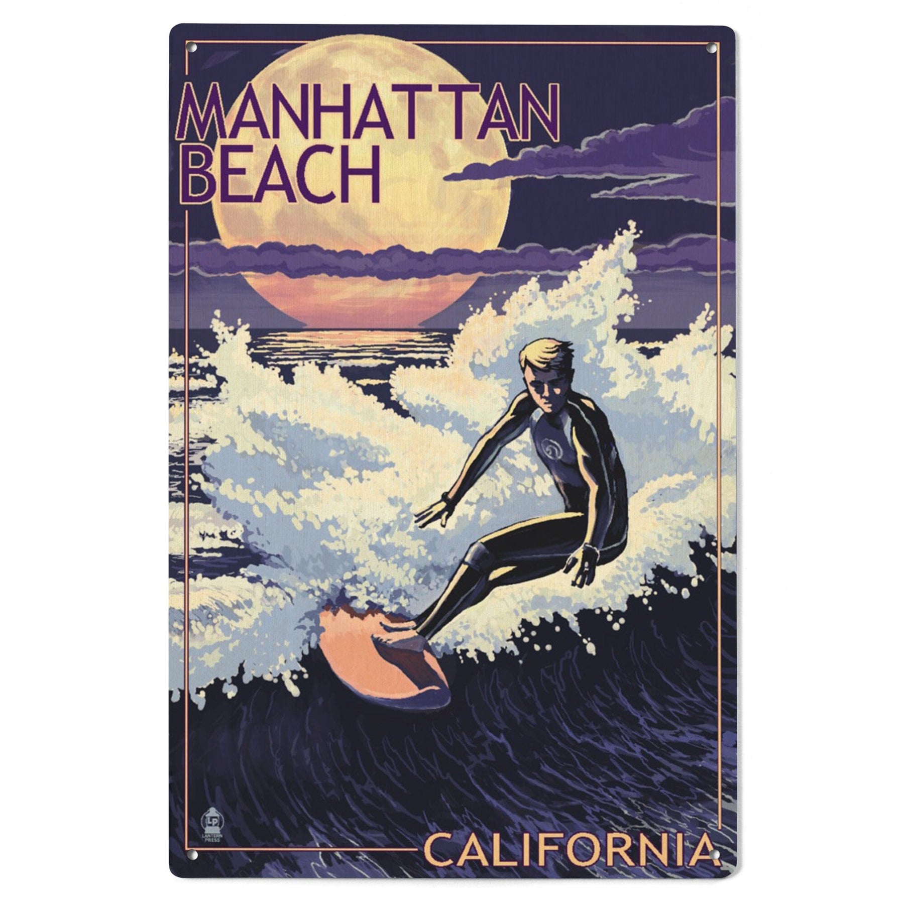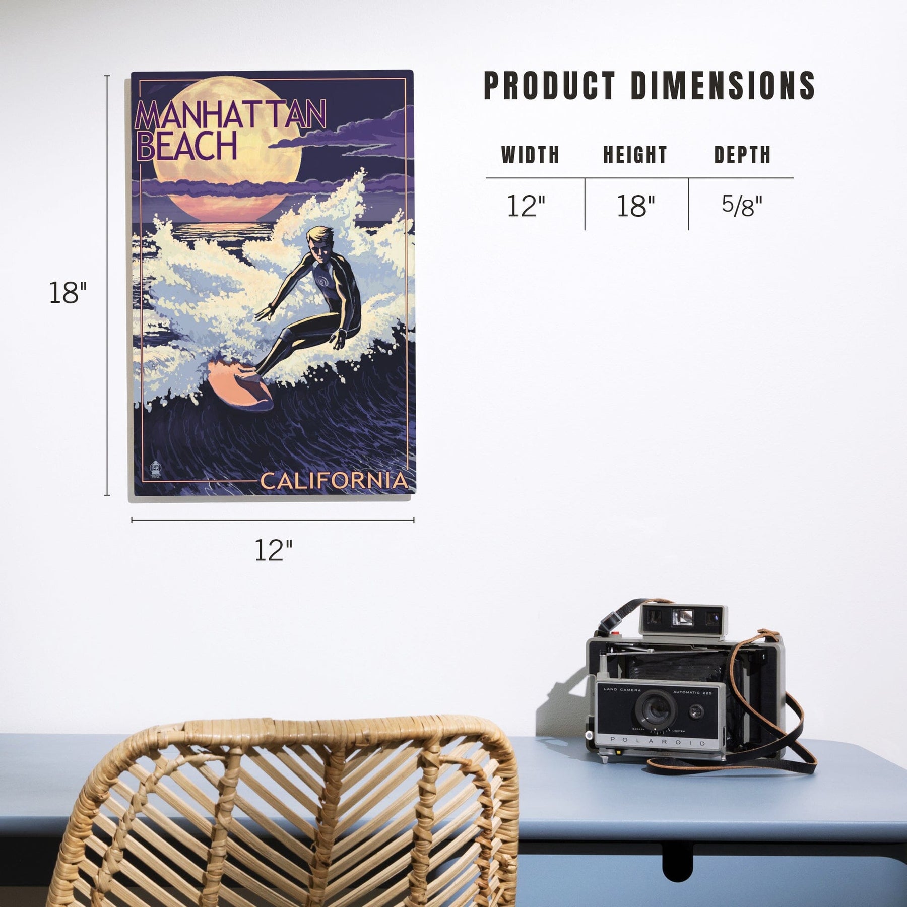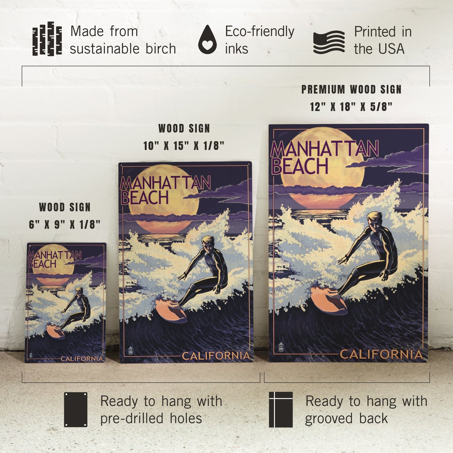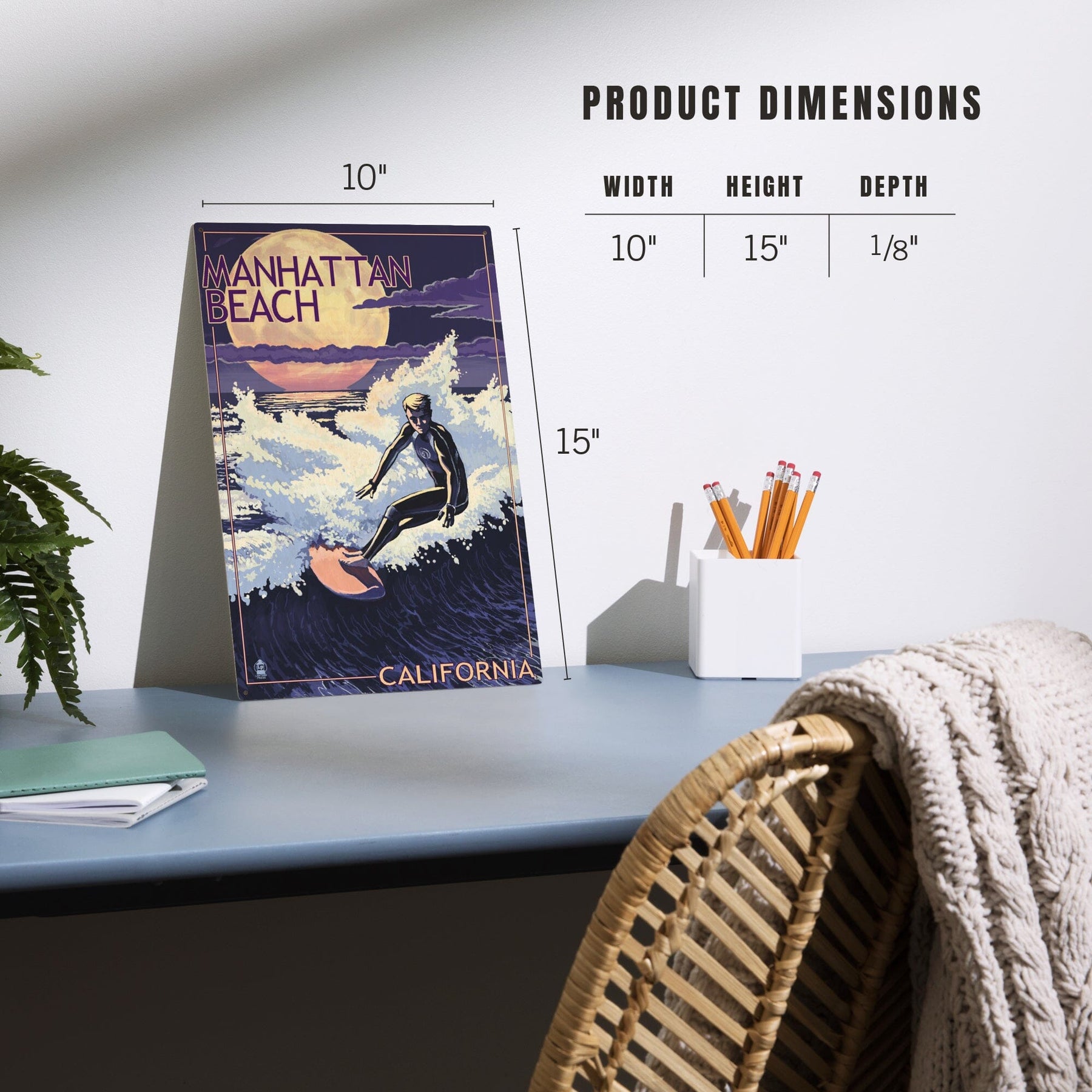 Manhattan Beach, California, Night Surfer, Lantern Press Artwork, Wood Signs and Postcards