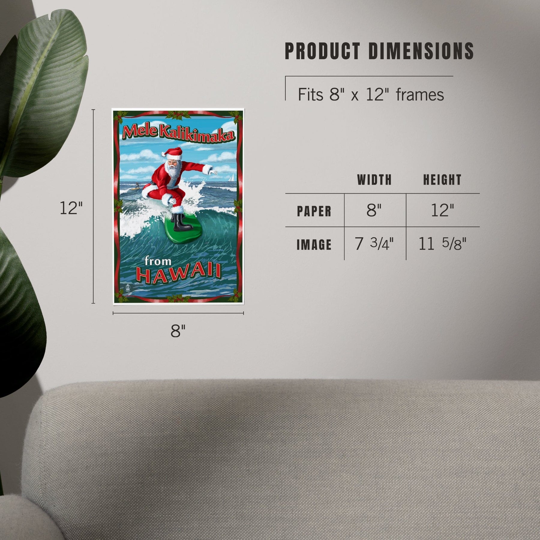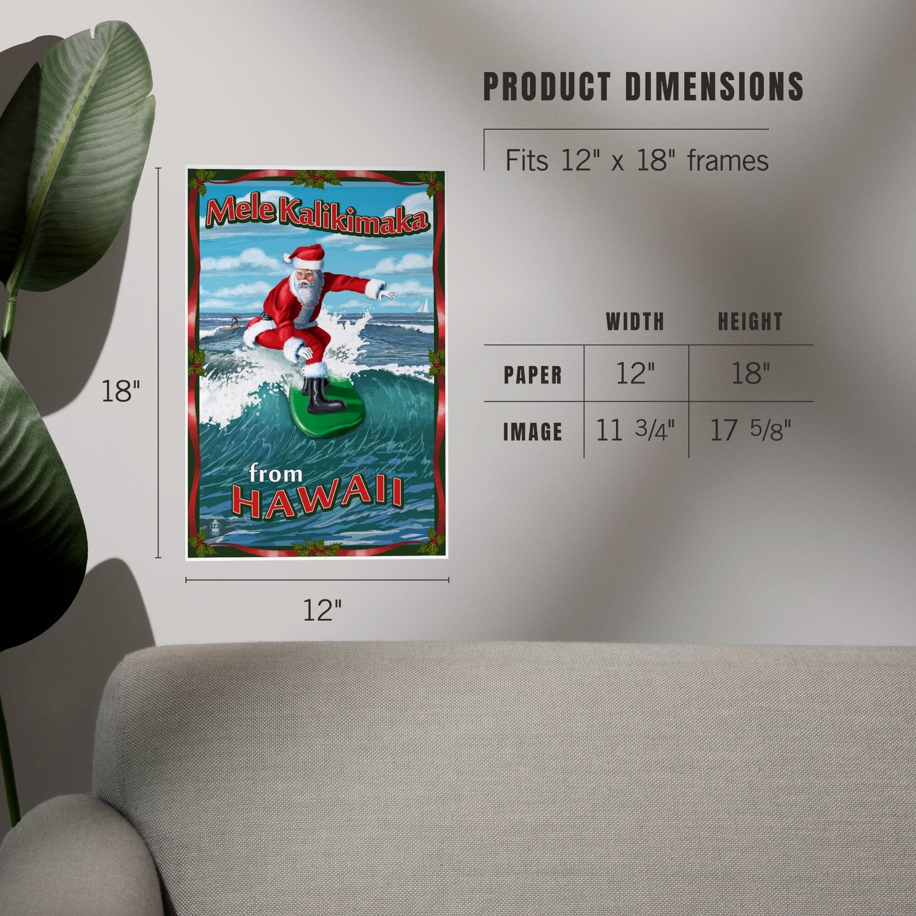 Merry Christmas from Hawaii, Santa Surfing, Art & Giclee Prints