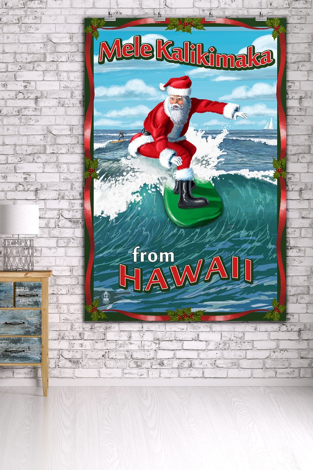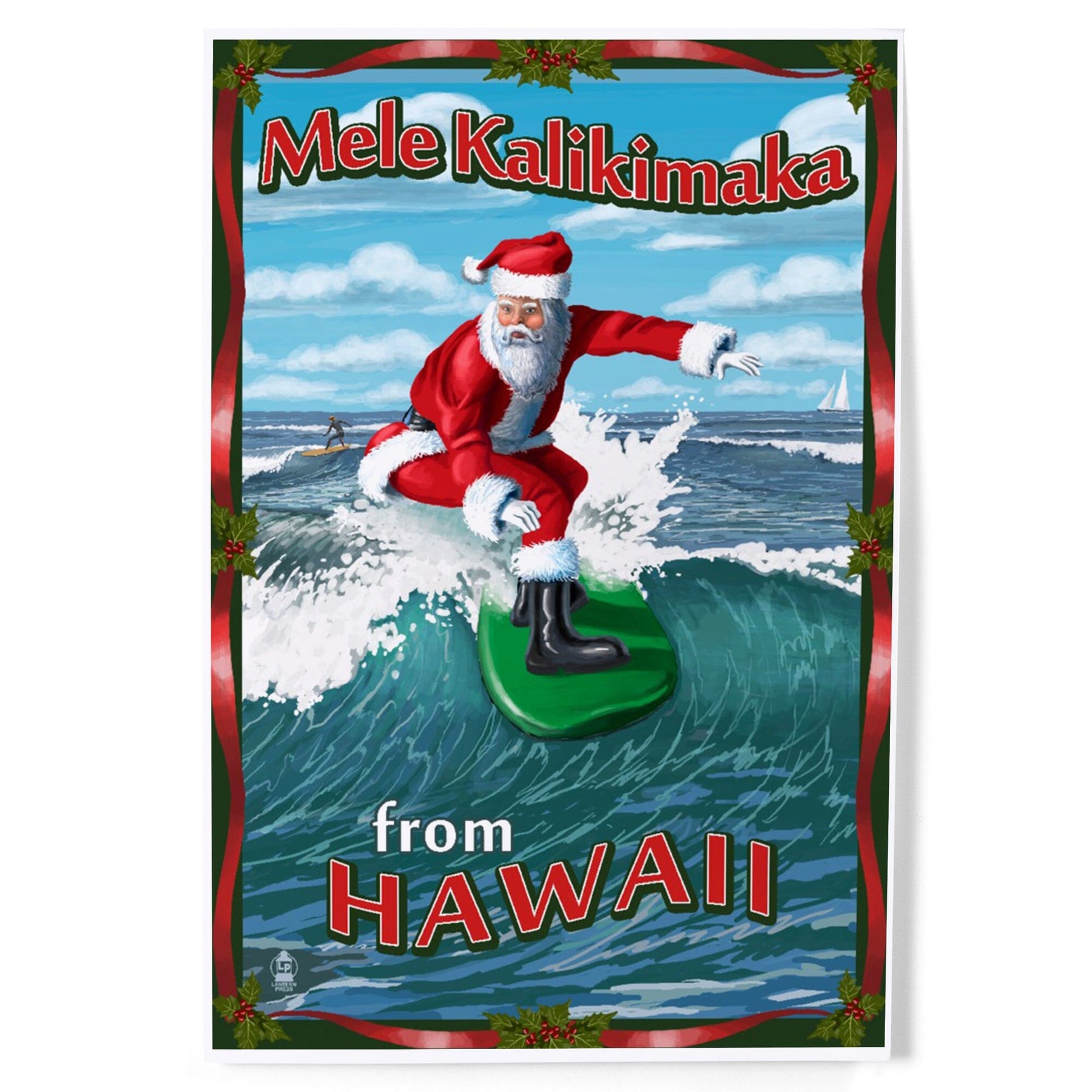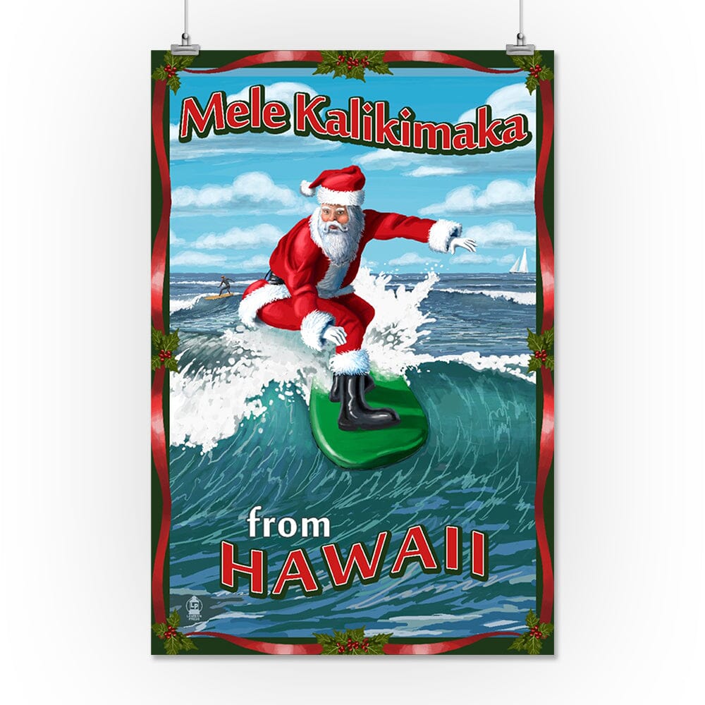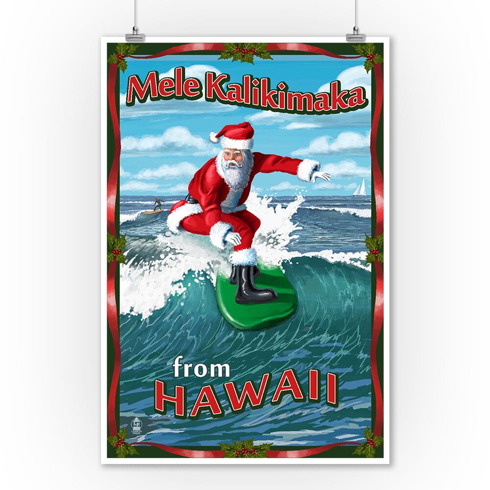 Merry Christmas from Hawaii, Santa Surfing, Art & Giclee Prints Art Lantern Press