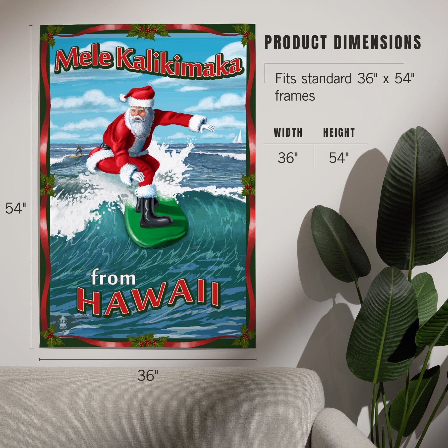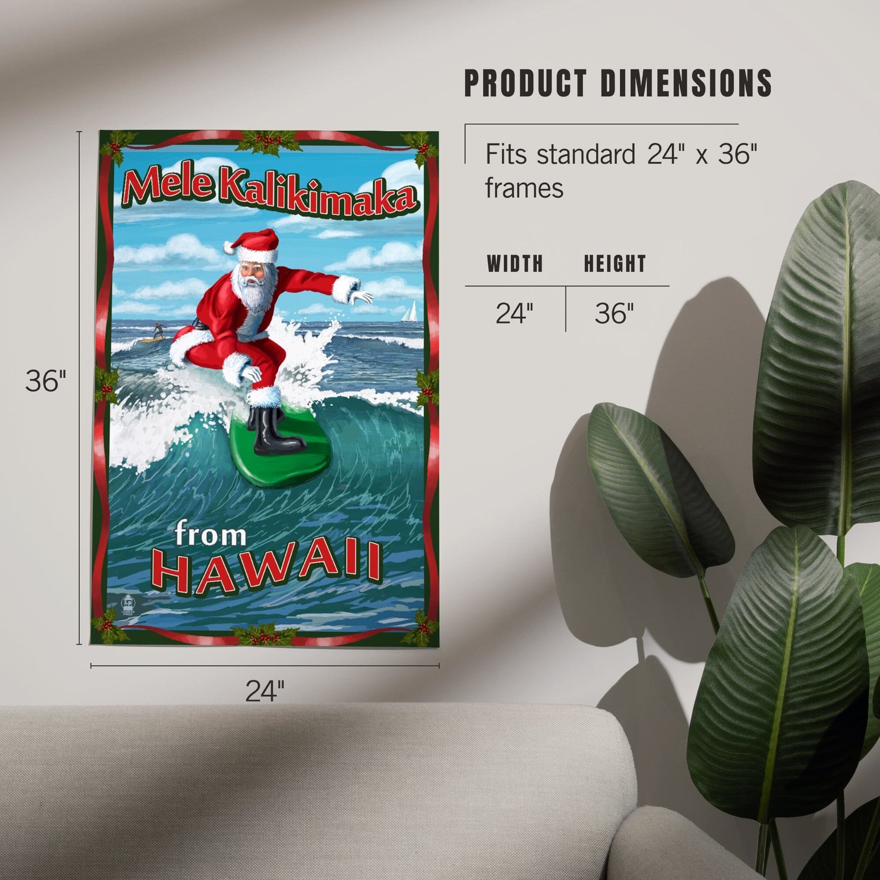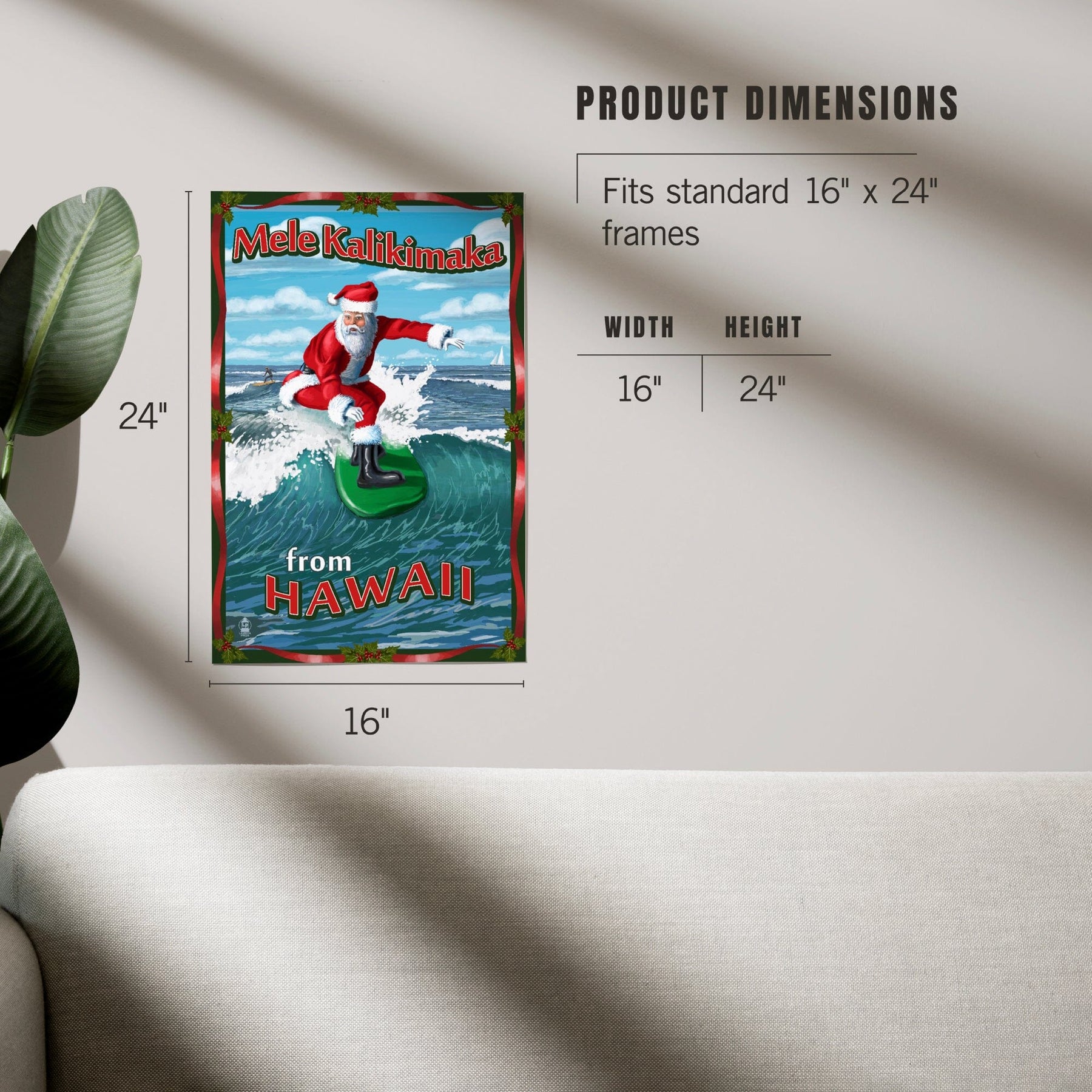 Merry Christmas from Hawaii, Santa Surfing, Art & Giclee Prints Art Lantern Press