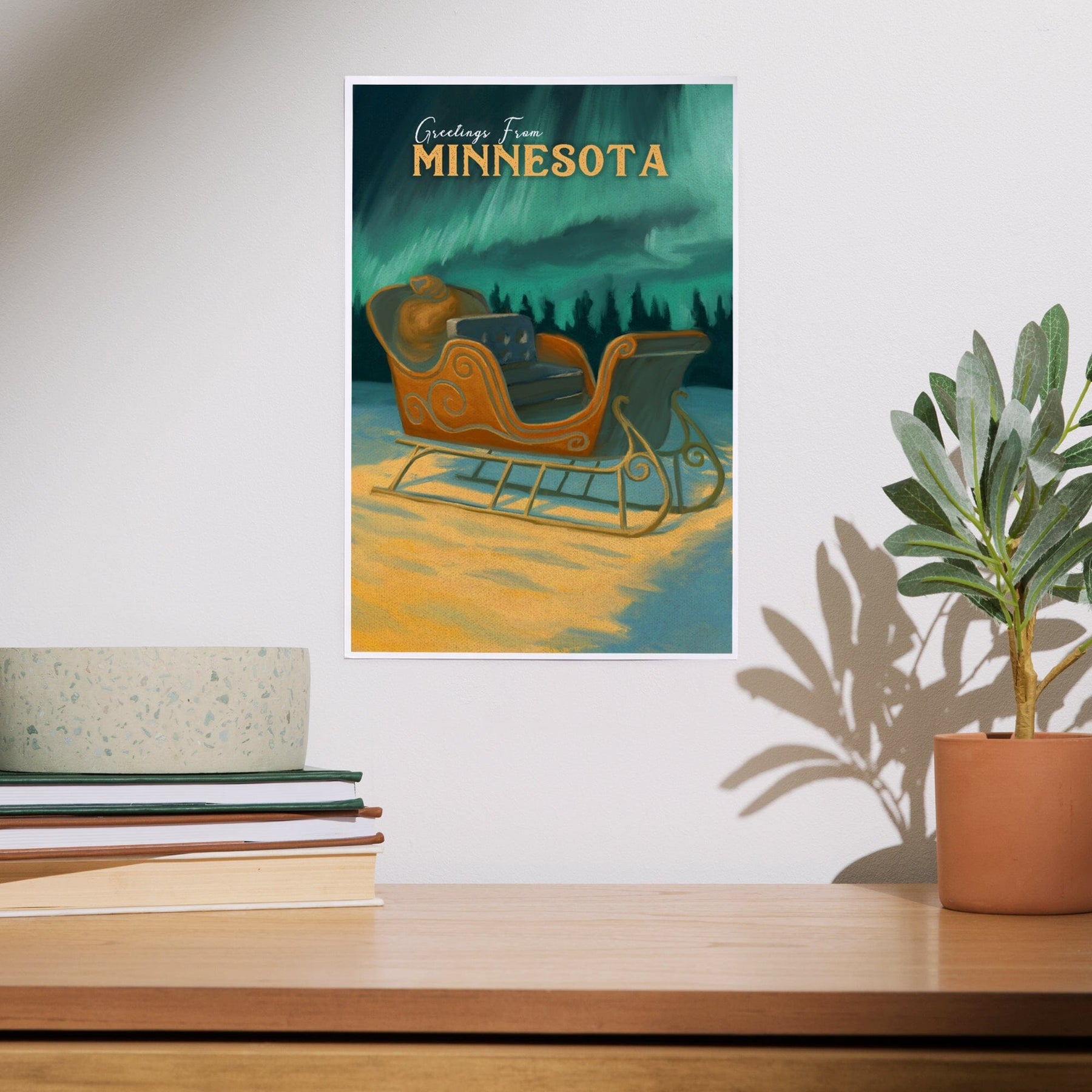 Minnesota, Santa's Sleigh, Christmas Oil Painting, Art & Giclee Prints Art Lantern Press