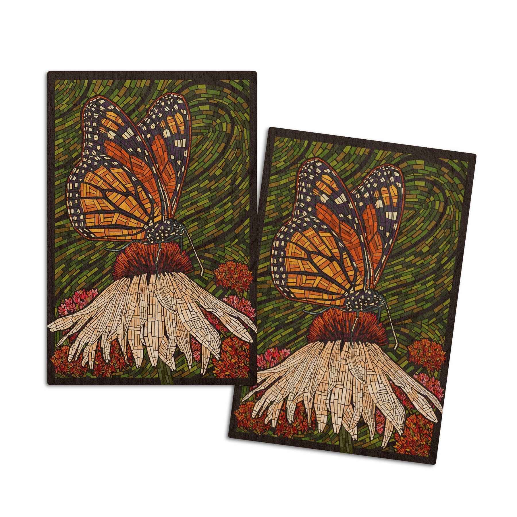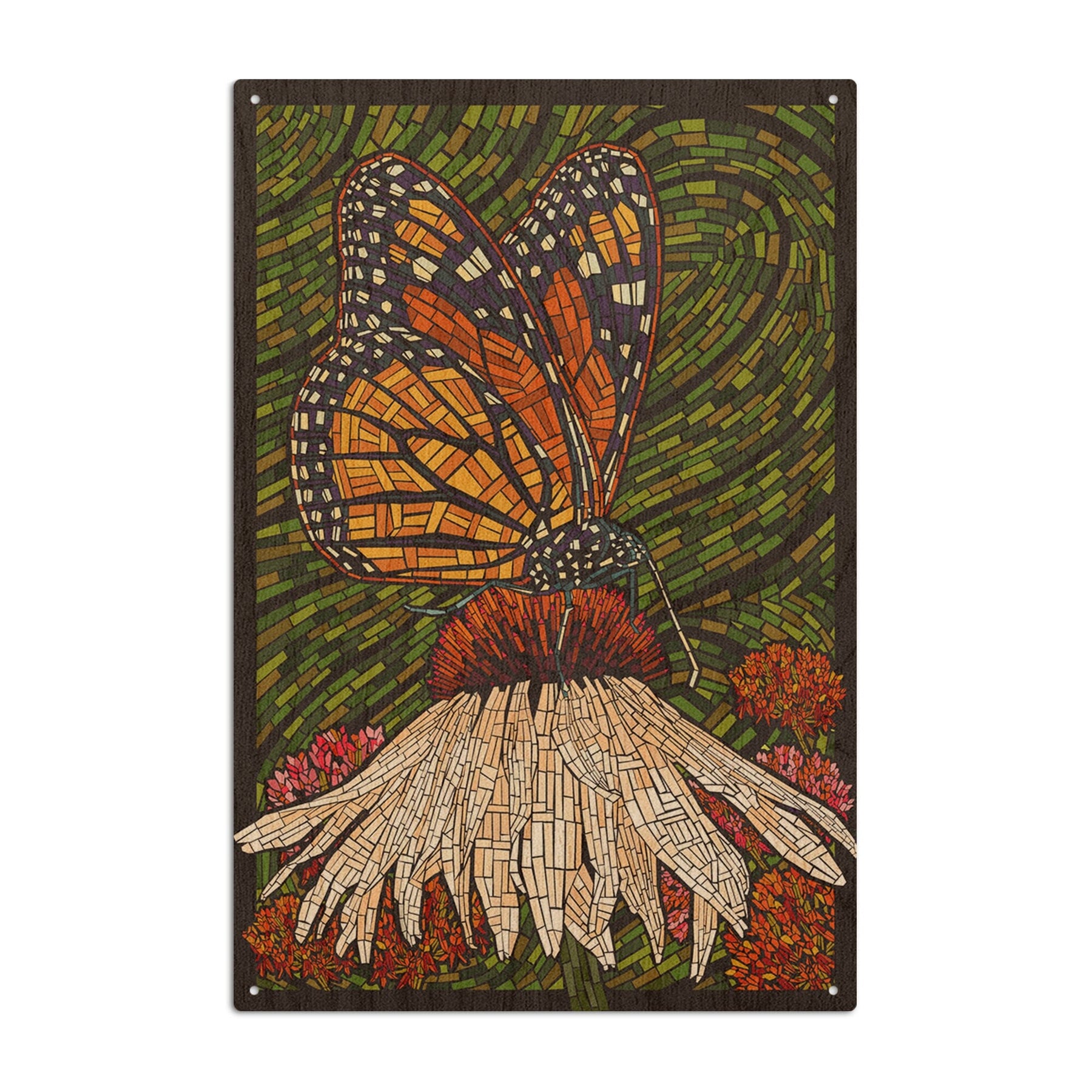 Monarch Butterfly, Paper Mosaic, Green Background, Lantern Press Poster, Wood Signs and Postcards