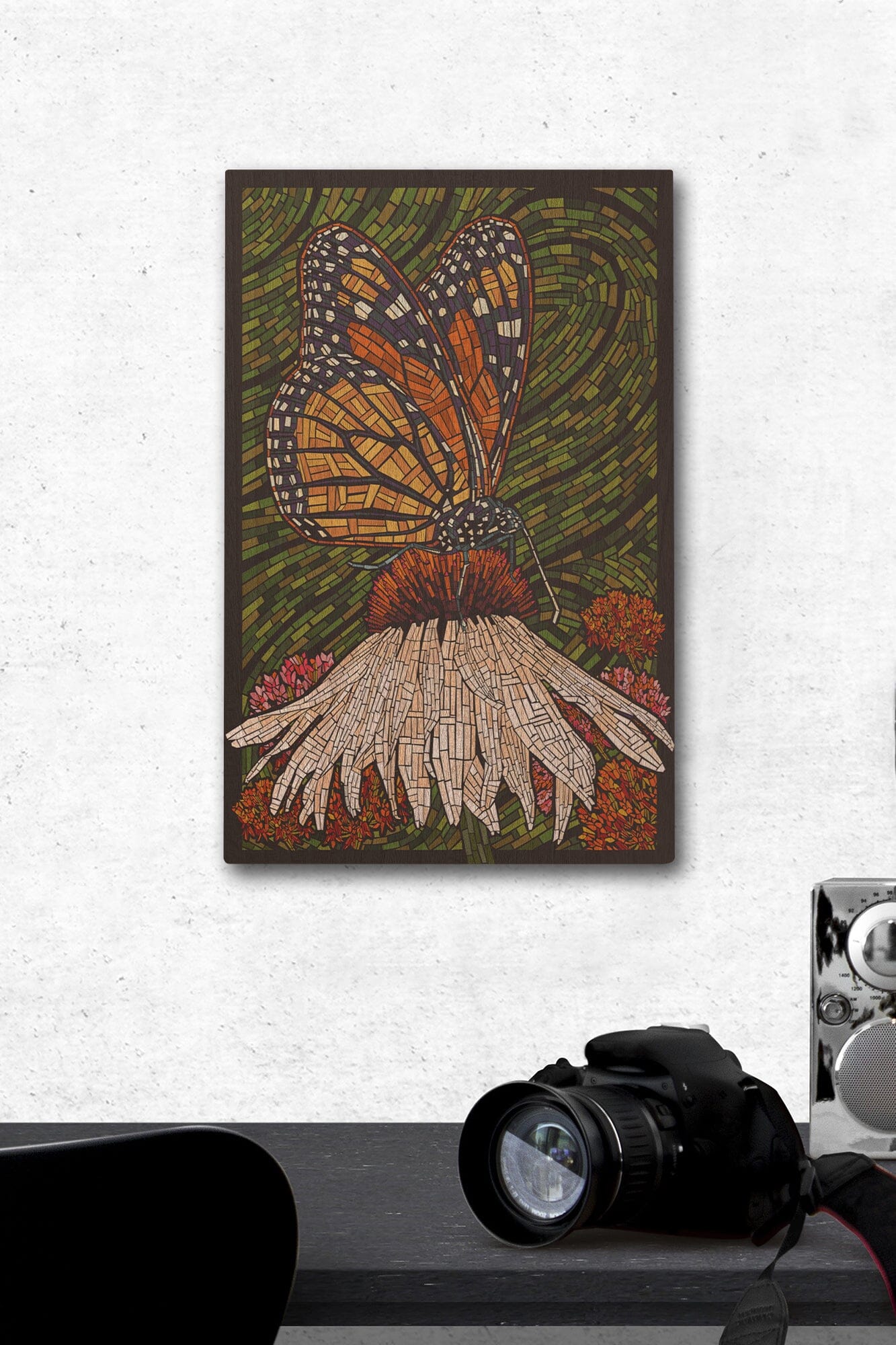Monarch Butterfly, Paper Mosaic, Green Background, Lantern Press Poster, Wood Signs and Postcards Wood Lantern Press