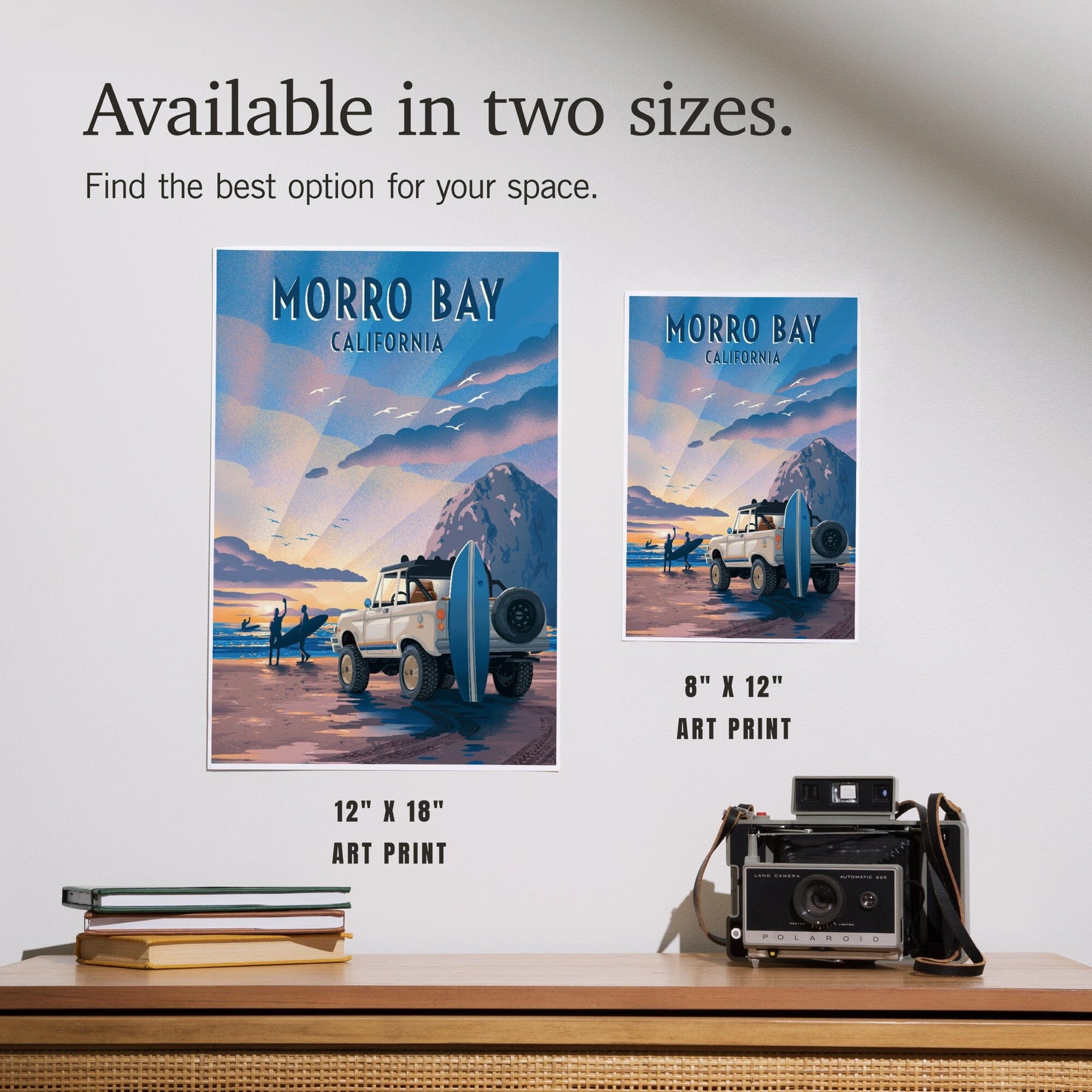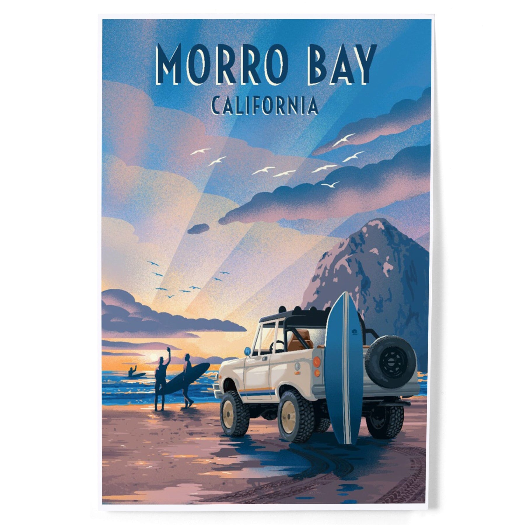 Morro Bay, California, Lithograph, Surfers on Beach, Art & Giclee Prints
