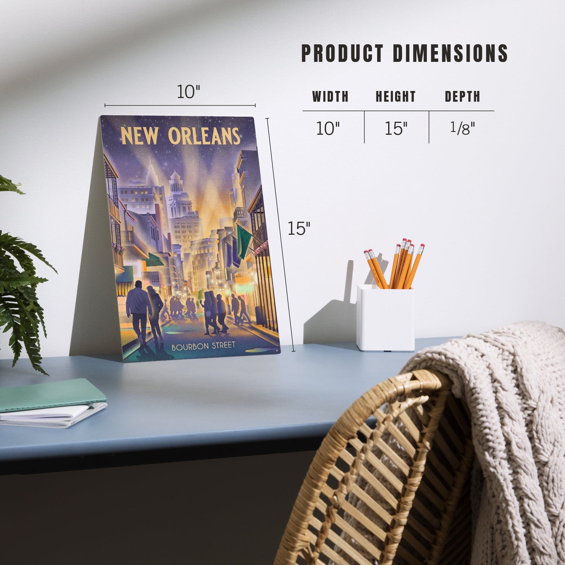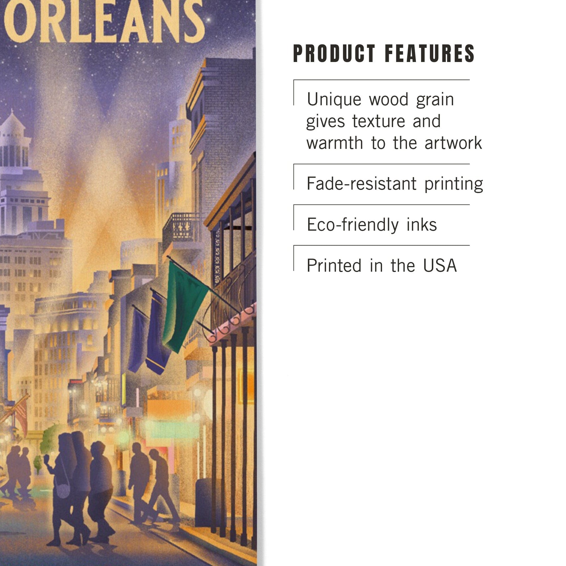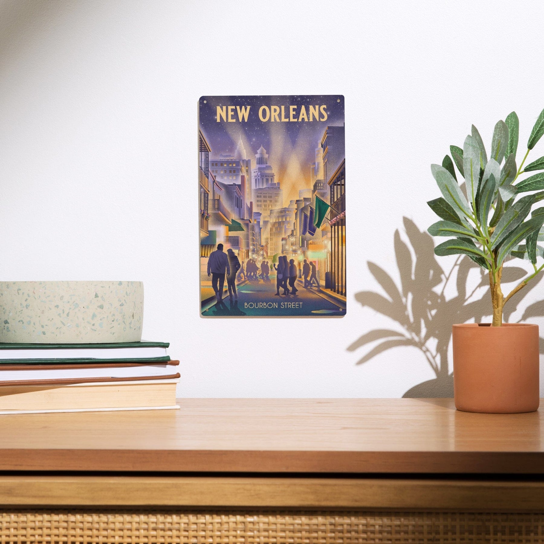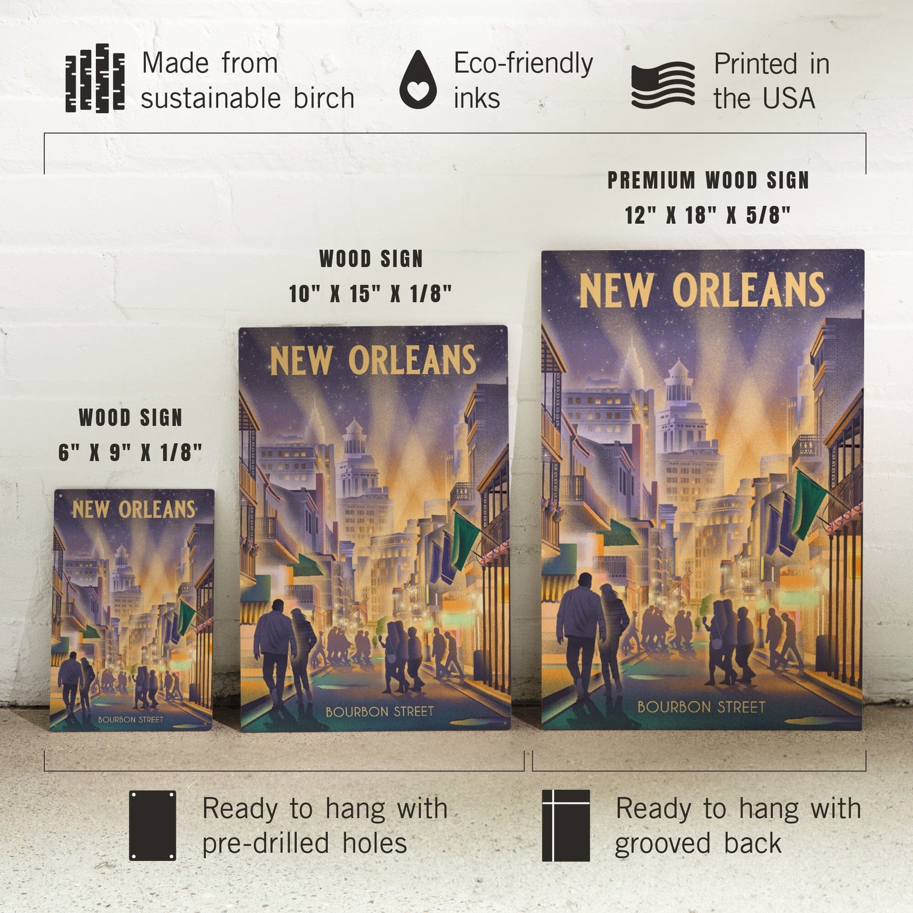 New Orleans, Louisiana, Lithograph, City Series, Bourbon Street Wood Lantern Press