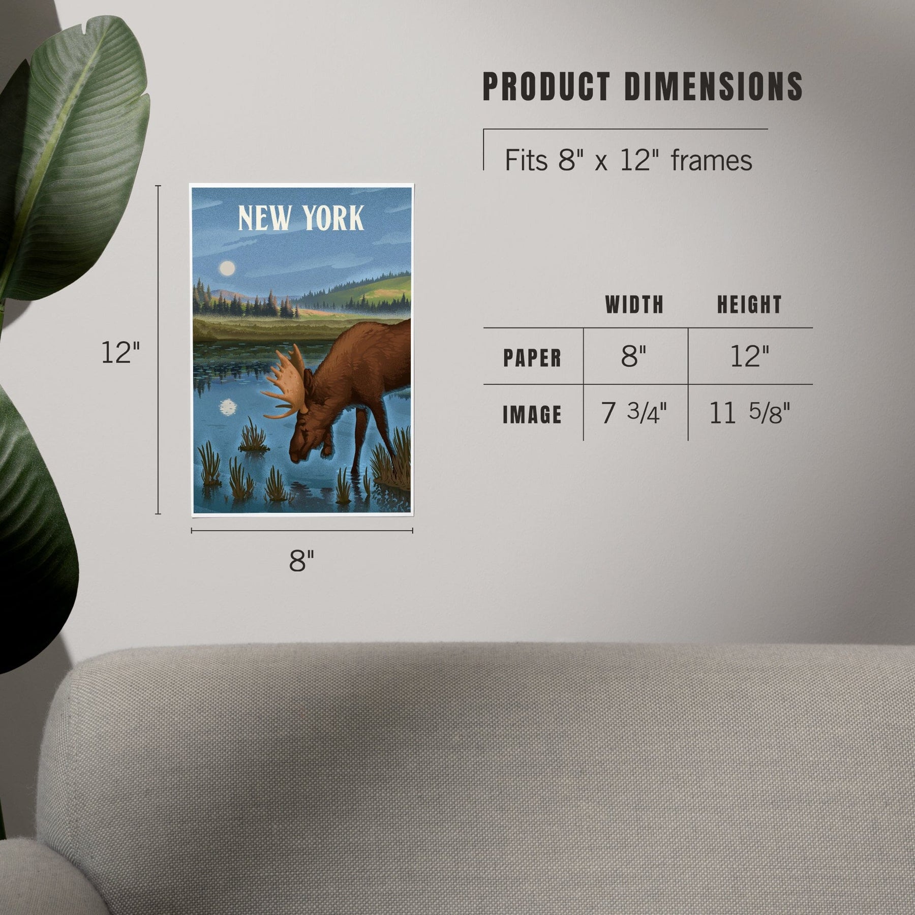 New York, Lithograph, Reflection Pond and Bull Moose, Art & Giclee Prints Art Lantern Press