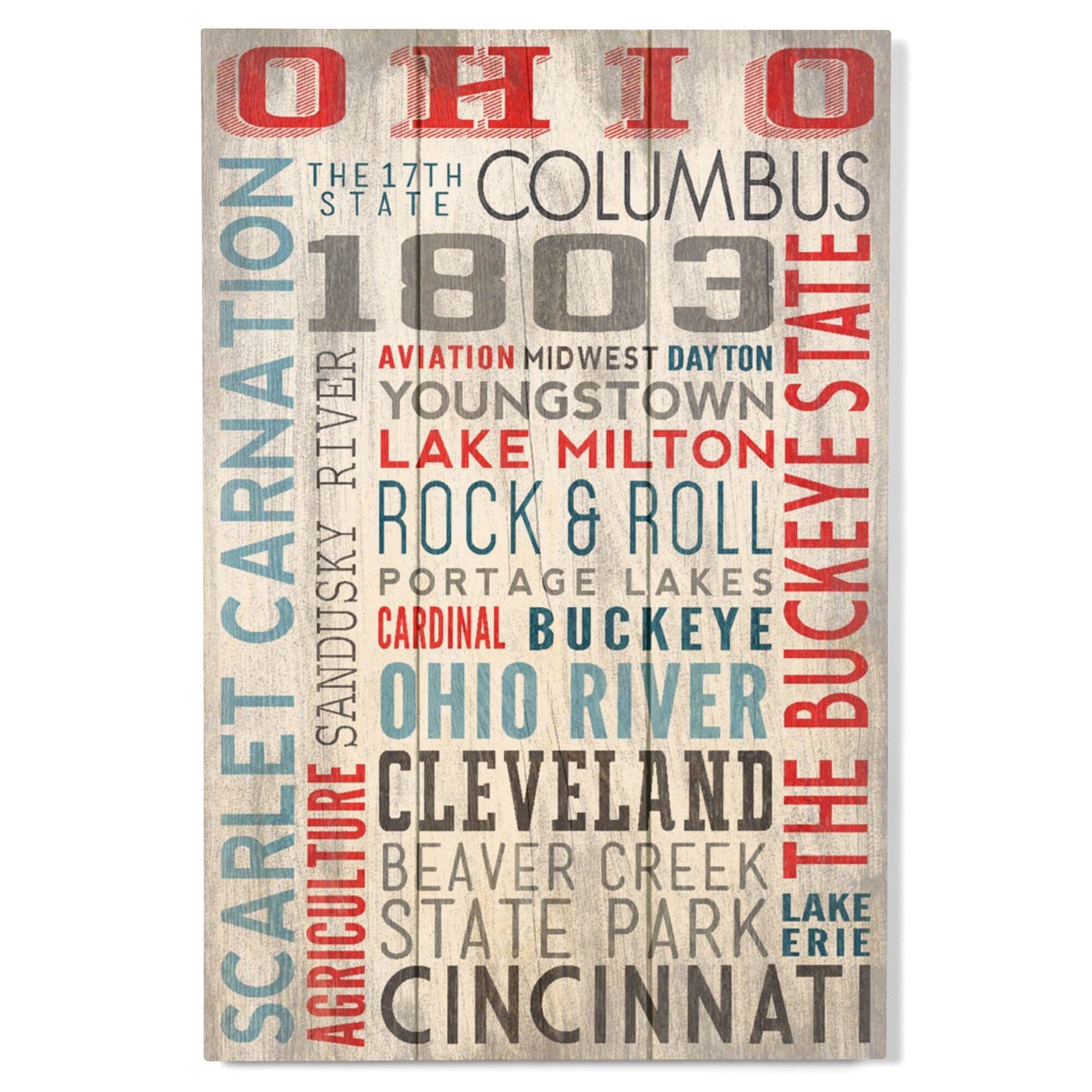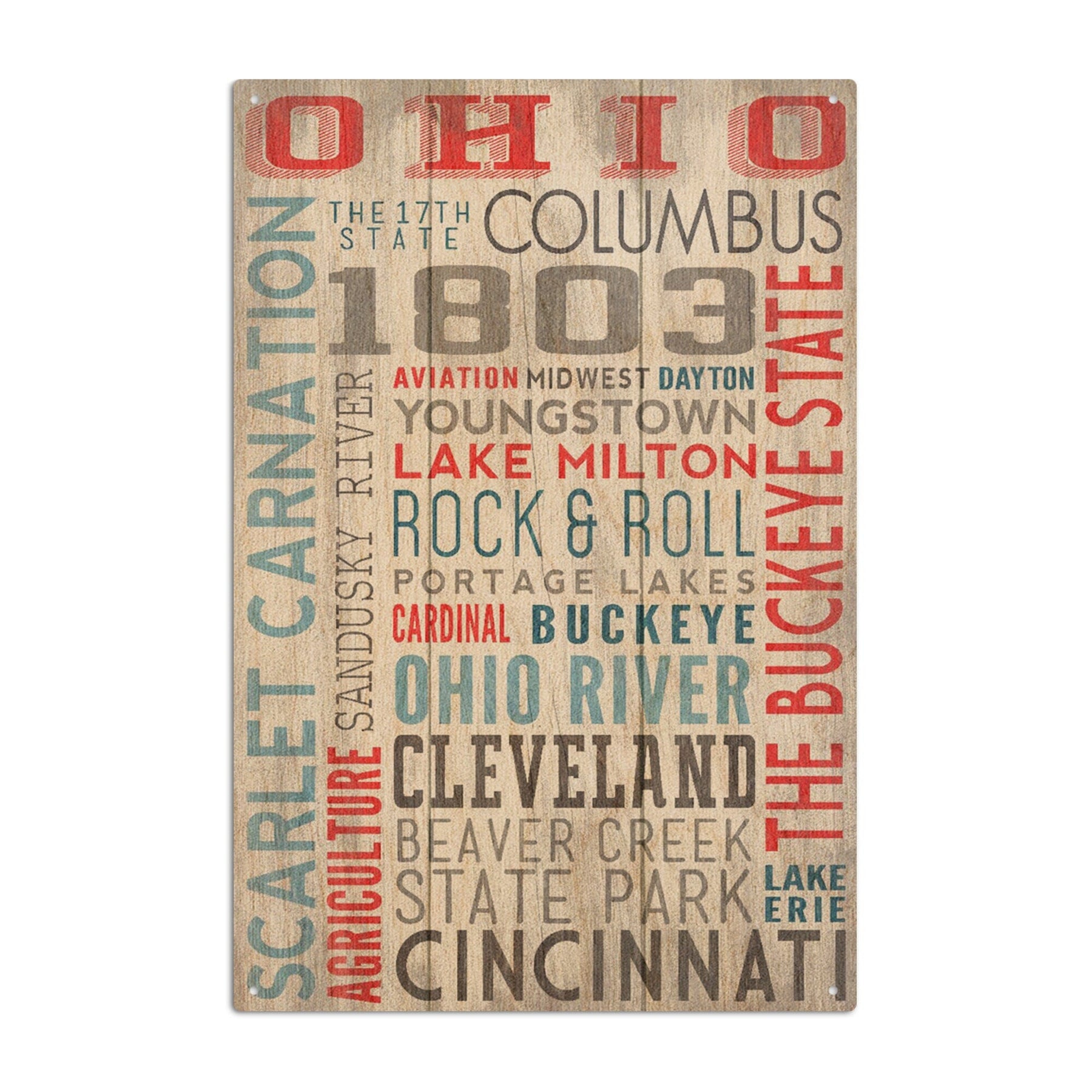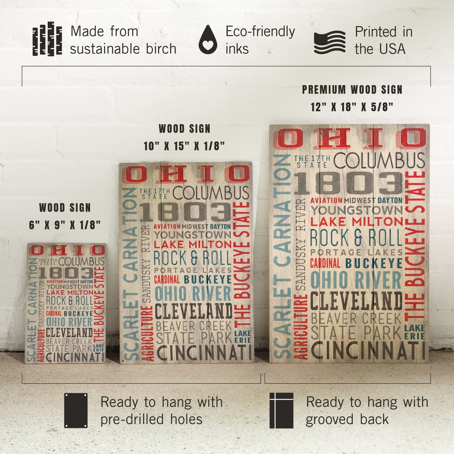 Ohio, The Buckeye State, Rustic Typography, Lantern Press Artwork, Wood Signs and Postcards