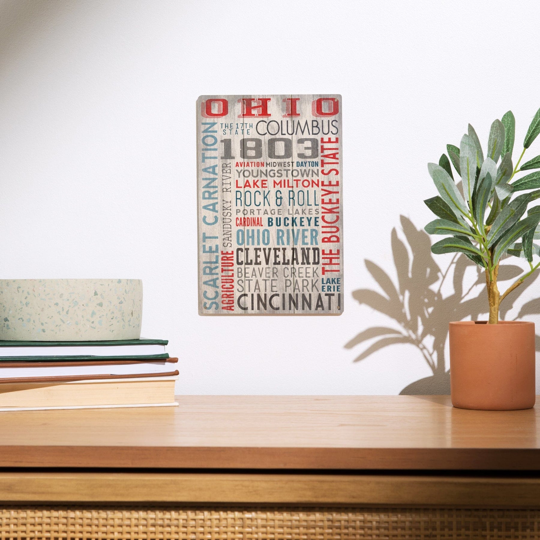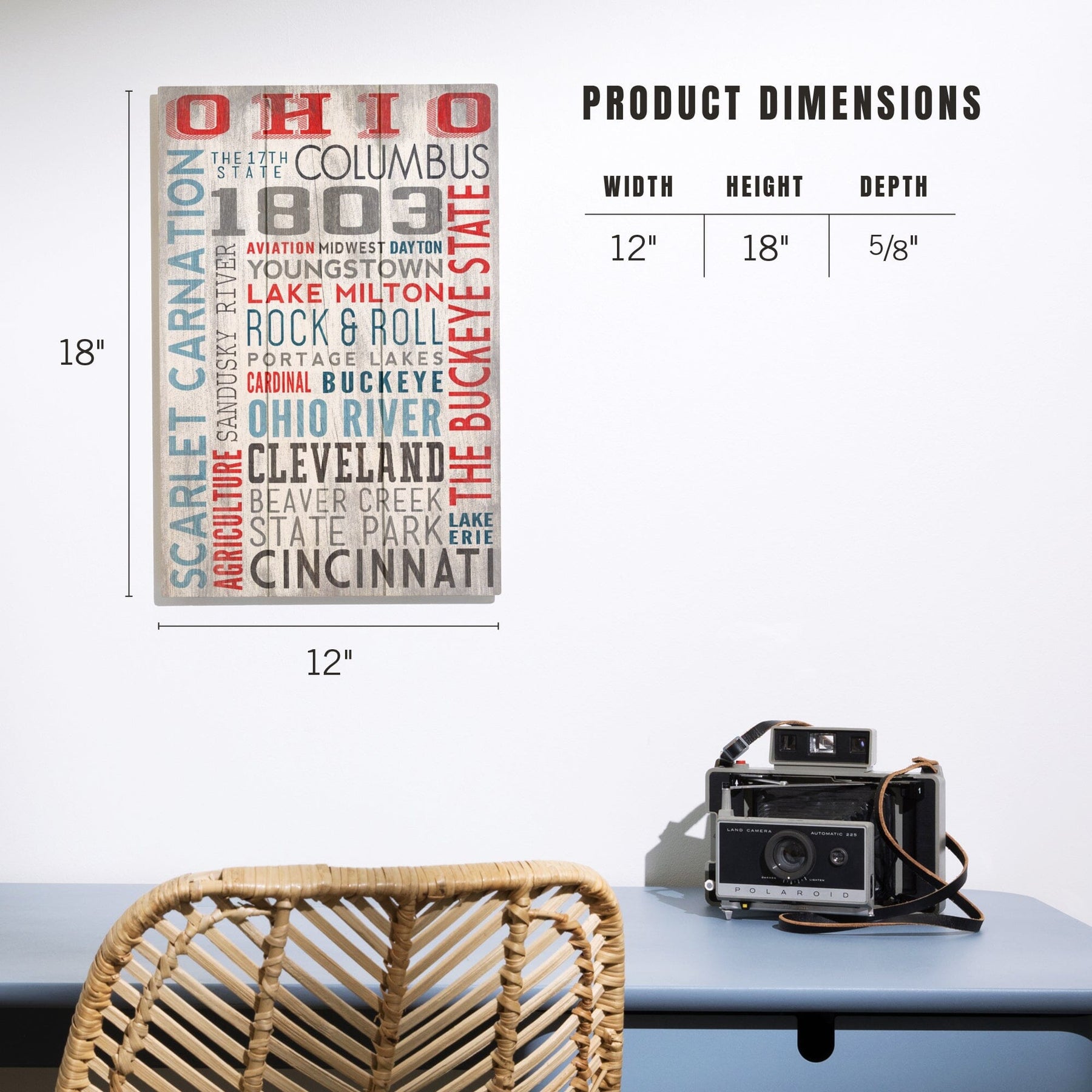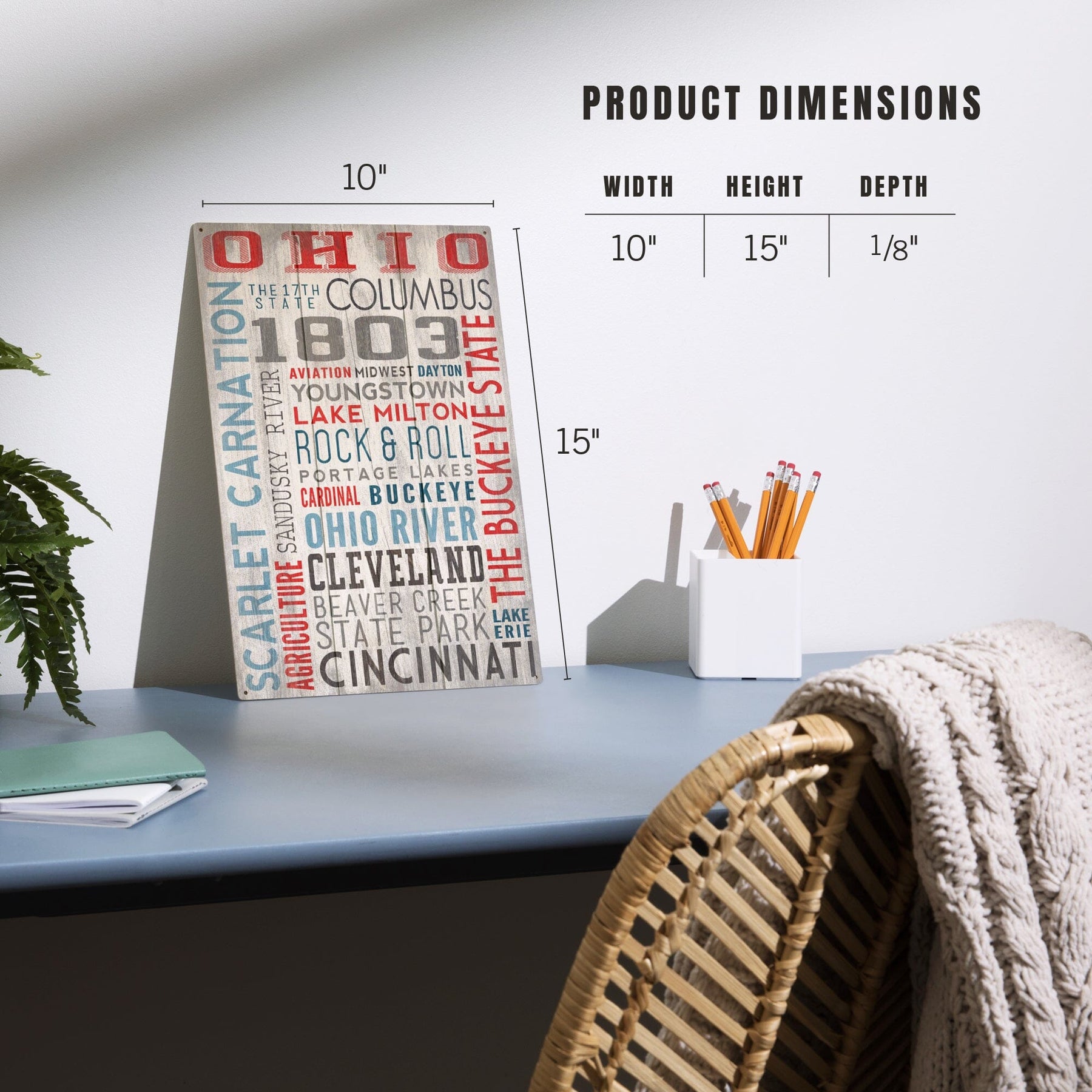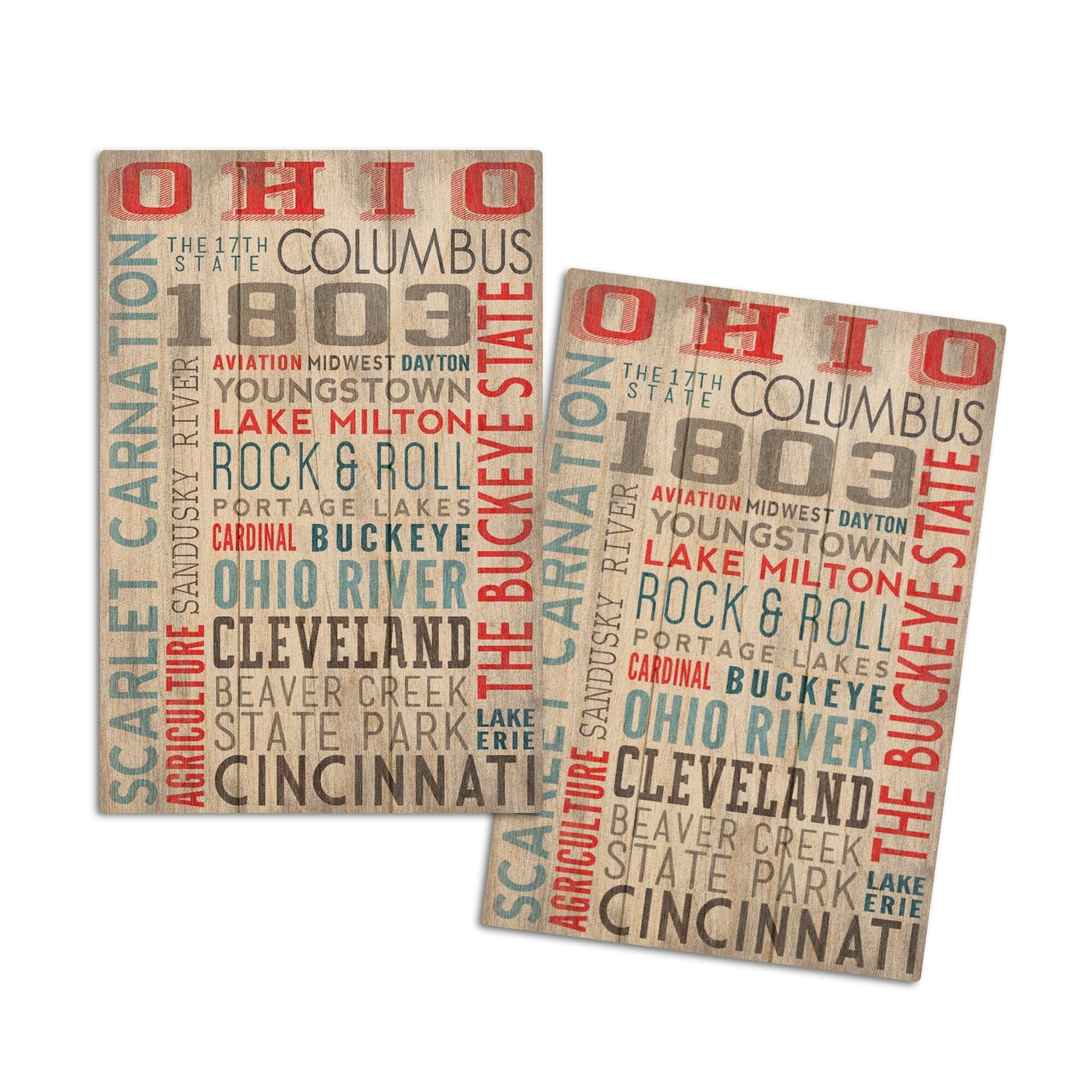 Ohio, The Buckeye State, Rustic Typography, Lantern Press Artwork, Wood Signs and Postcards