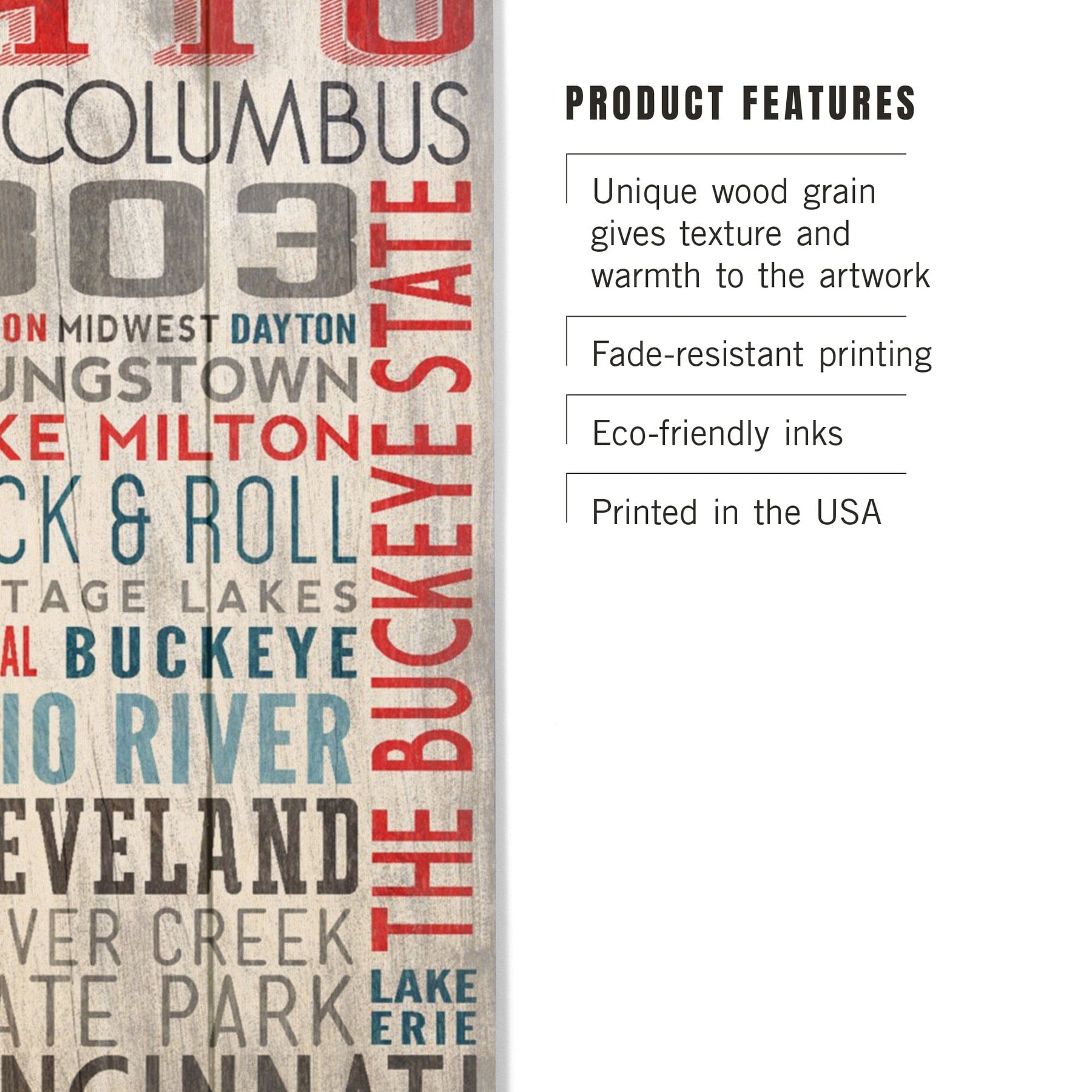 Ohio, The Buckeye State, Rustic Typography, Lantern Press Artwork, Wood Signs and Postcards Wood Lantern Press