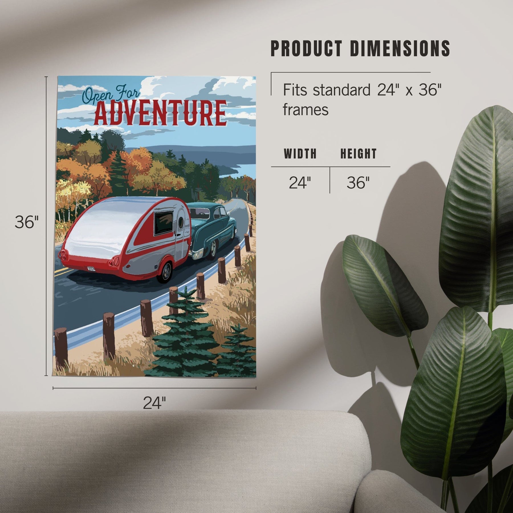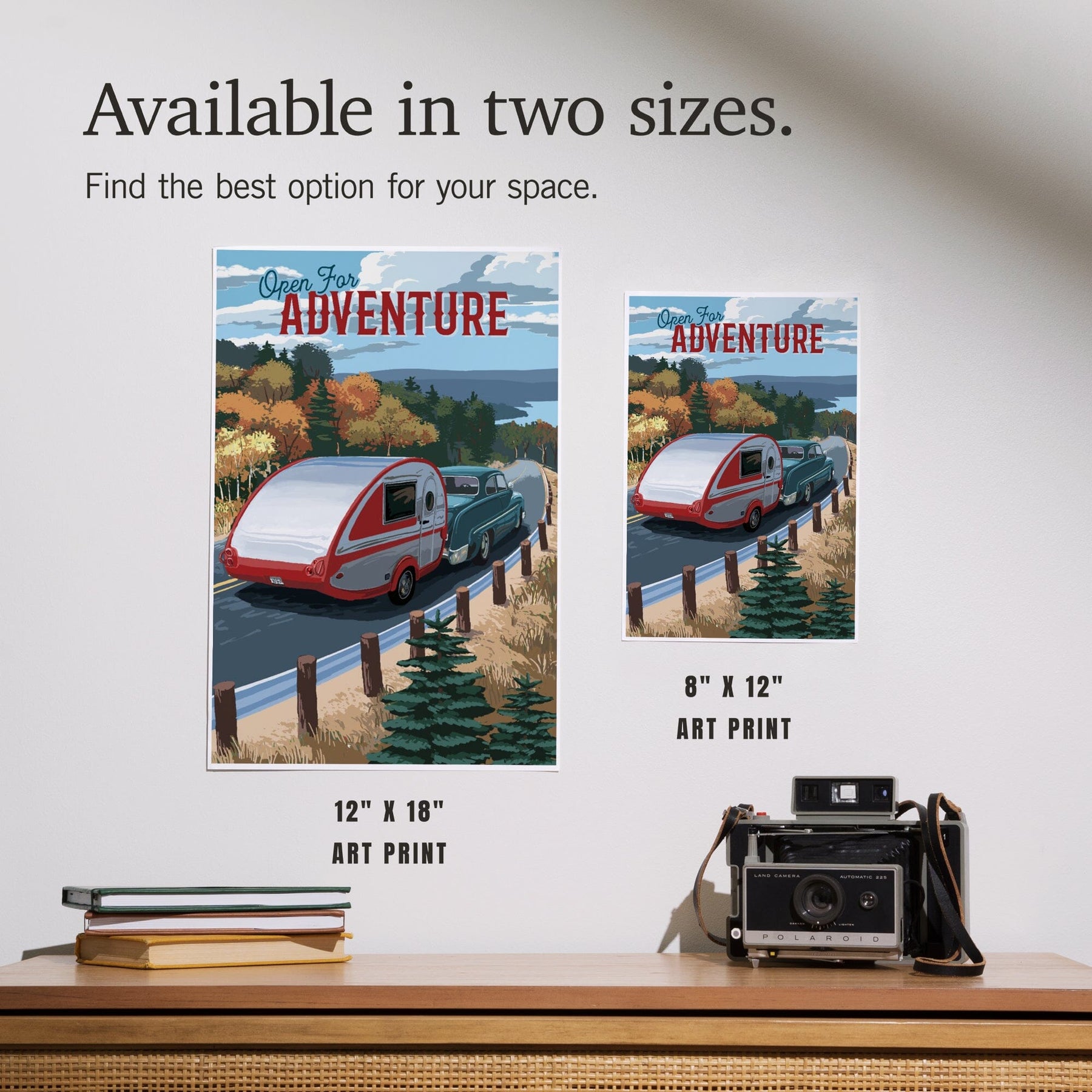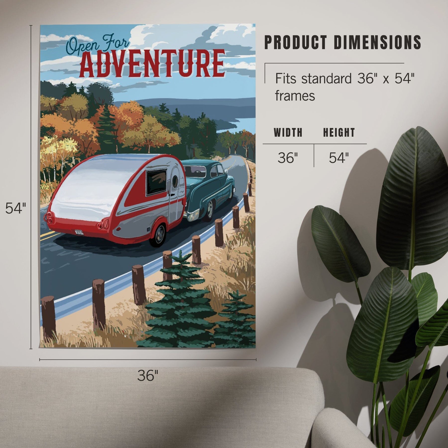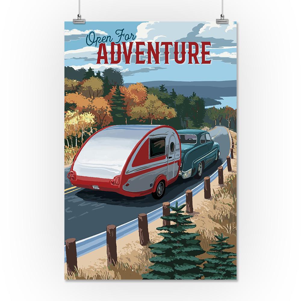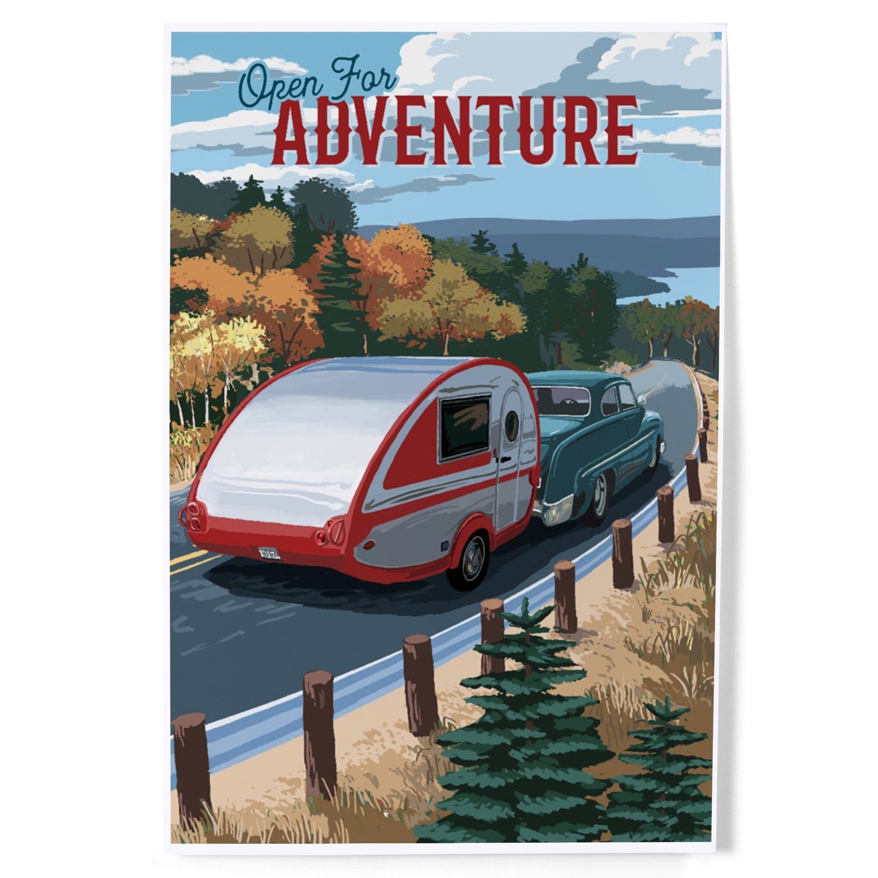 Open for Adventure, Retro Camper on Road, Painterly, Art & Giclee Prints Art Lantern Press