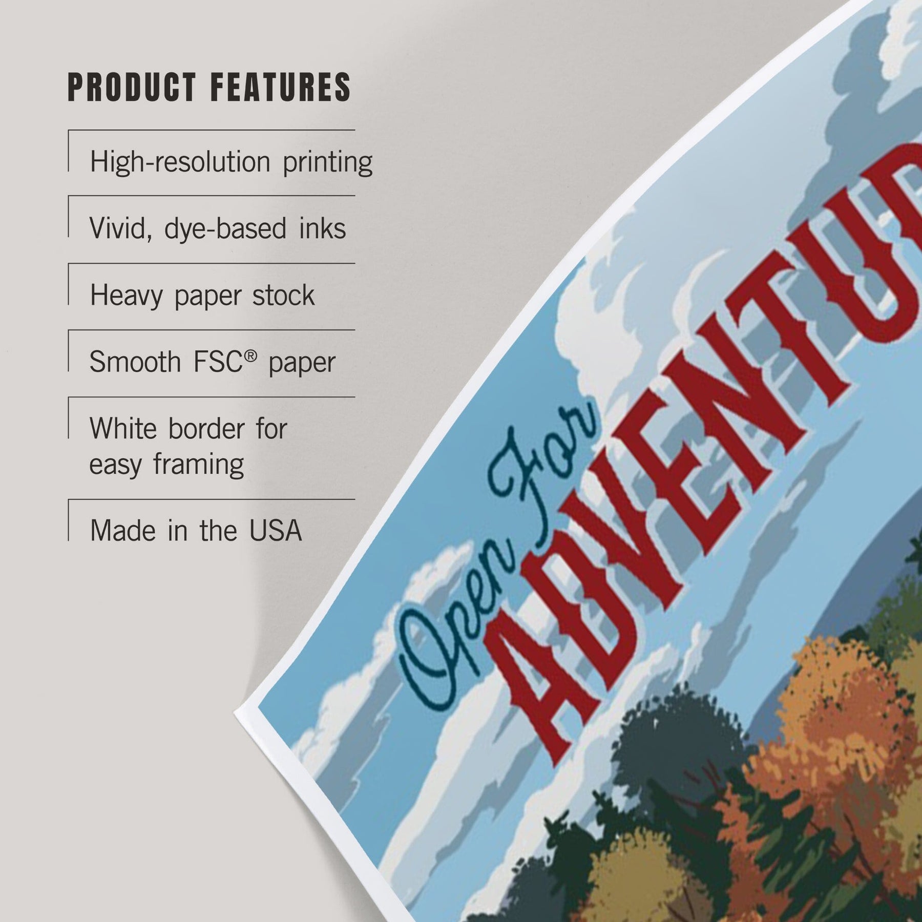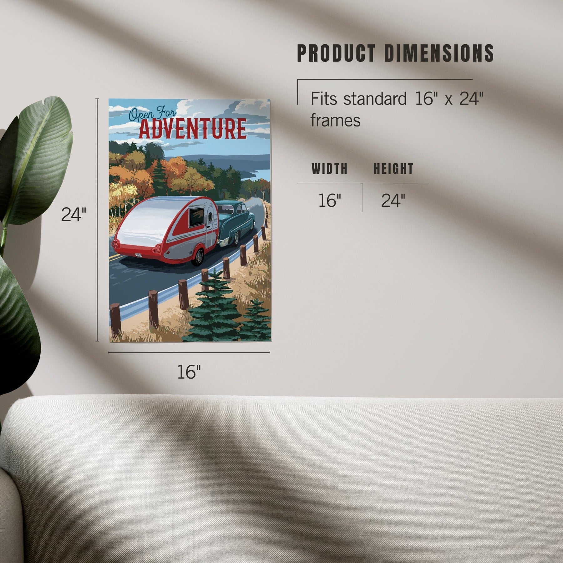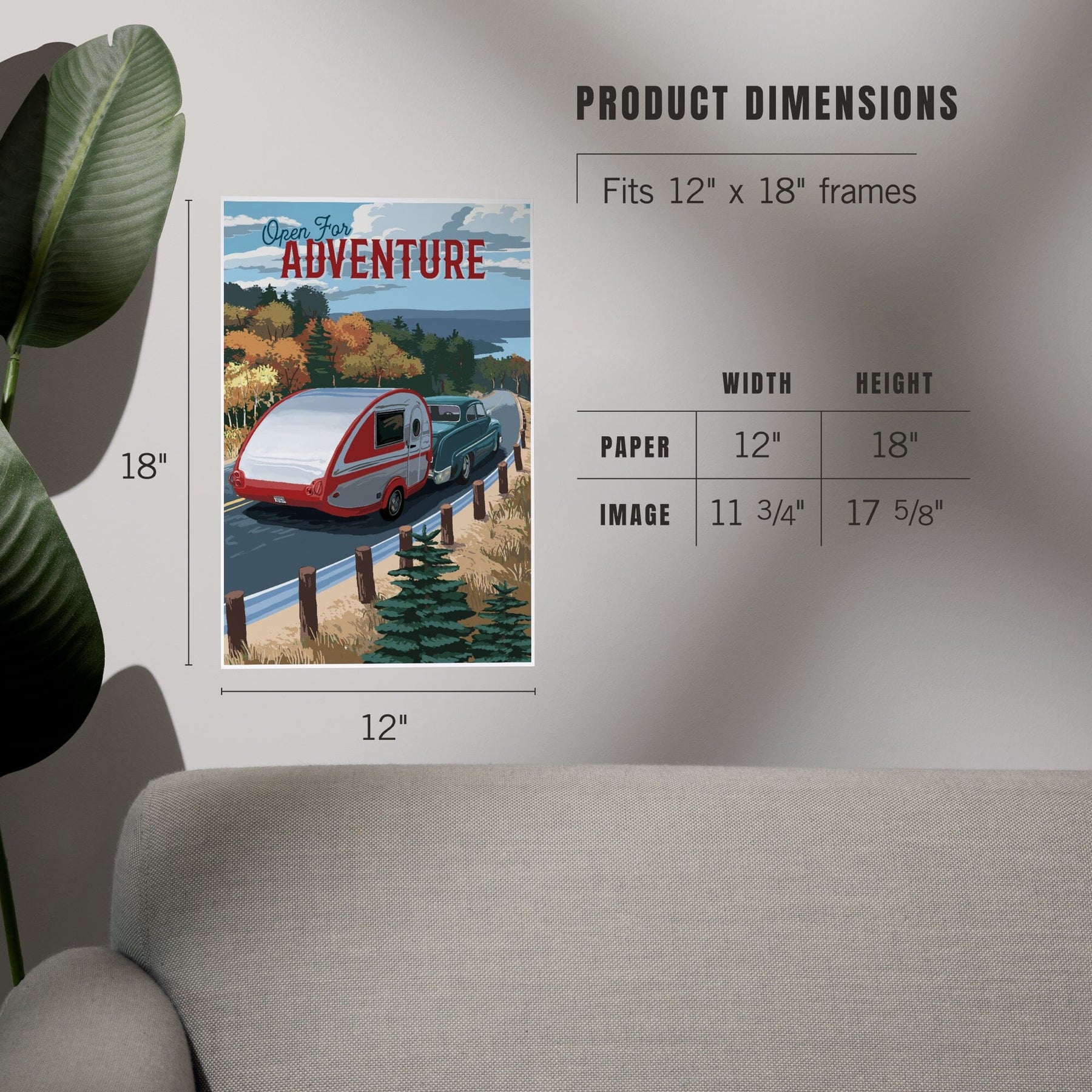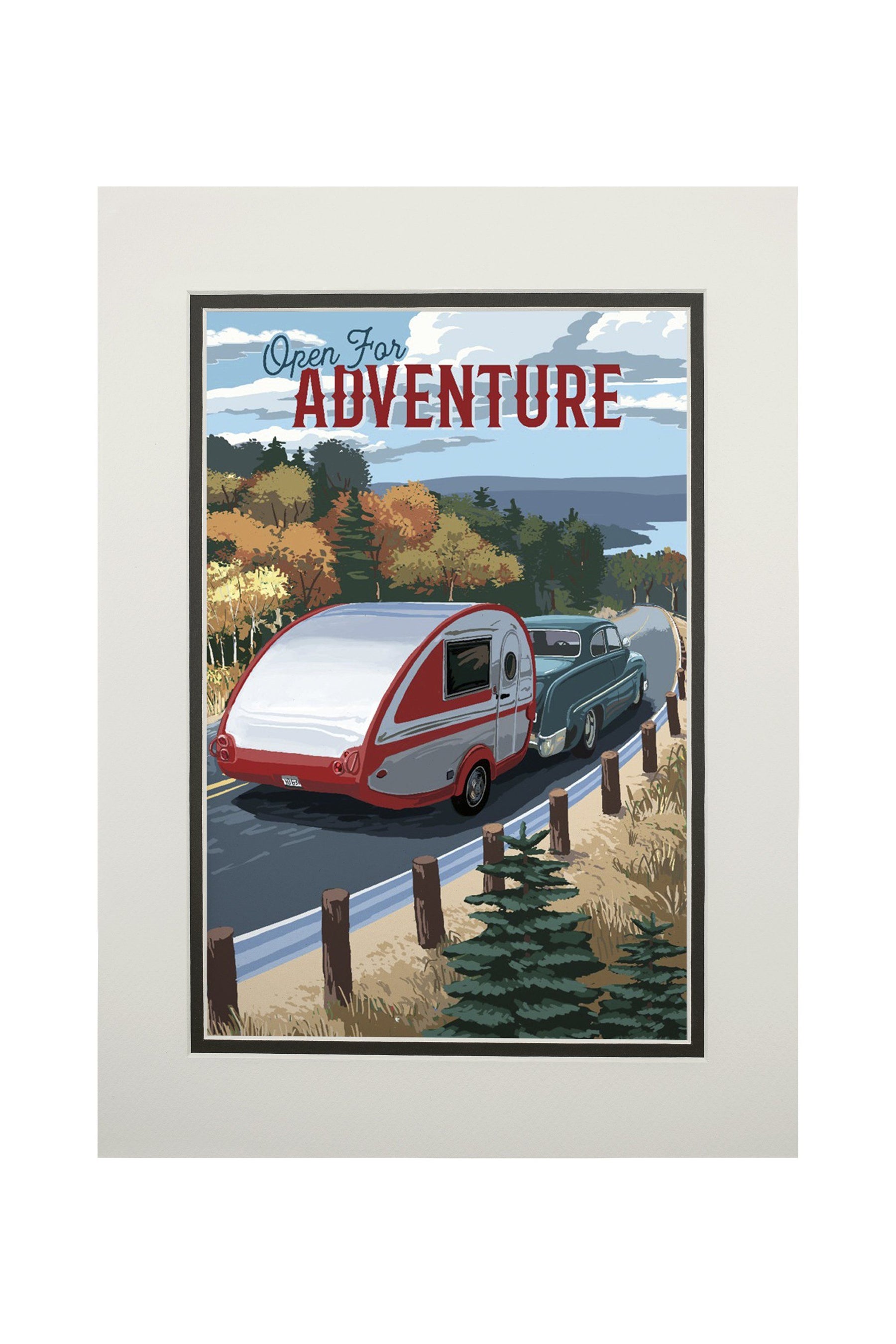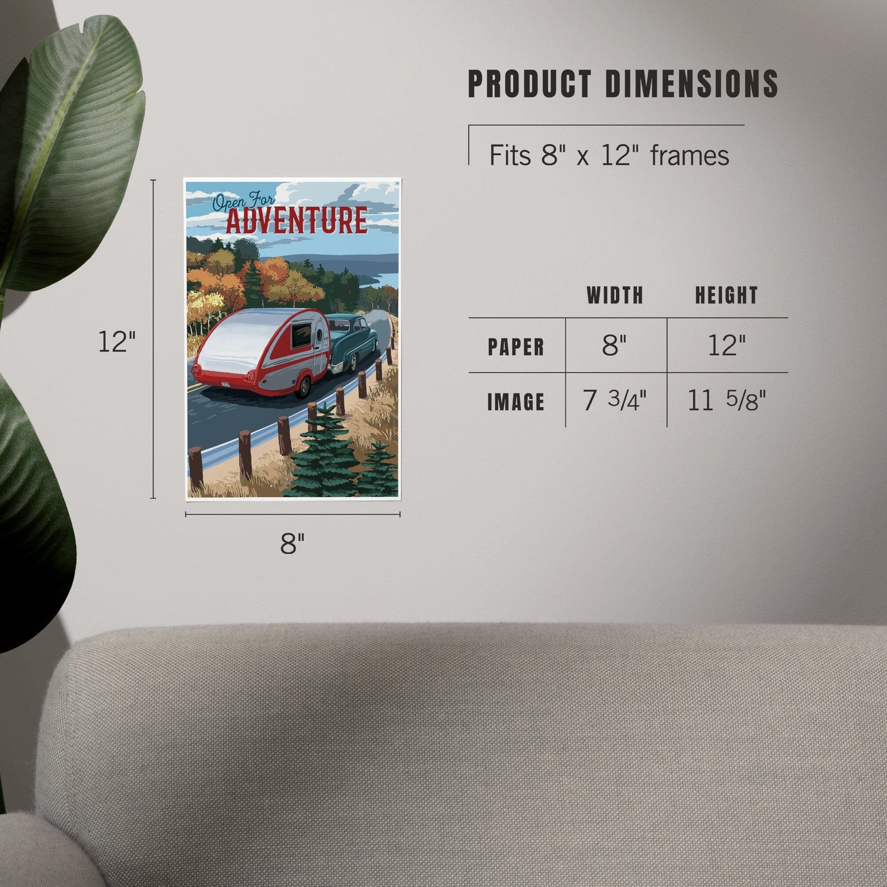 Open for Adventure, Retro Camper on Road, Painterly, Art & Giclee Prints Art Lantern Press
