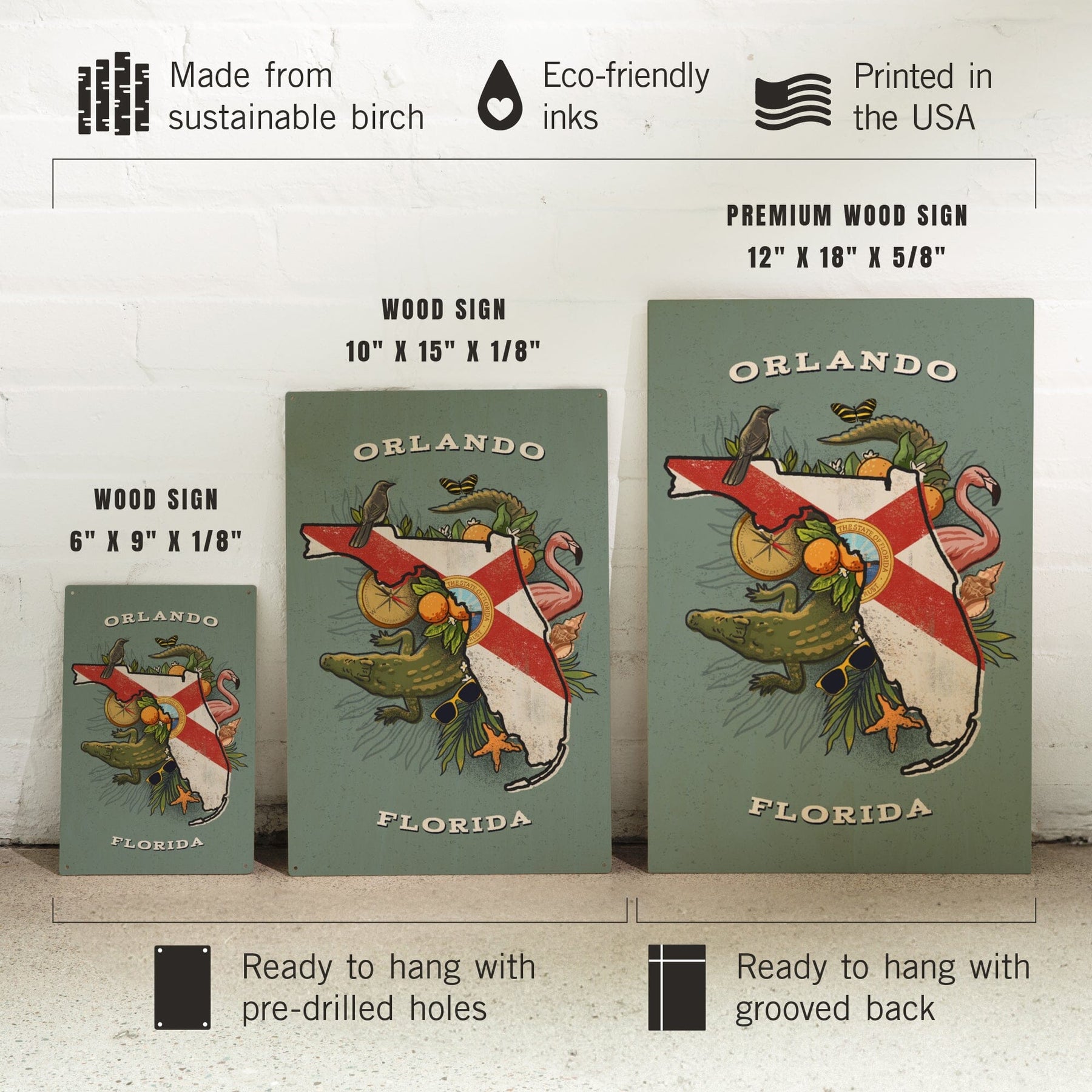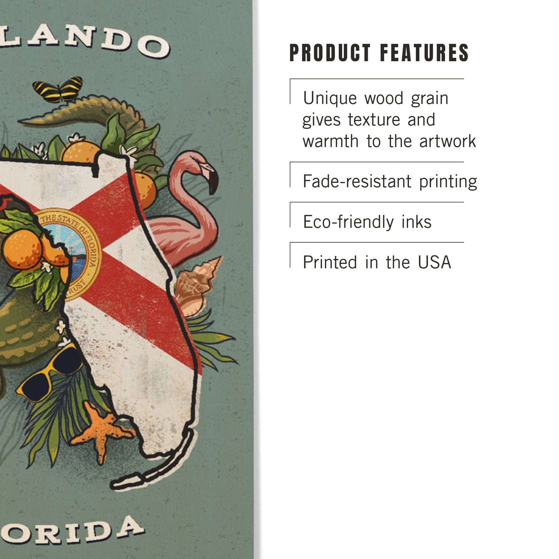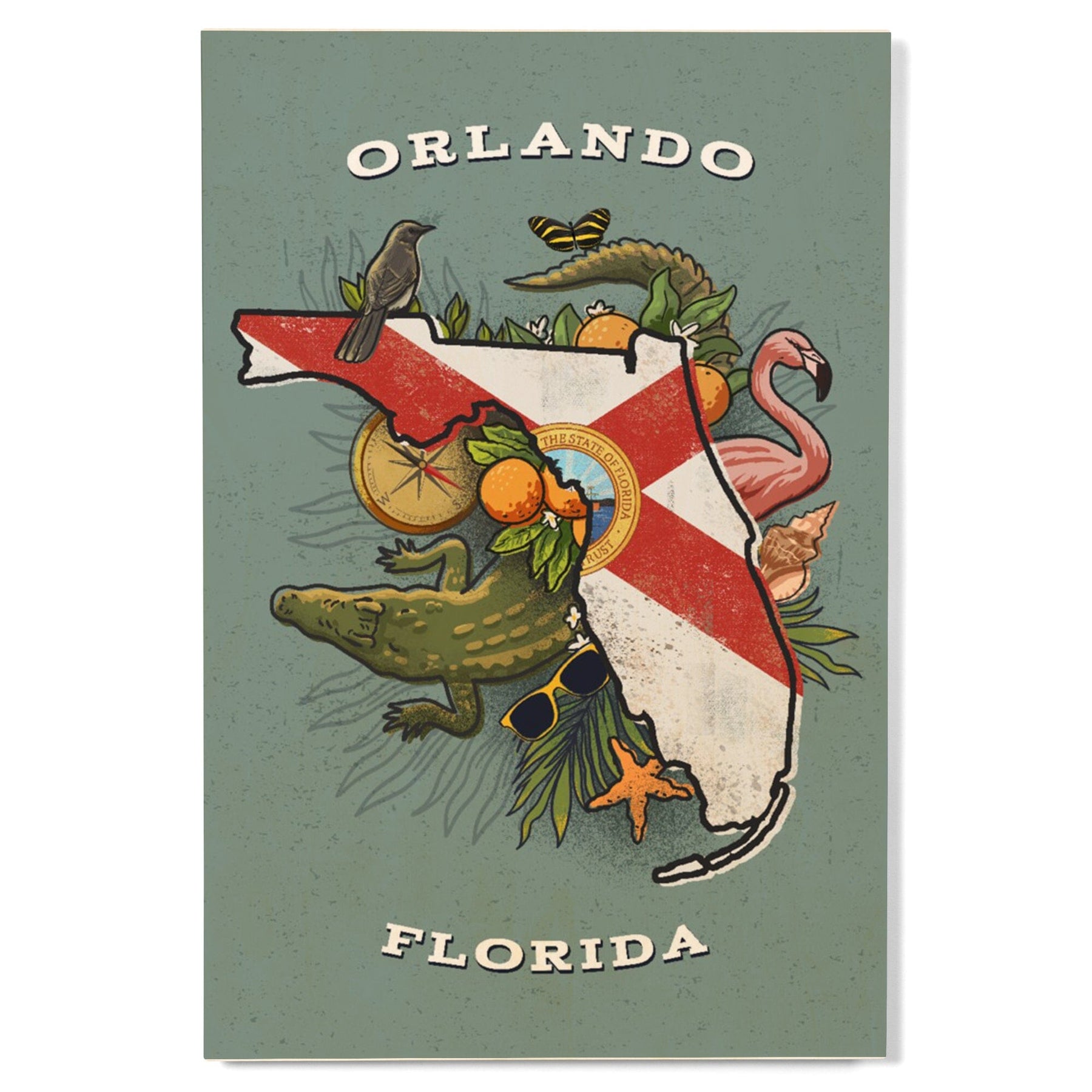 Orlando, Florida, State Treasure Trove, State Series, Wood Signs and Postcards Wood Lantern Press