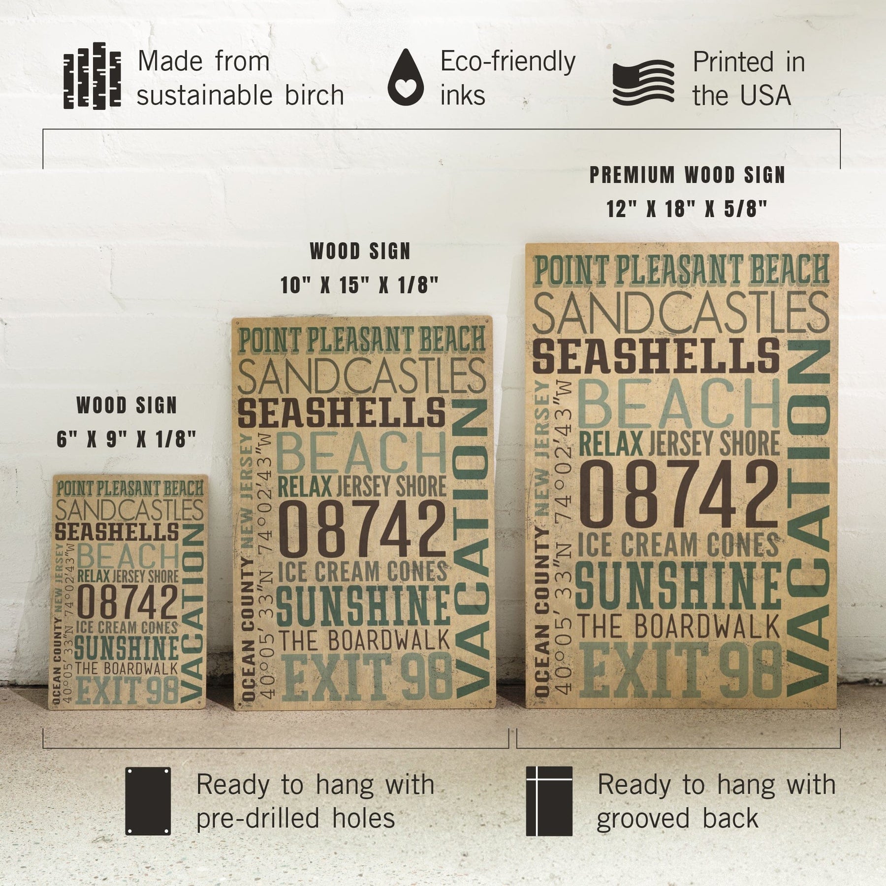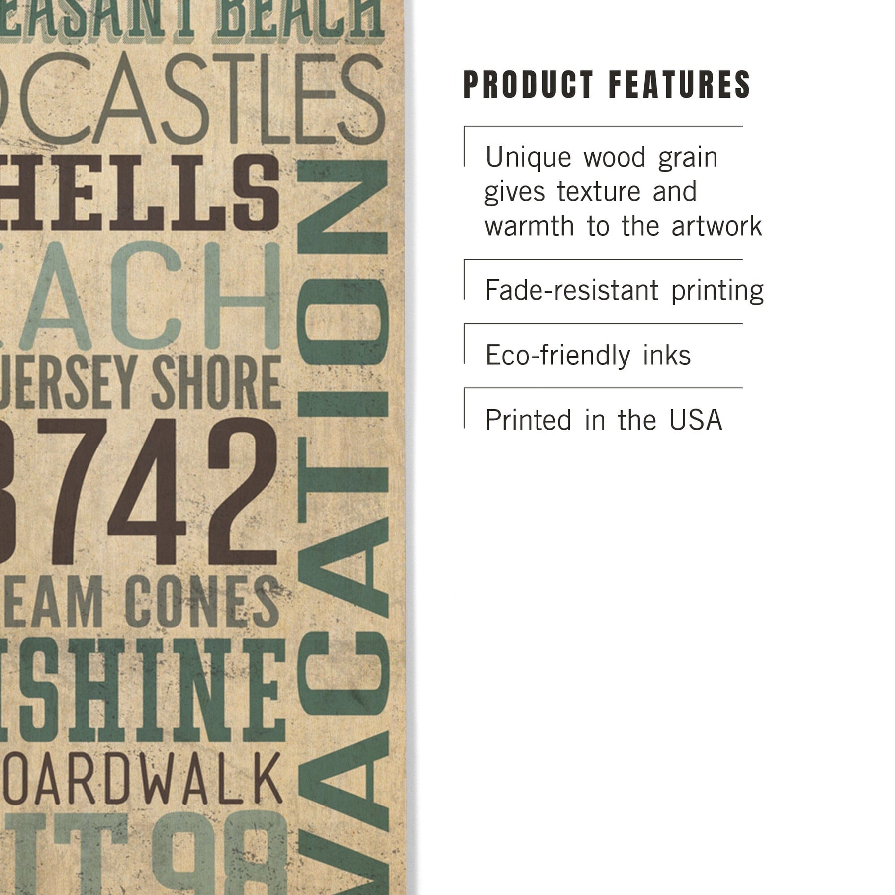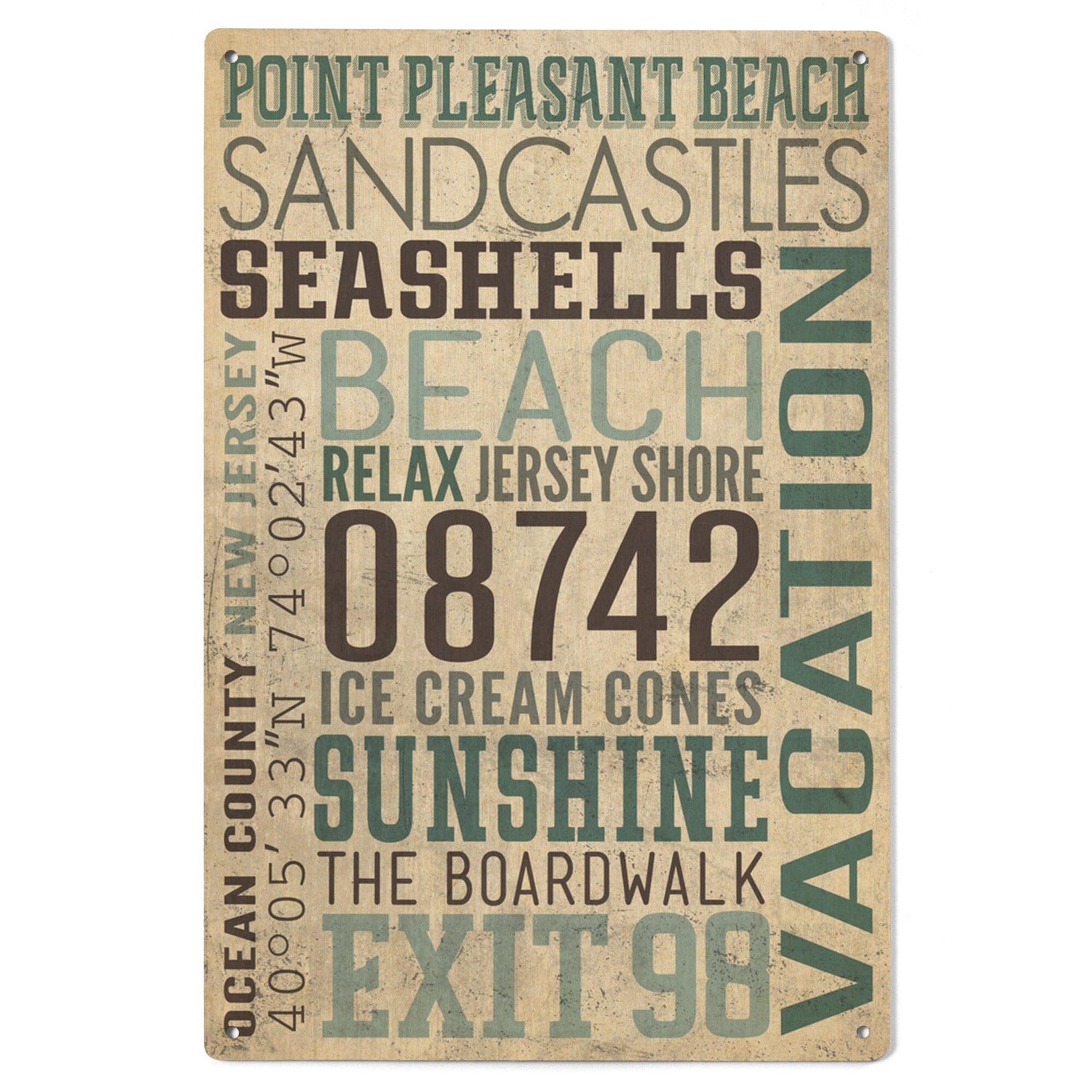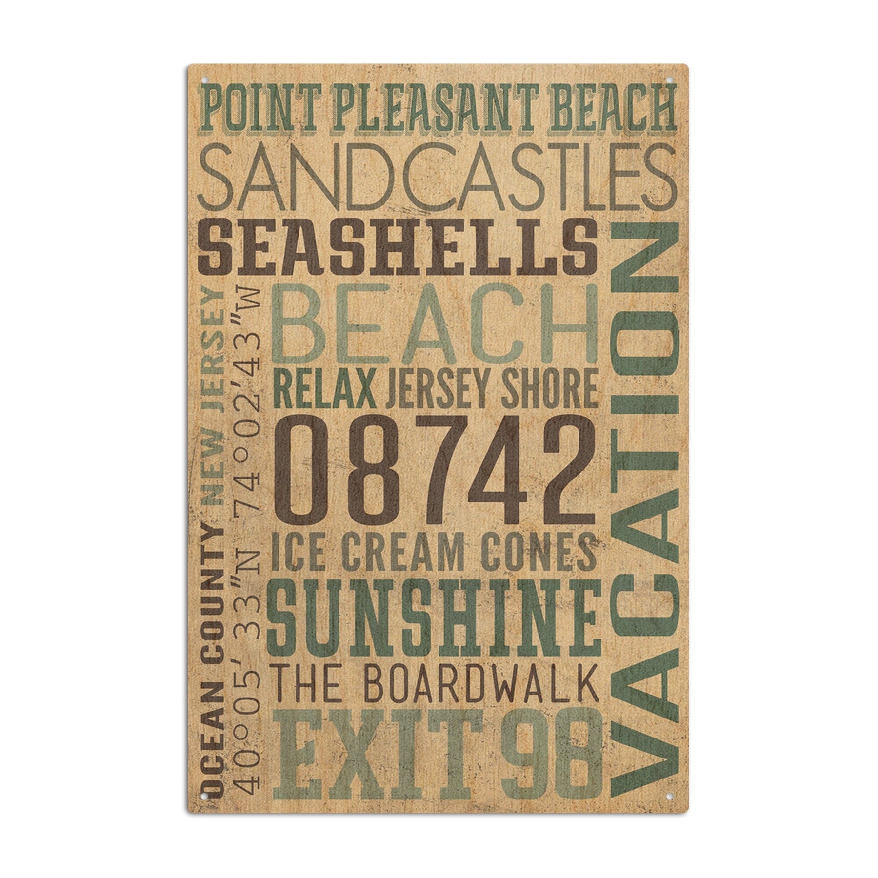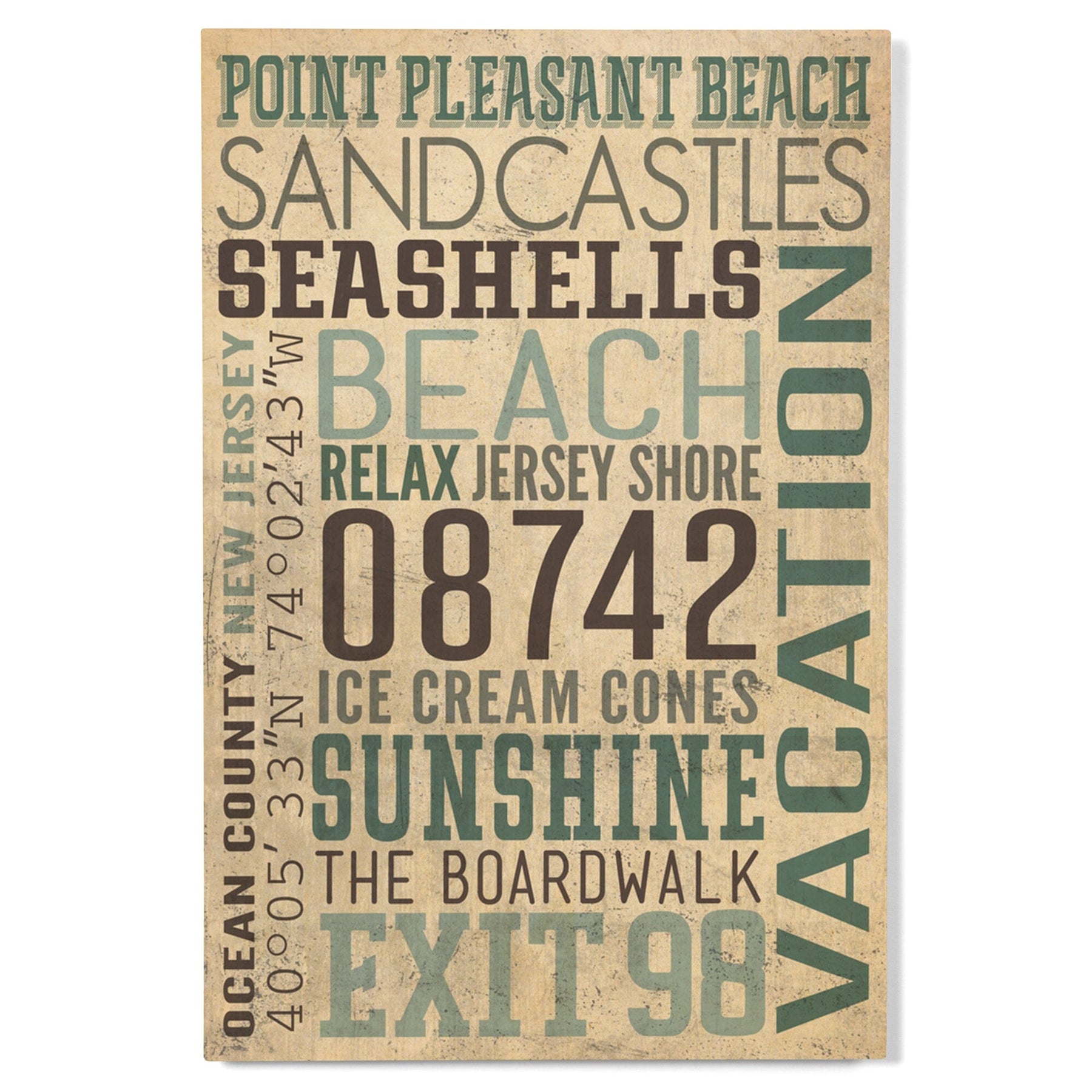 Point Pleasant Beach, New Jersey, Typography, Textured, Lantern Press Artwork, Wood Signs and Postcards
