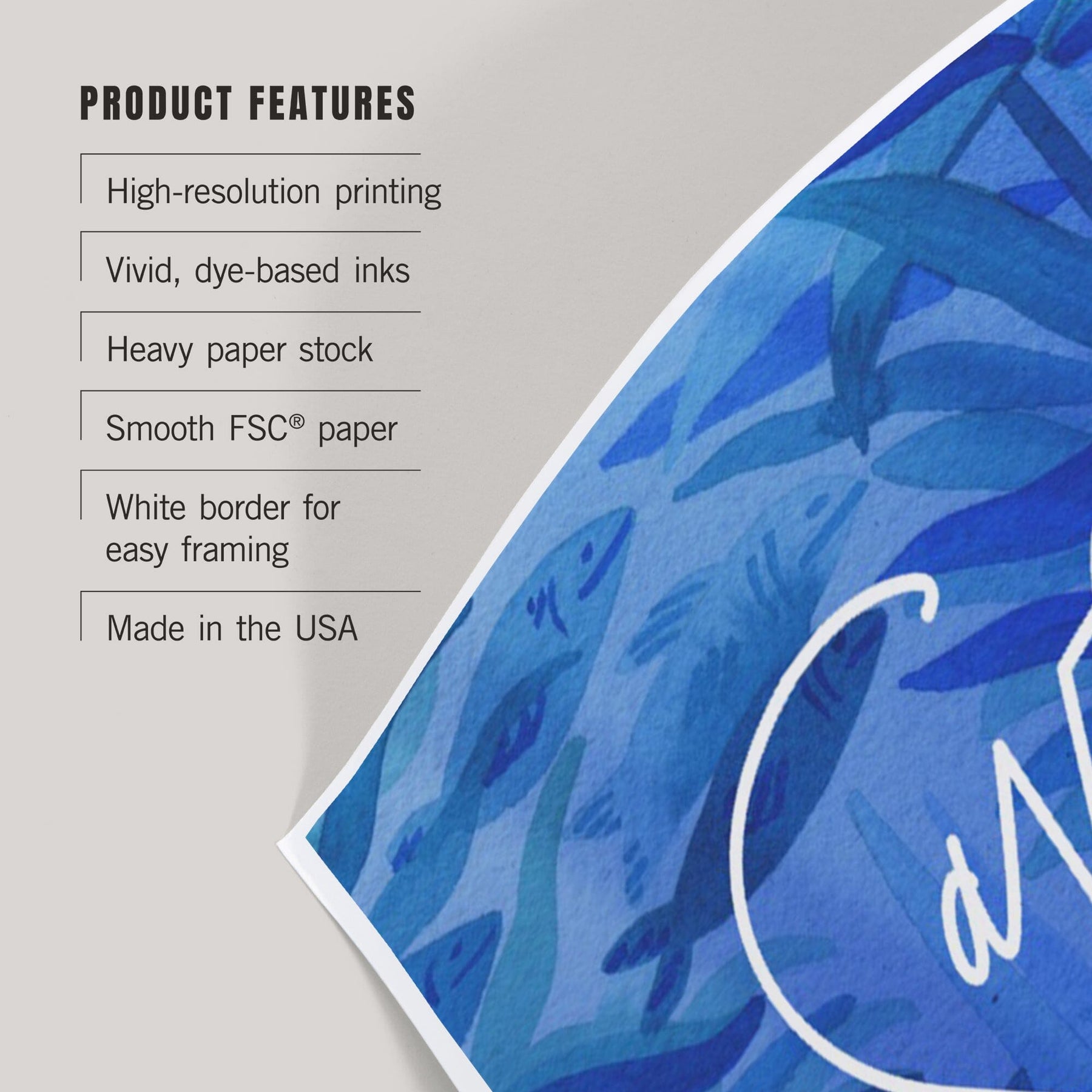 • Art prints include white borders along all edges of at least 1/4 inch